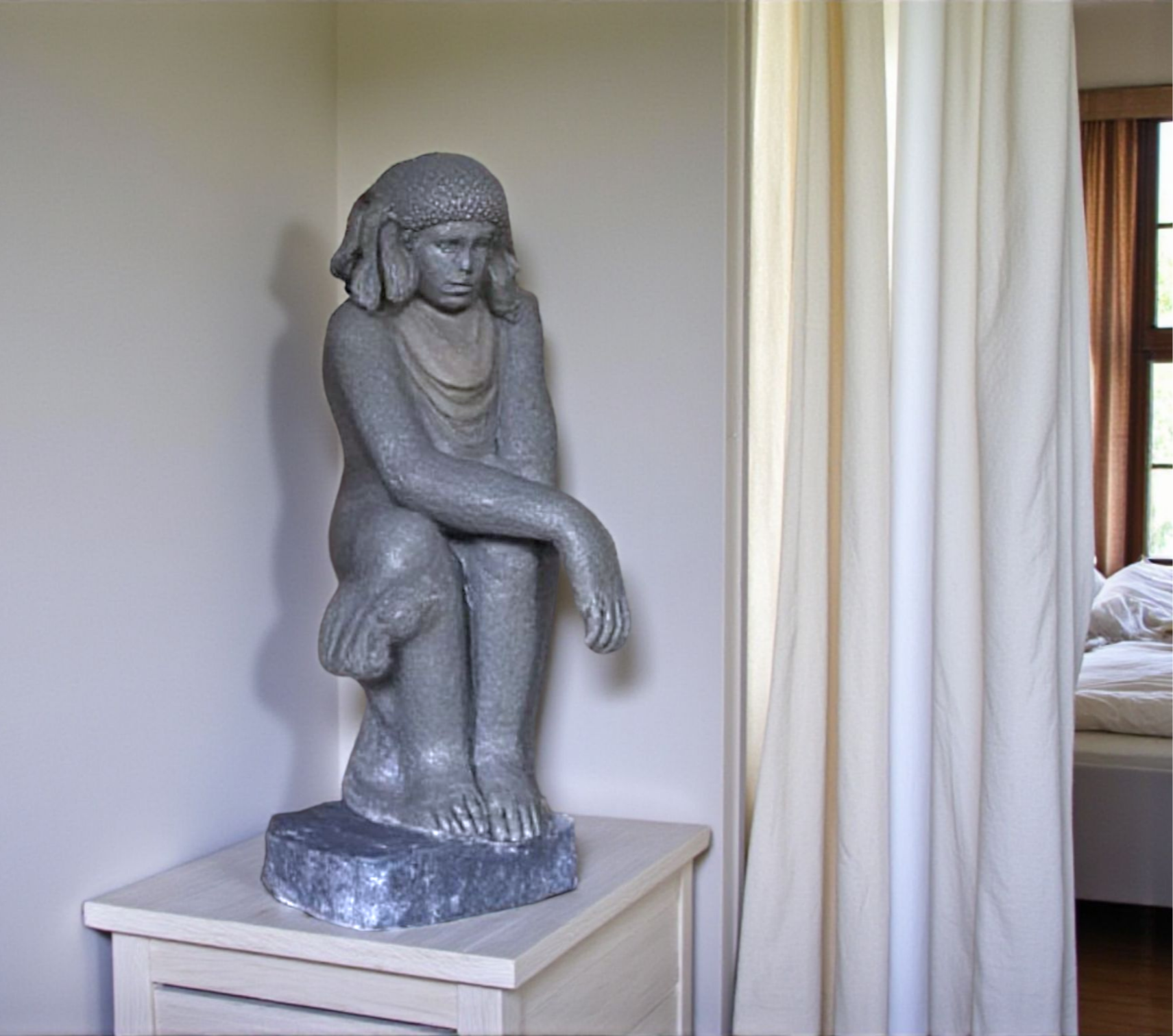 A massive sculpture of an Egyptian woman. Made of black granite. The year and sculptor are unknown.