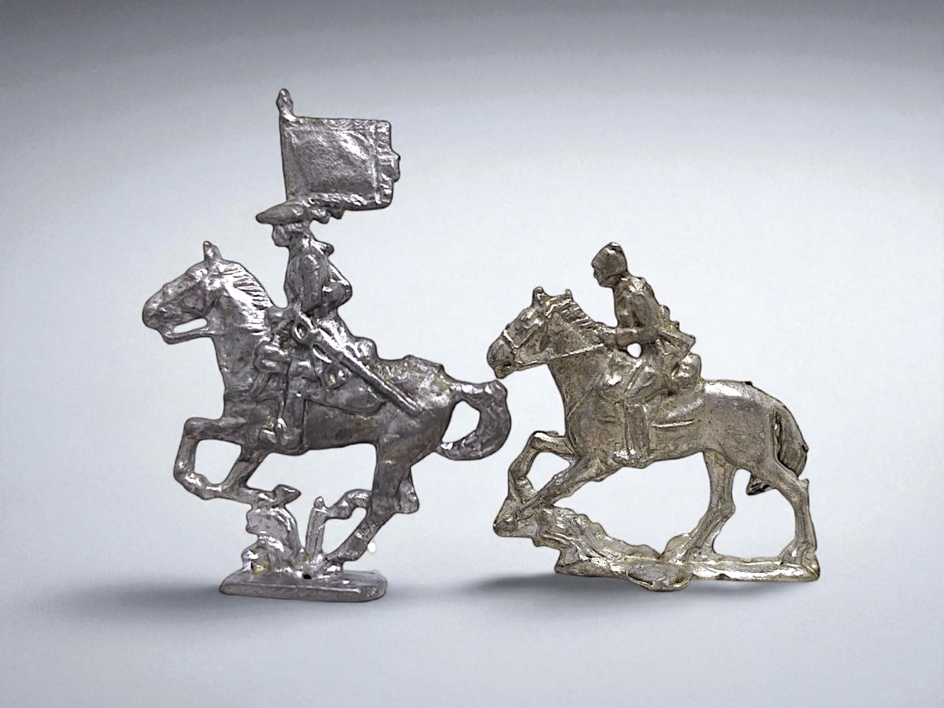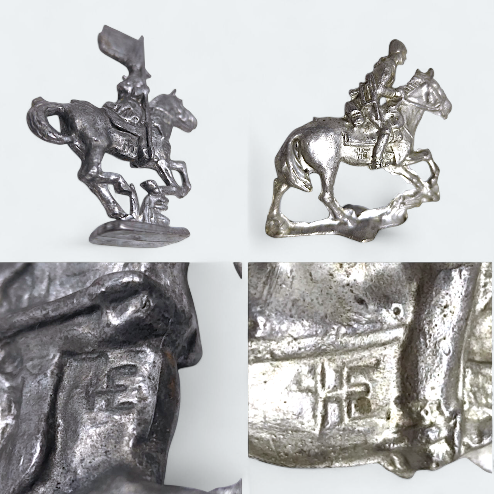 Two tin soldiers from the 40s-50s. Both figures are marked with HE (Holger Eriksson) stamp.