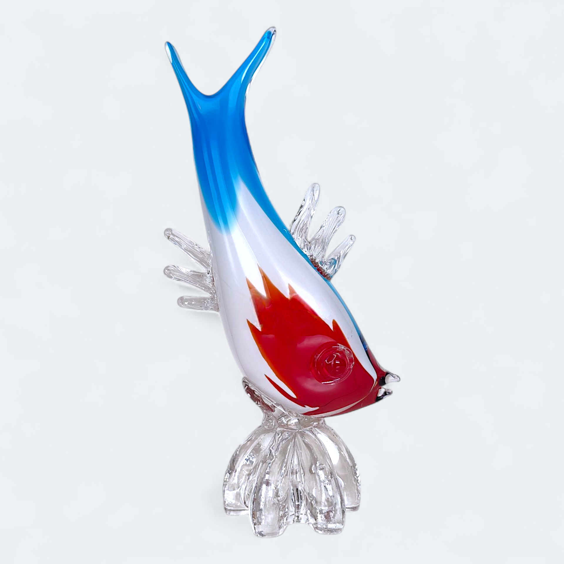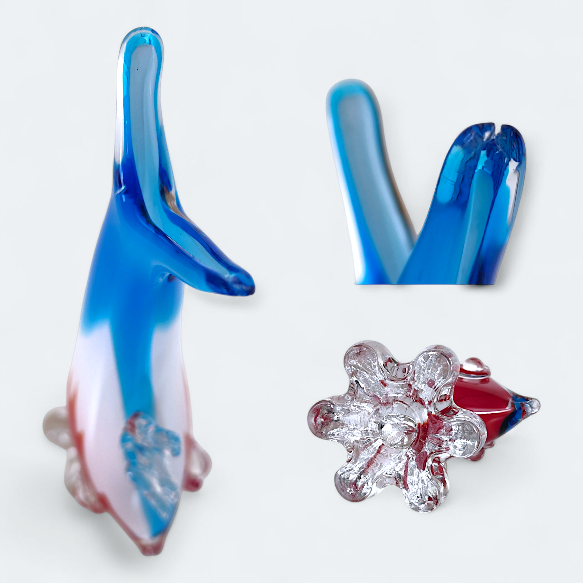 A Murano glass figurine depicting a fish. Murano glass is known for its handmade quality and artistic works.
