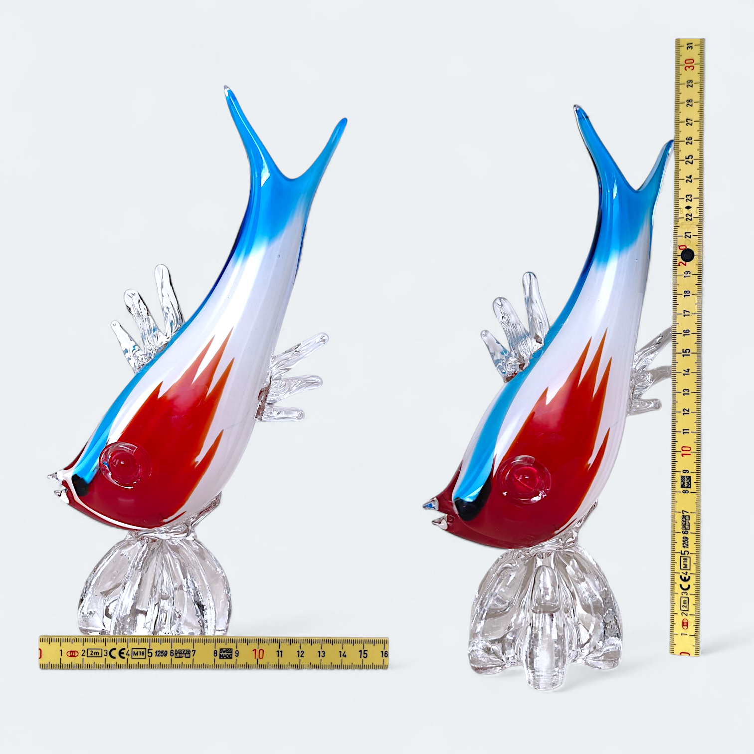 Design: The figurine has vibrant colors (red, white, and blue) and a detailed shape, which is typical of the artistic expression of Murano glass.