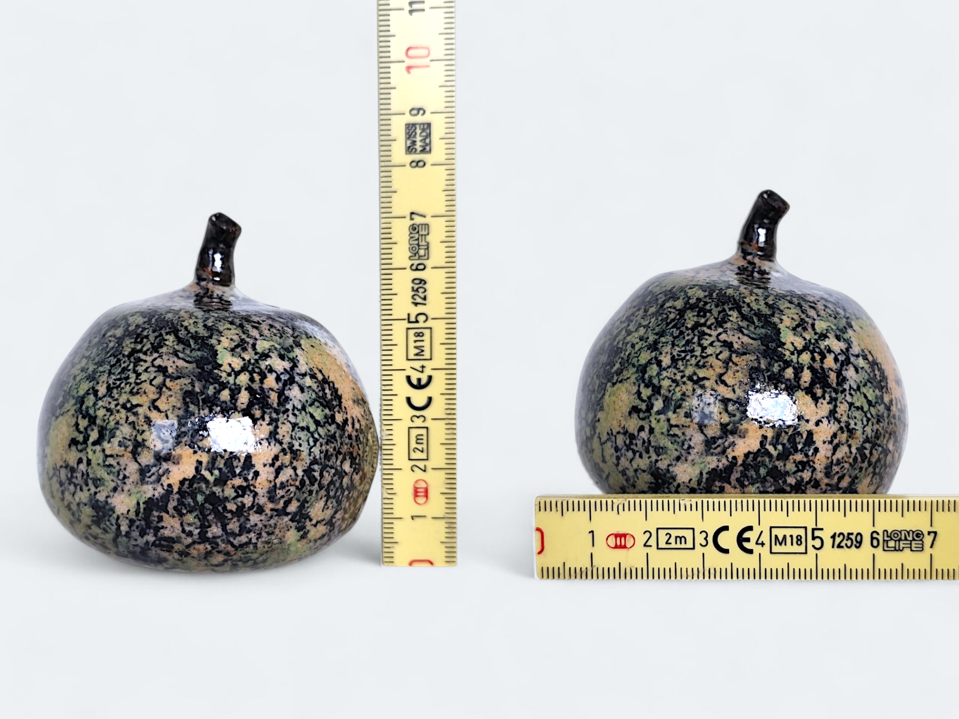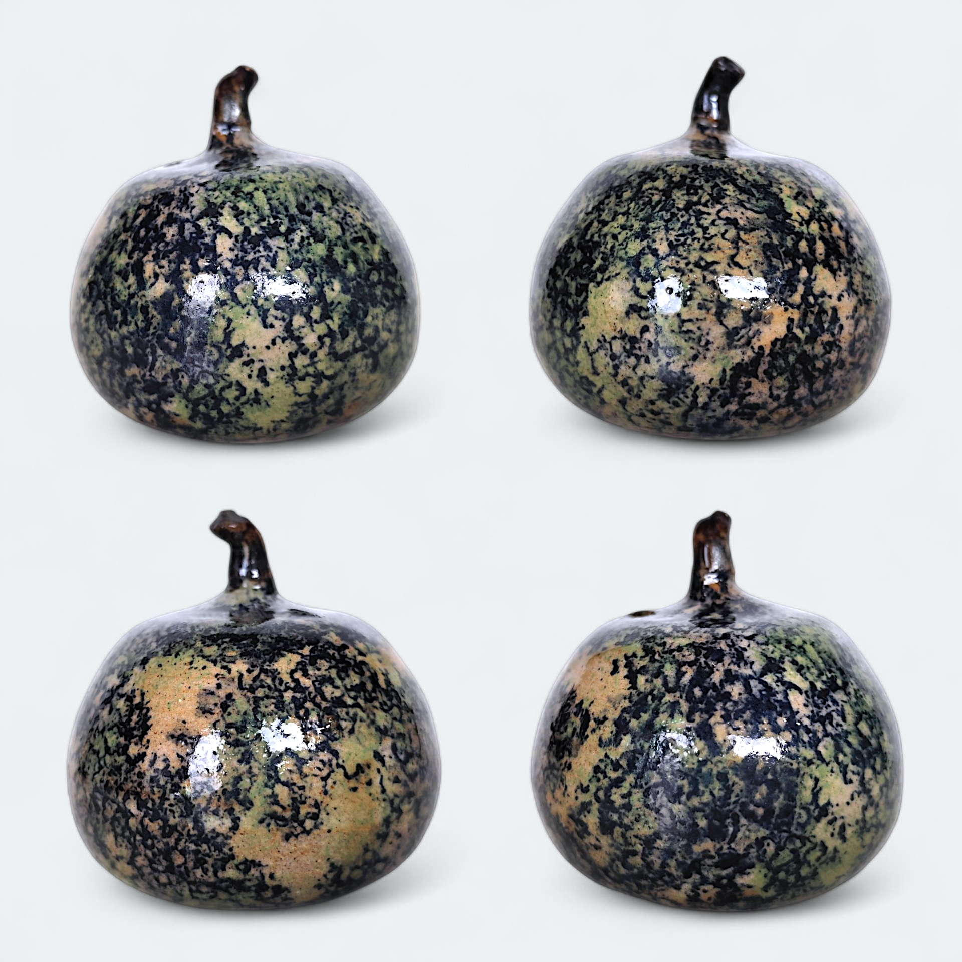 A sculpture depicting an apple or pumpkin. Made of glazed stoneware. Signed Gunnar Andersson.