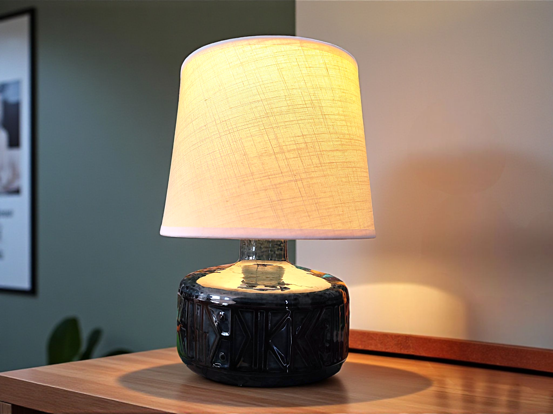 A beautiful vintage Rörstrand table lamp with a ceramic base. The lamp has a unique design and gives a pleasant light. Perfect as mood lighting in the living room or bedroom. The lampshade and bulb are included.