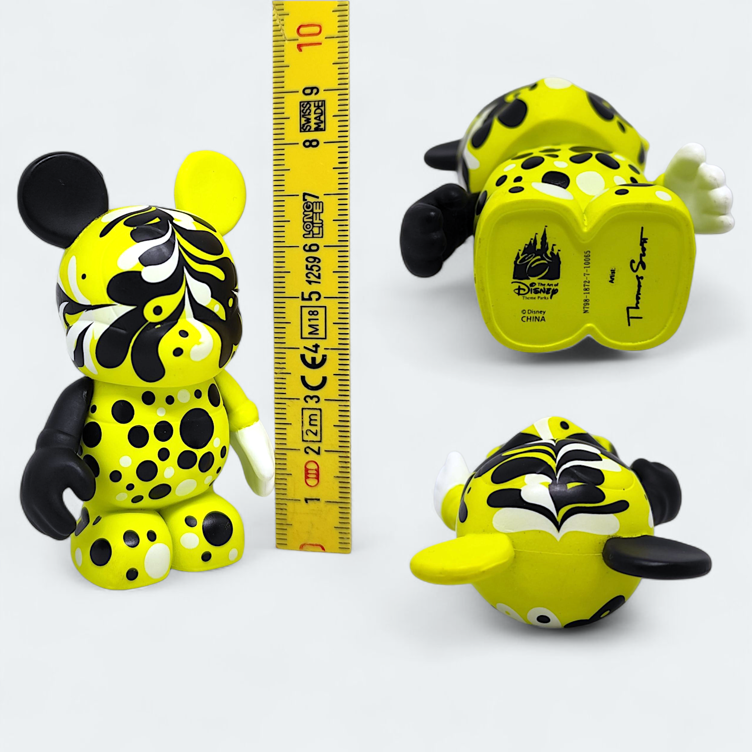 Unique Disney Vinylmation designed by Thomas Scott. This collectible figure features a distinctive yellow, black and white pattern. Perfect for Disney collectors and art lovers.