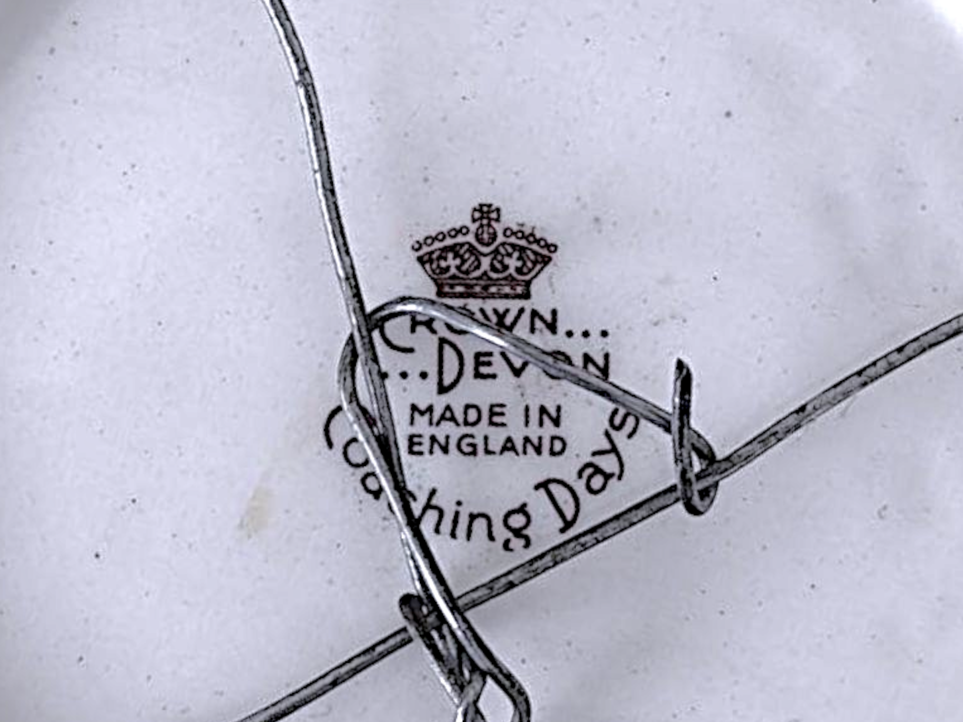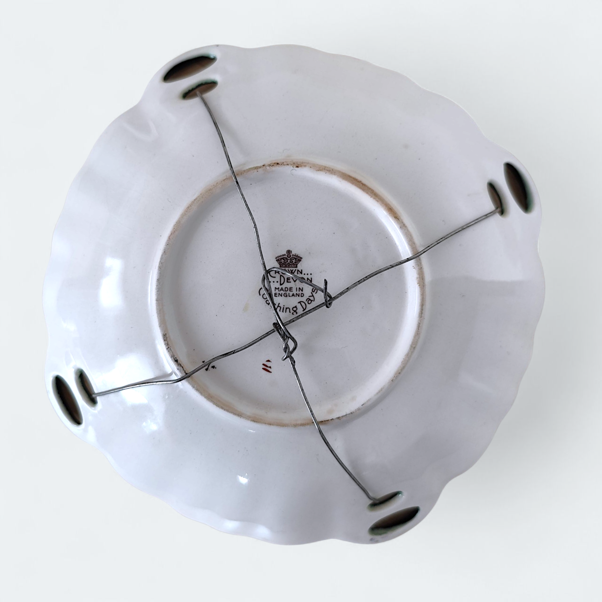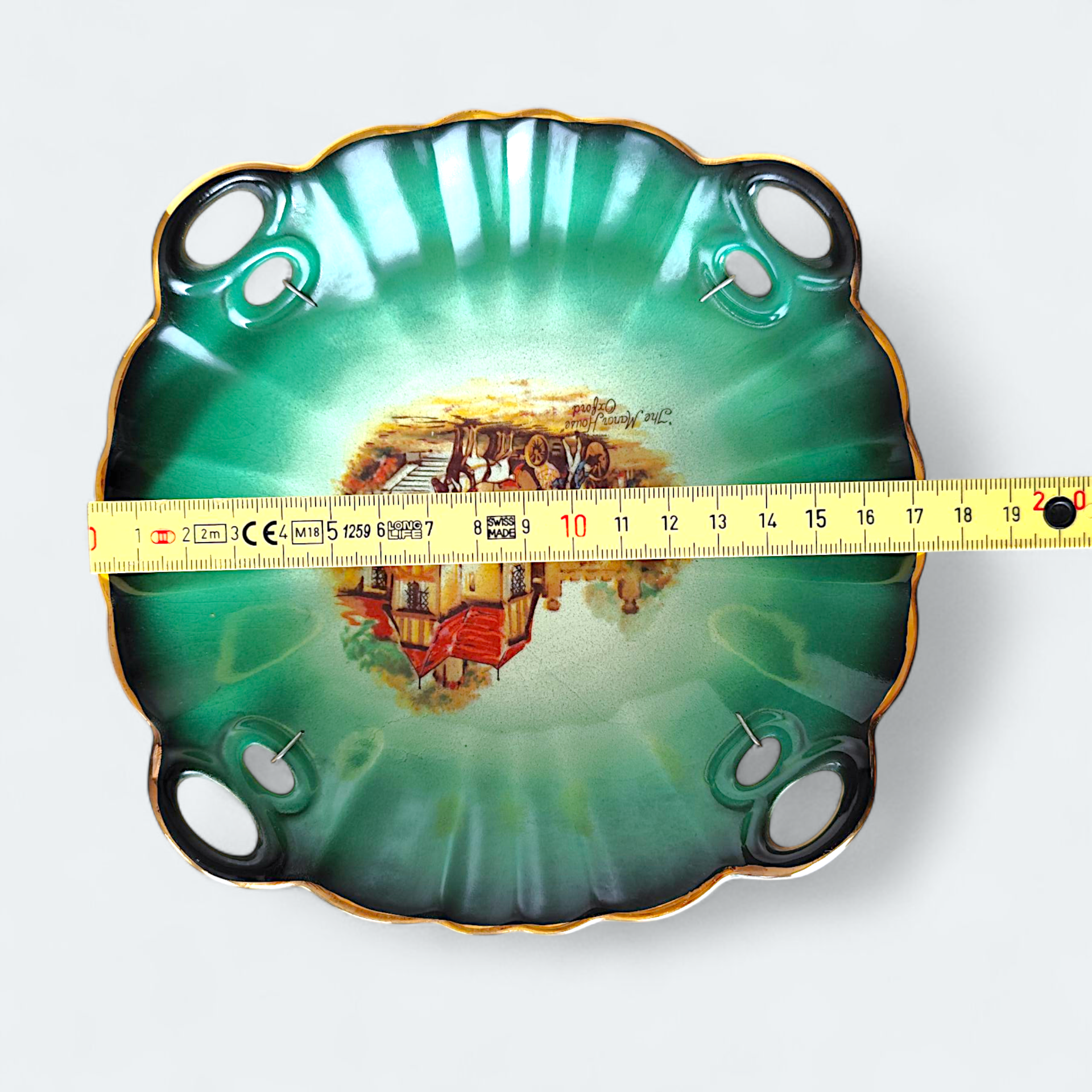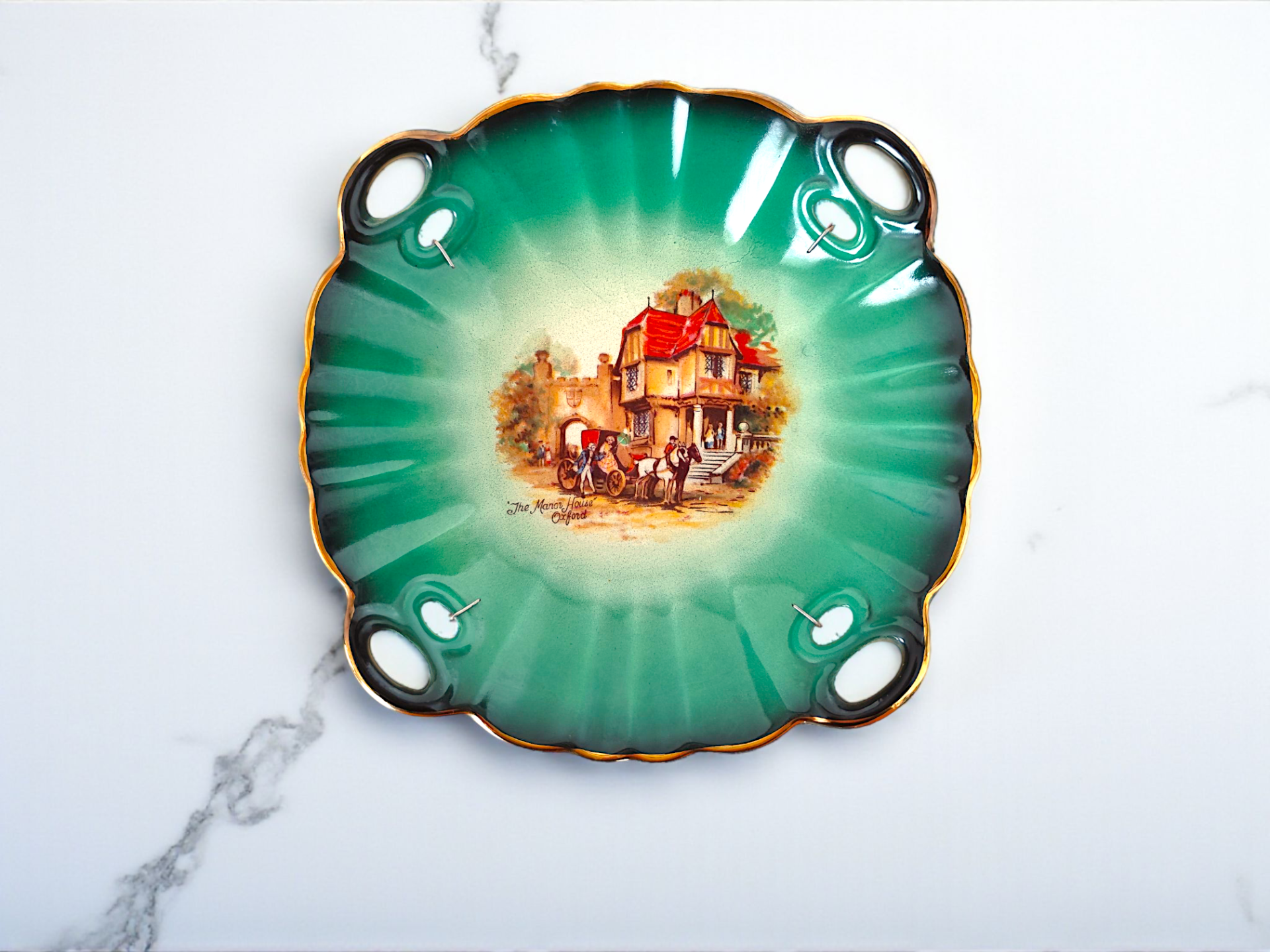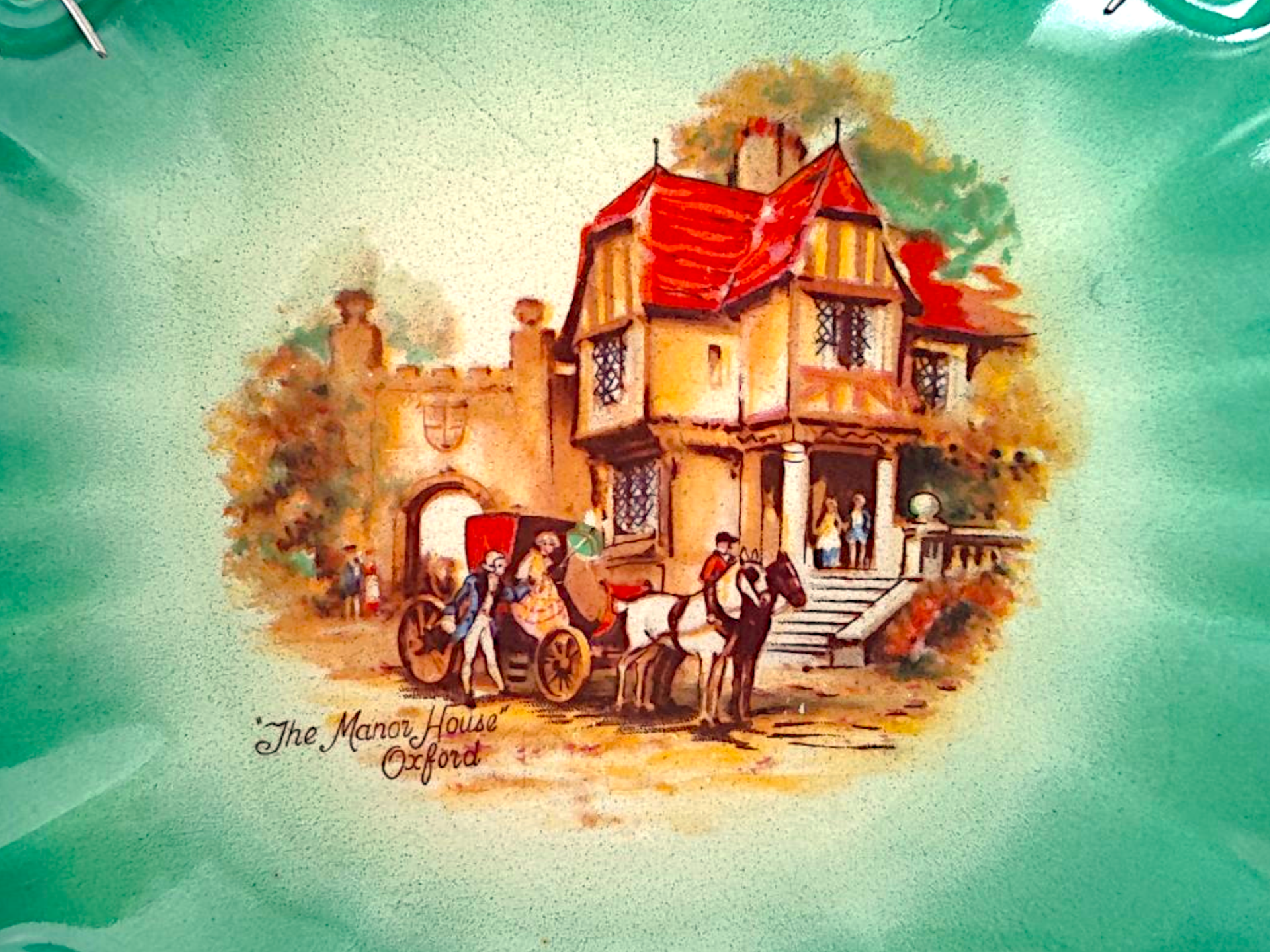 A decorative porcelain dish/wall decoration from Crown Devon (Coaching Days England). The image depicts The Manor House Oxford.