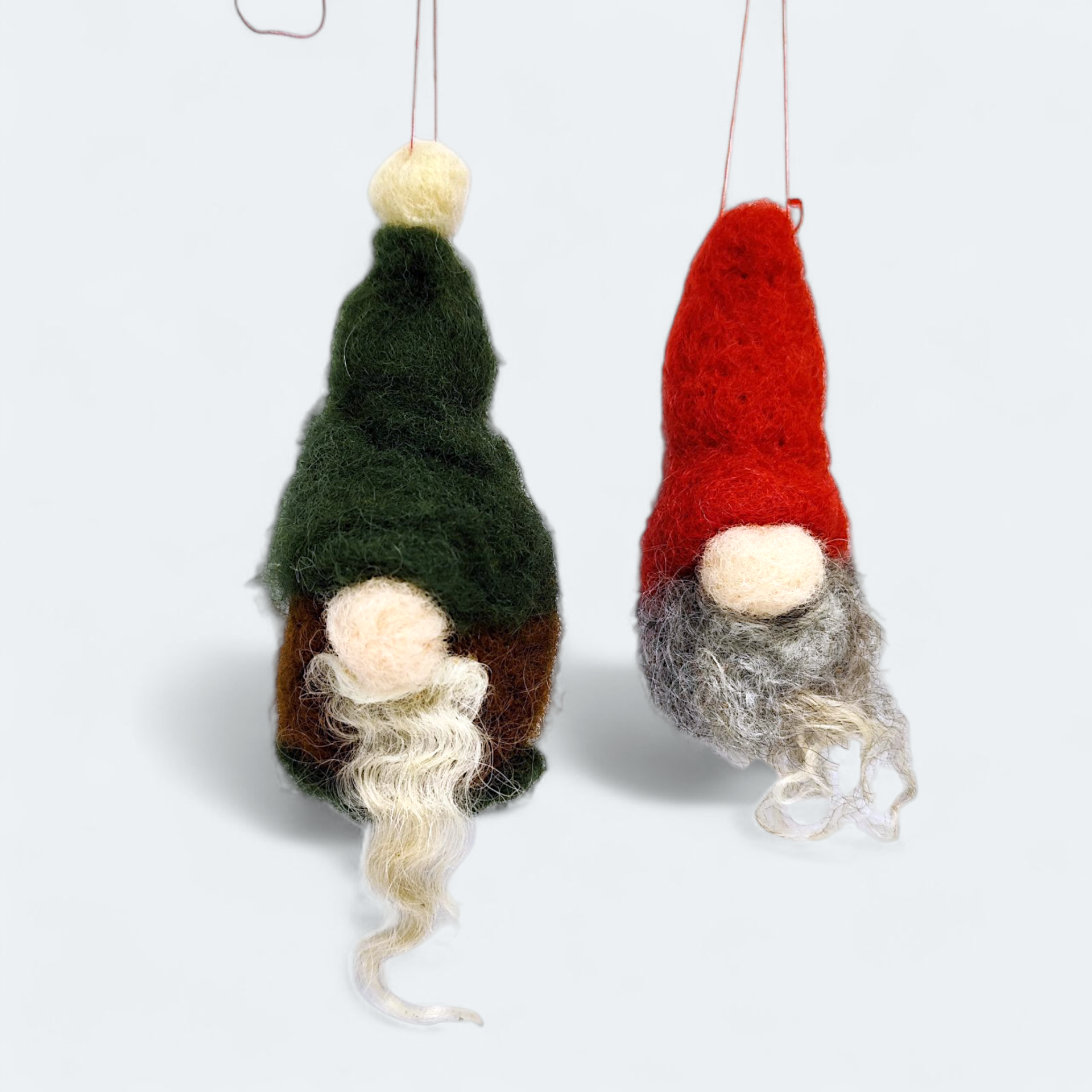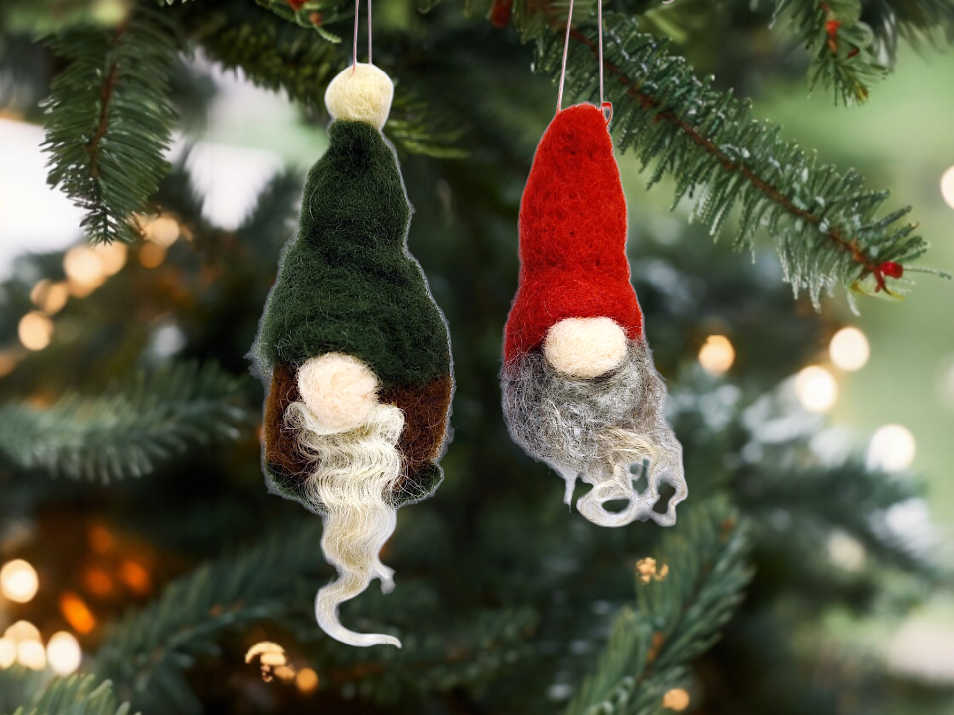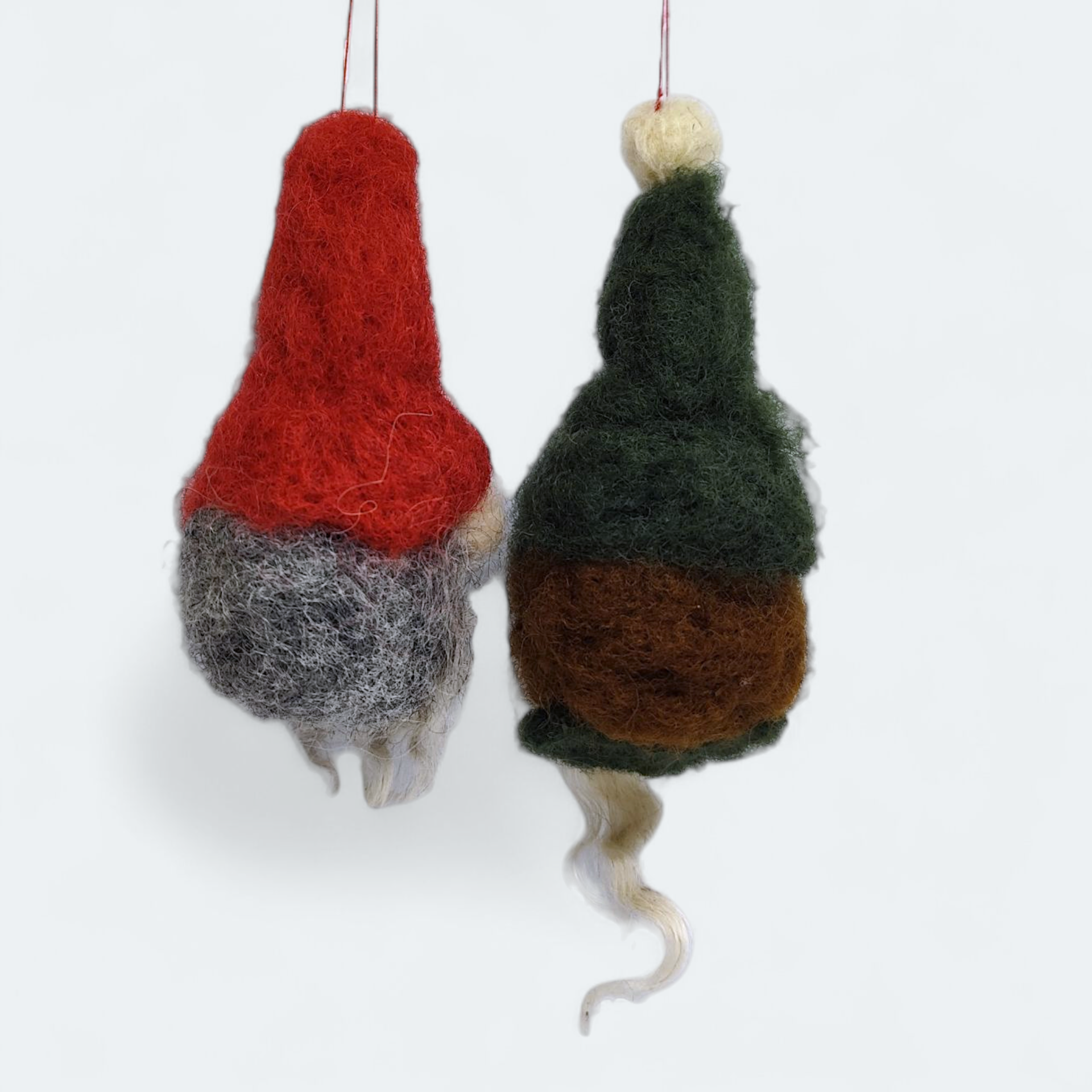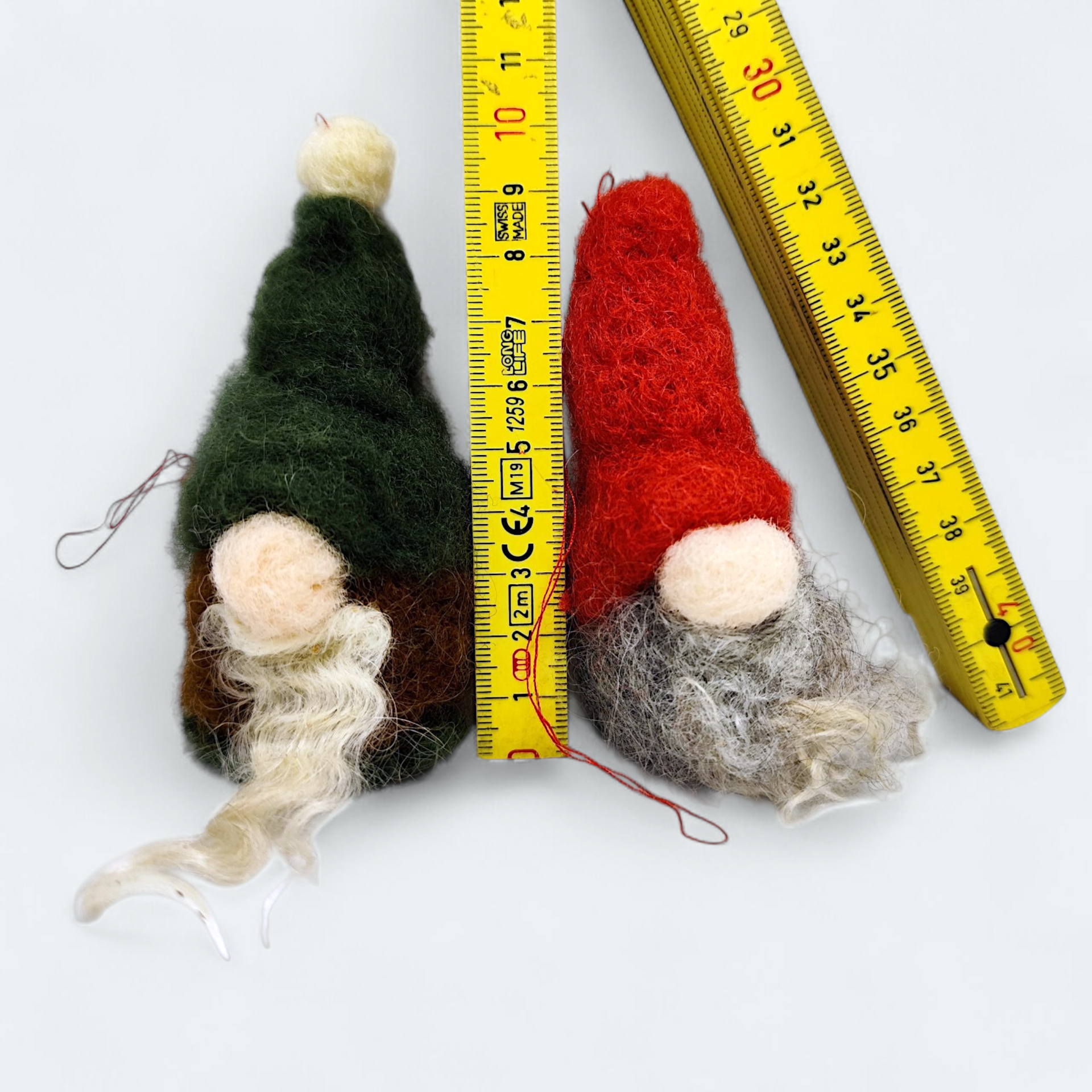 Two handmade Santa Claus Christmas decorations in felted wool. Created by Petra Tillgren for charity. Perfect to hang on the tree or as a festive detail in the home during Christmas.