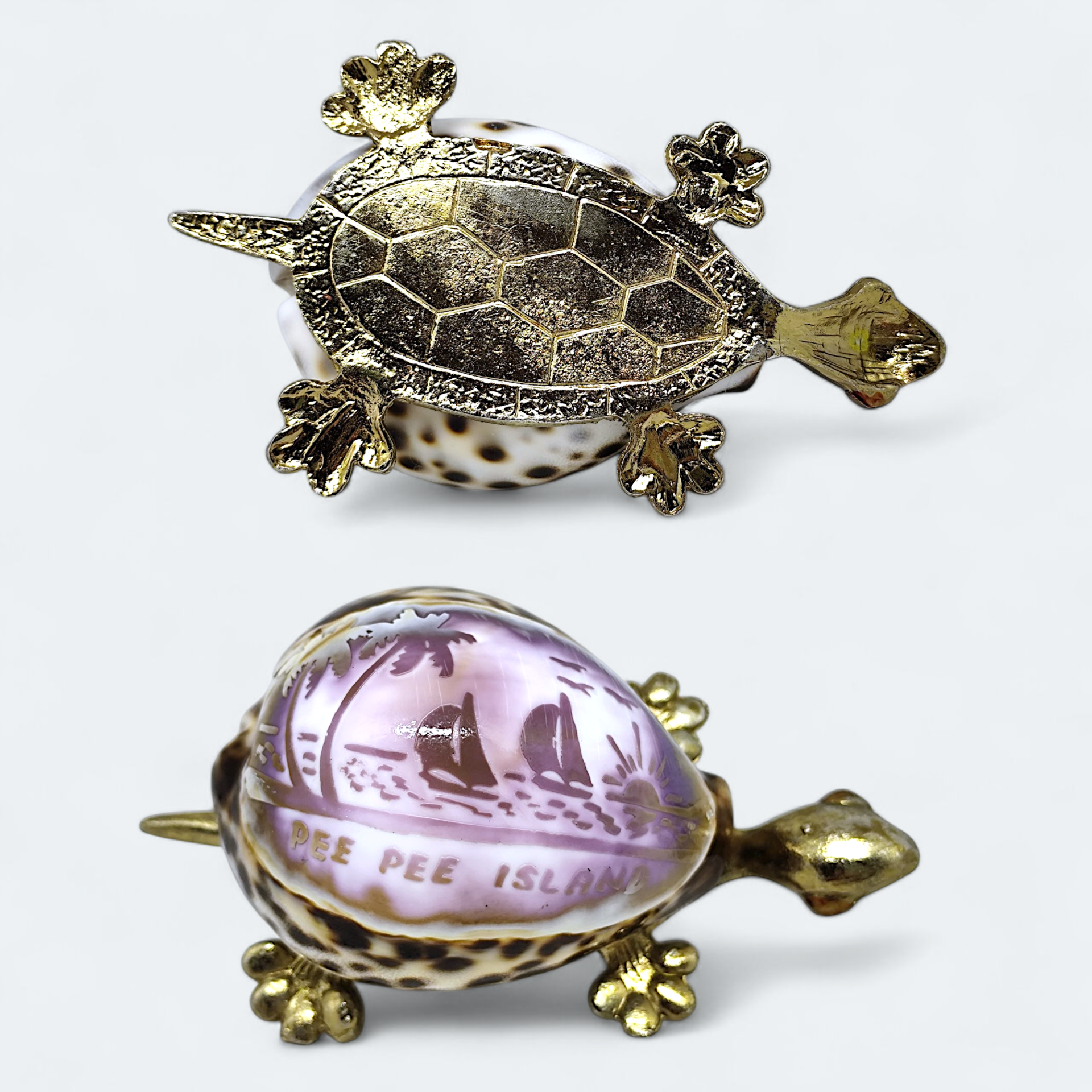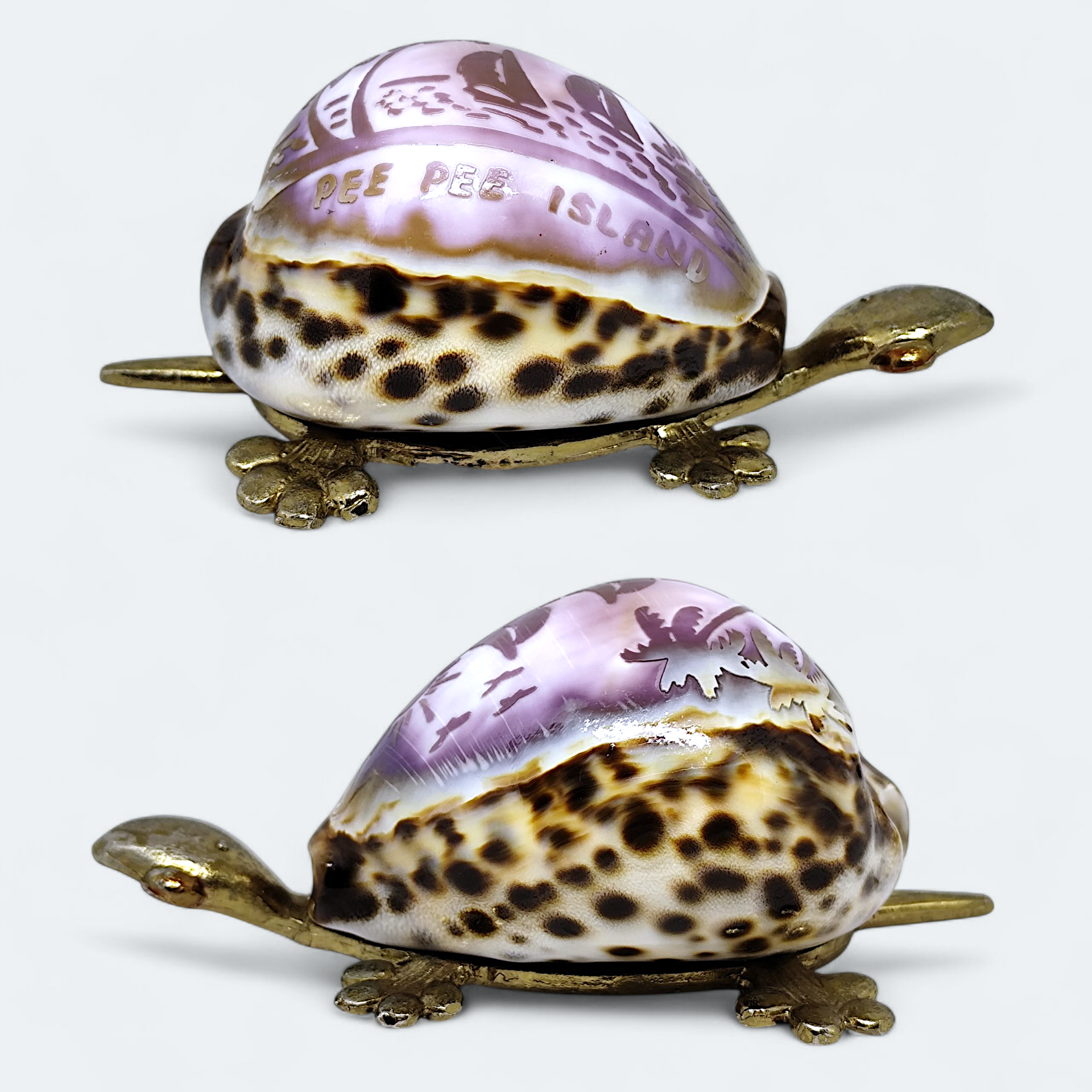 A decorative turtle with a beautiful seashell from Pee Pee Island. Perfect as a decoration in the home or as a special gift.