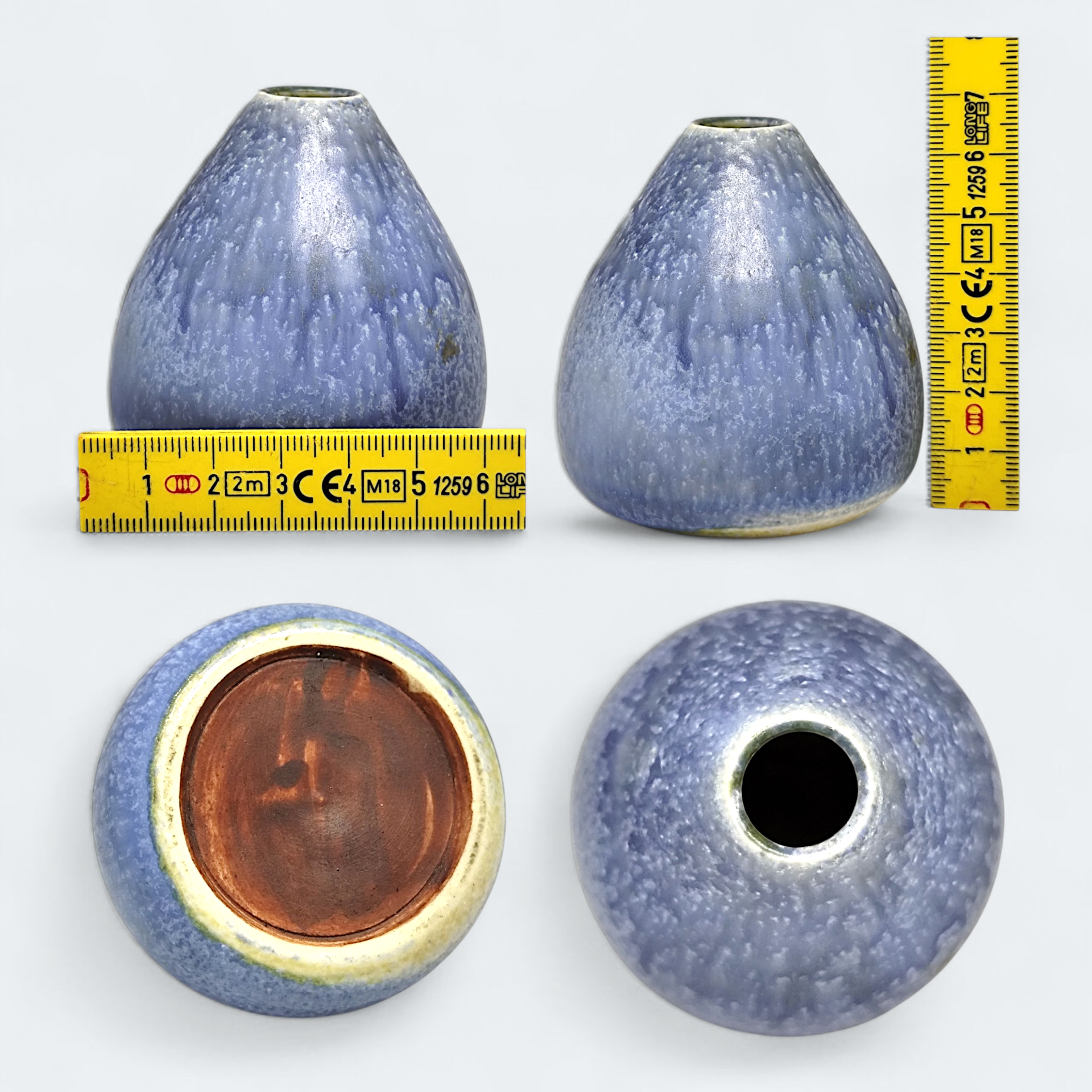 A decorative miniature vase in stoneware and blue shades. Made in the Gunnar Nylund style. The vase is unsigned.