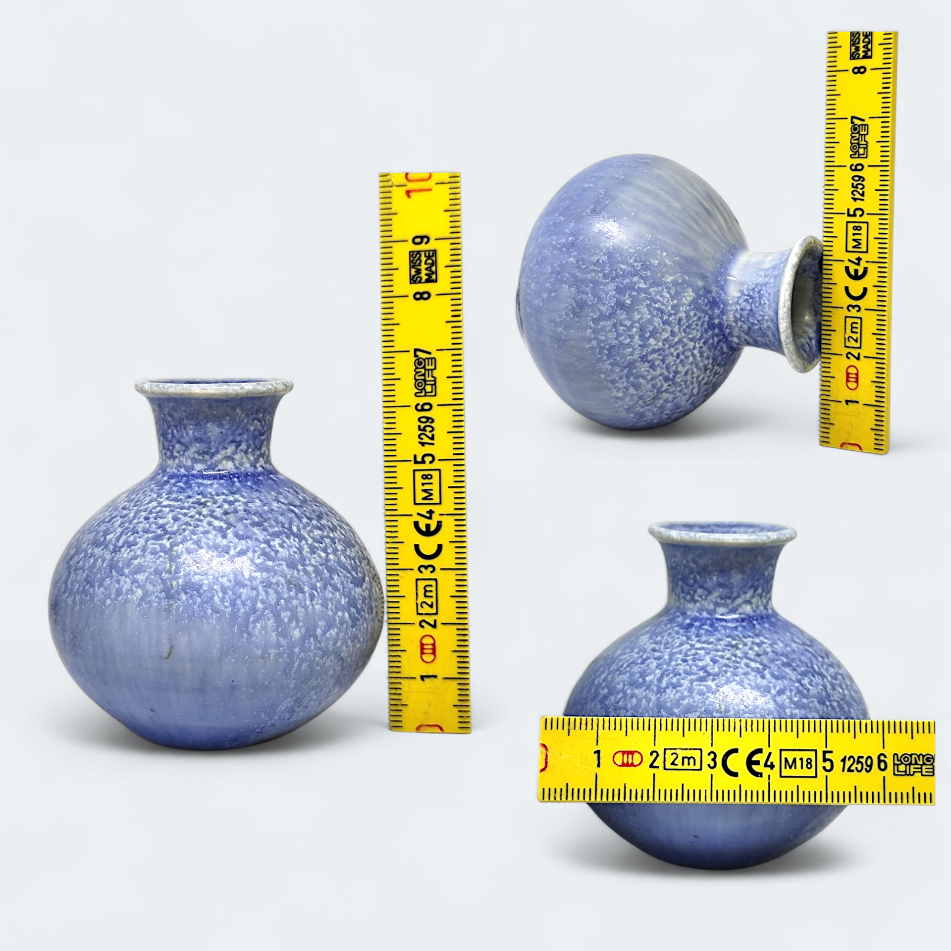 A decorative miniature vase in stoneware and blue shades. Made in the Gunnar Nylund style. The vase is unsigned.