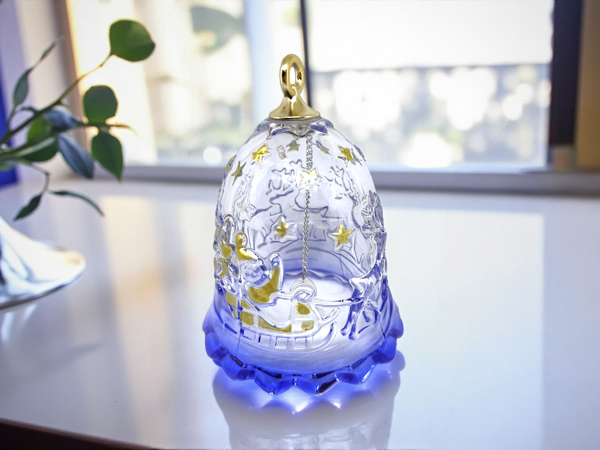 The bell is of the "Silent Night" type and is made of frosted crystal glass.