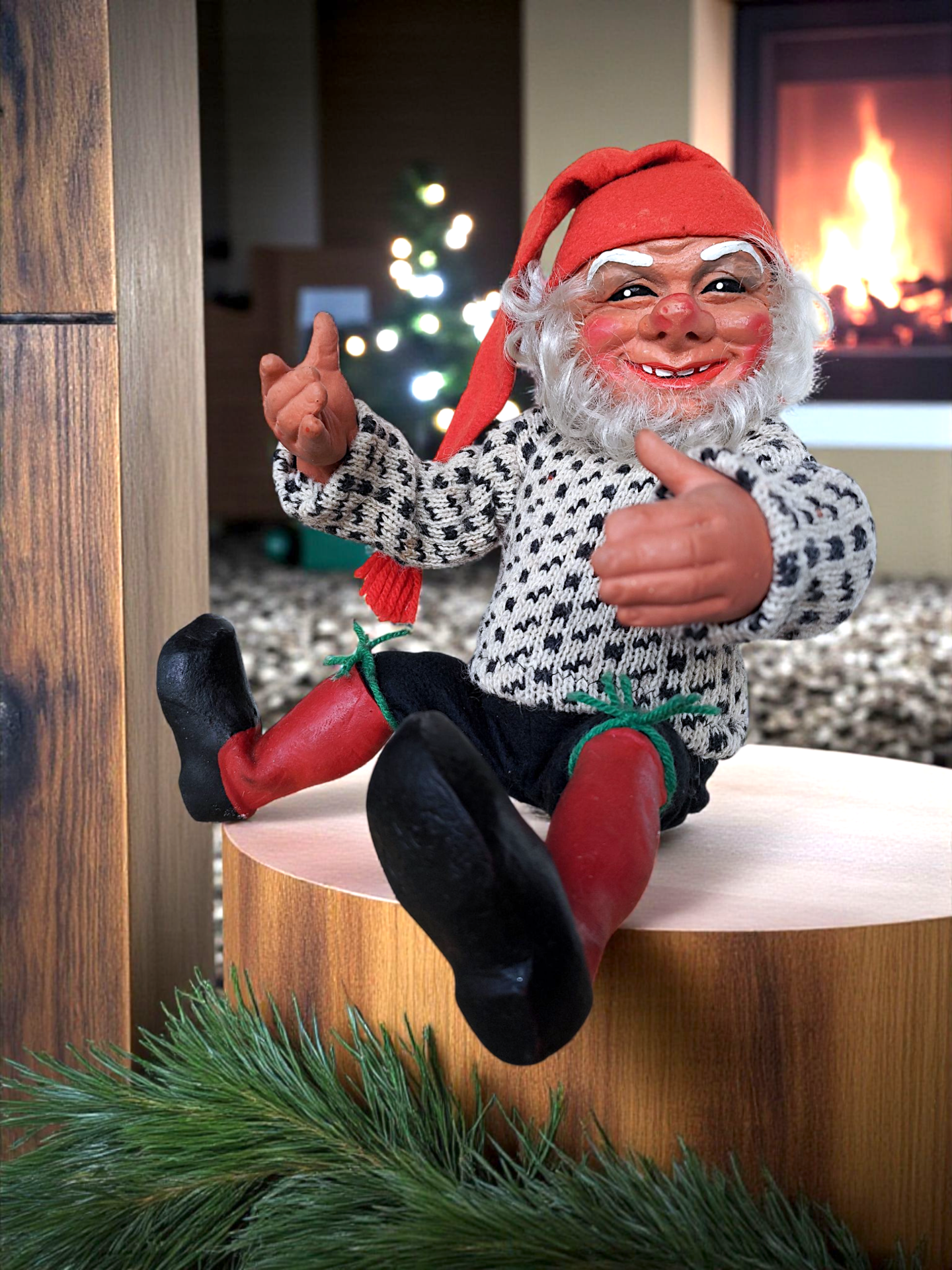 Arne Hasle Askim Santa Claus. Made in Norway in the mid-20th century. Made of fabric and latex. This Santa Claus is a unique and festive decoration for Christmas. Perfect for collectors or as a nostalgic detail in your Christmas decorations.