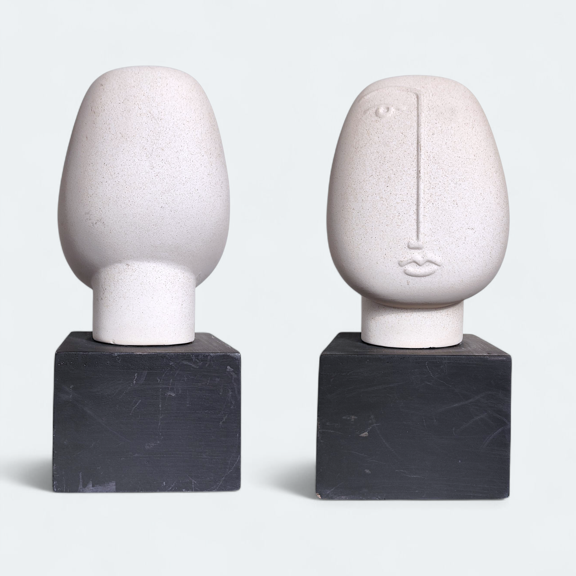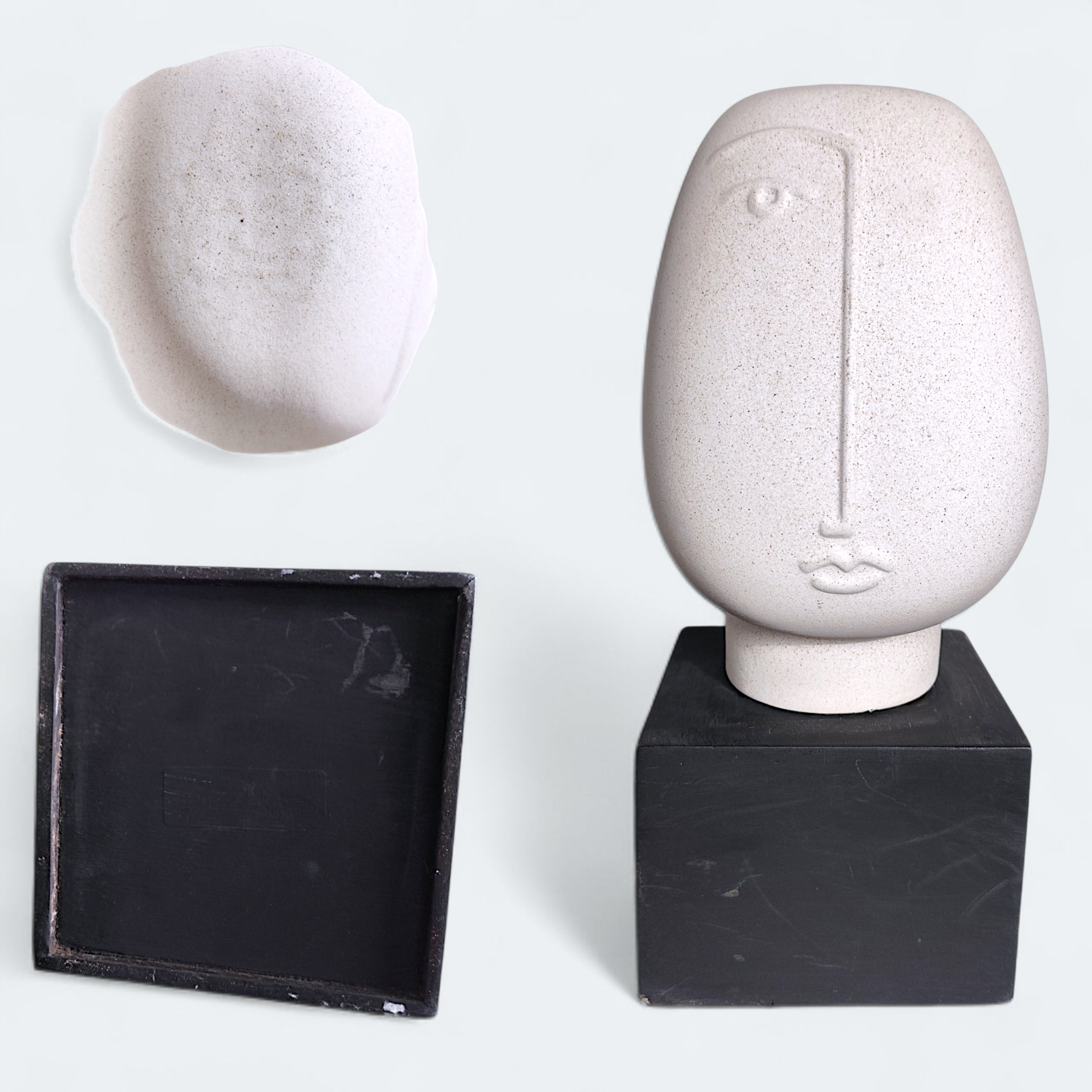 A stylish sculpture that is perfect as a decorative piece. The abstract design adds a modern touch to your home. Place it on a shelf, table or anywhere you want to create an artistic atmosphere. Made of ceramic and wood.