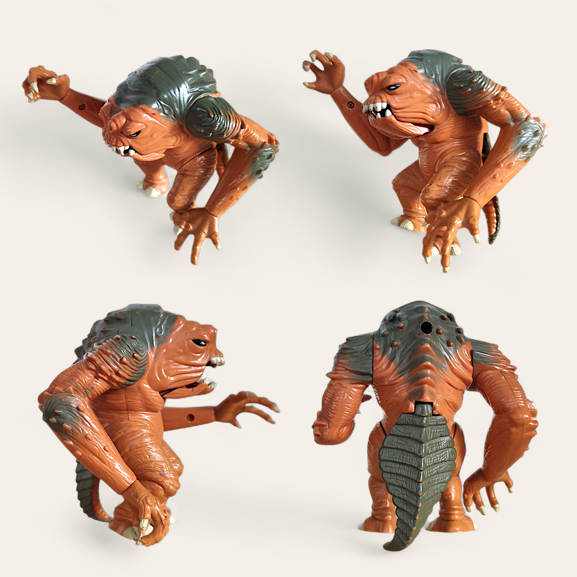 Vintage Rancor action figure from Star Wars. This figure is a classic toy from the 1996s and is a must for any Star Wars collector. The figure has movable arms and legs, as well as an opening mouth.