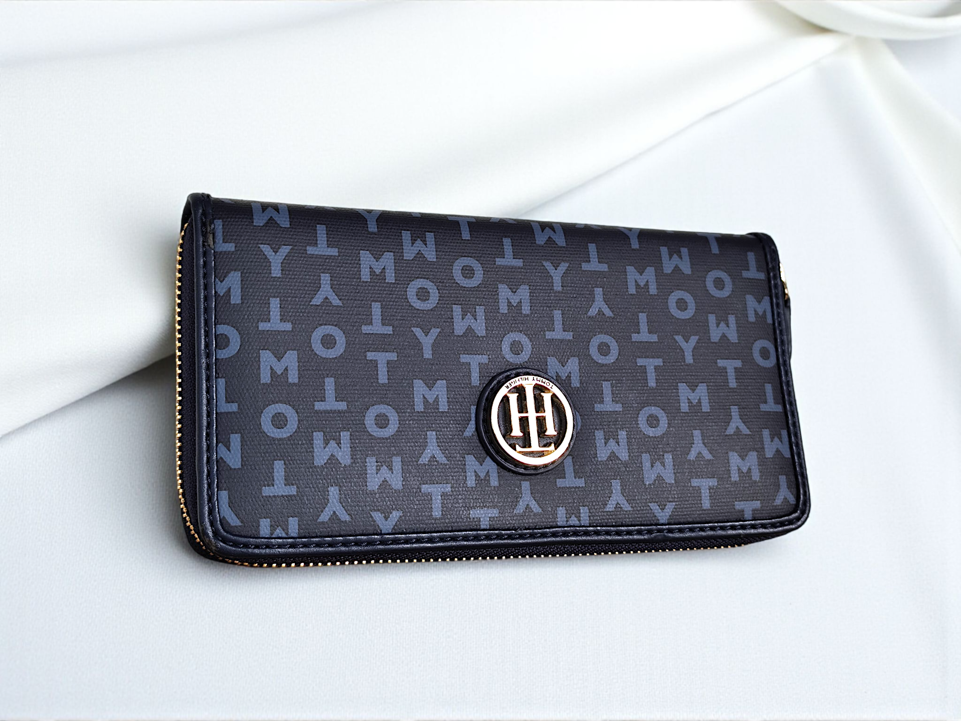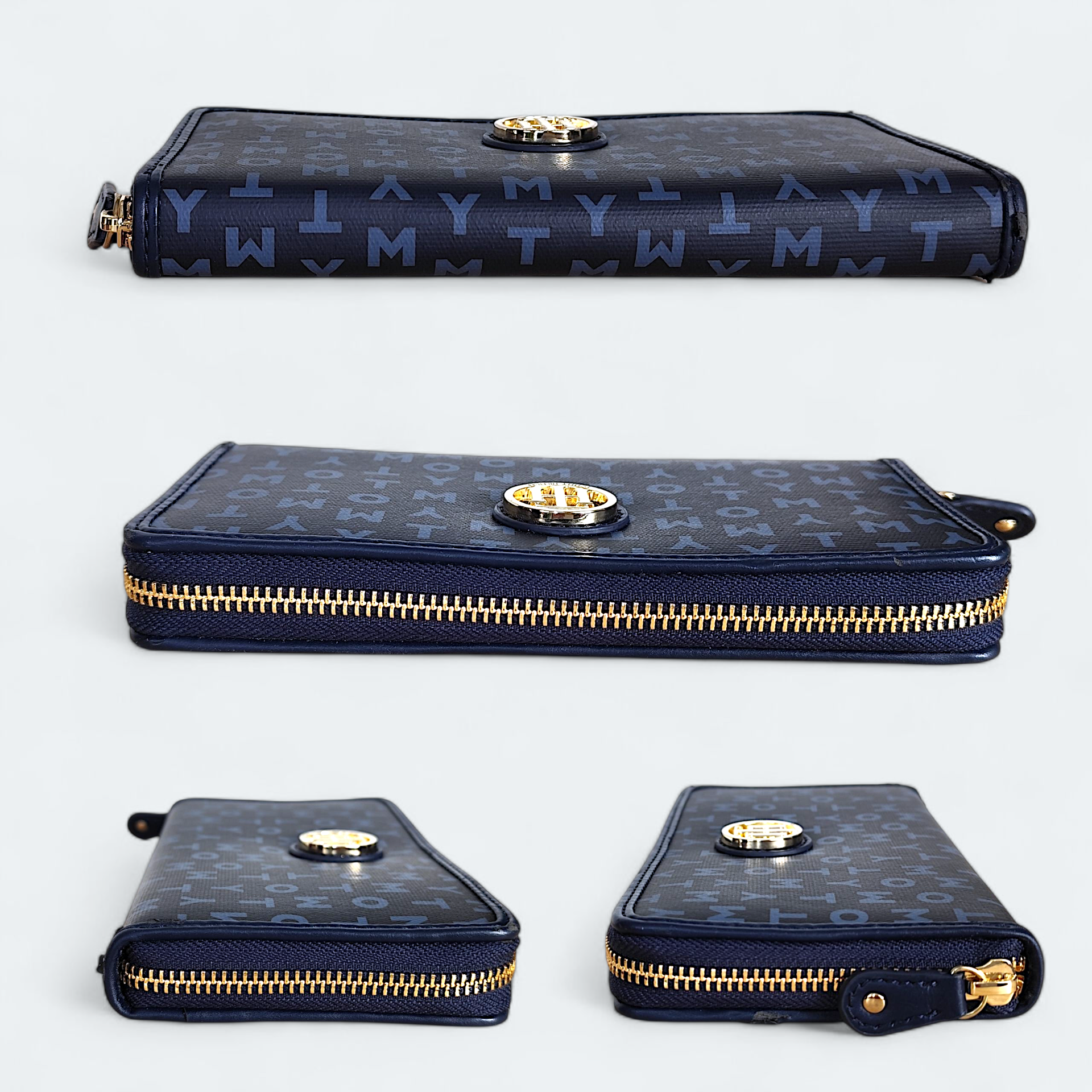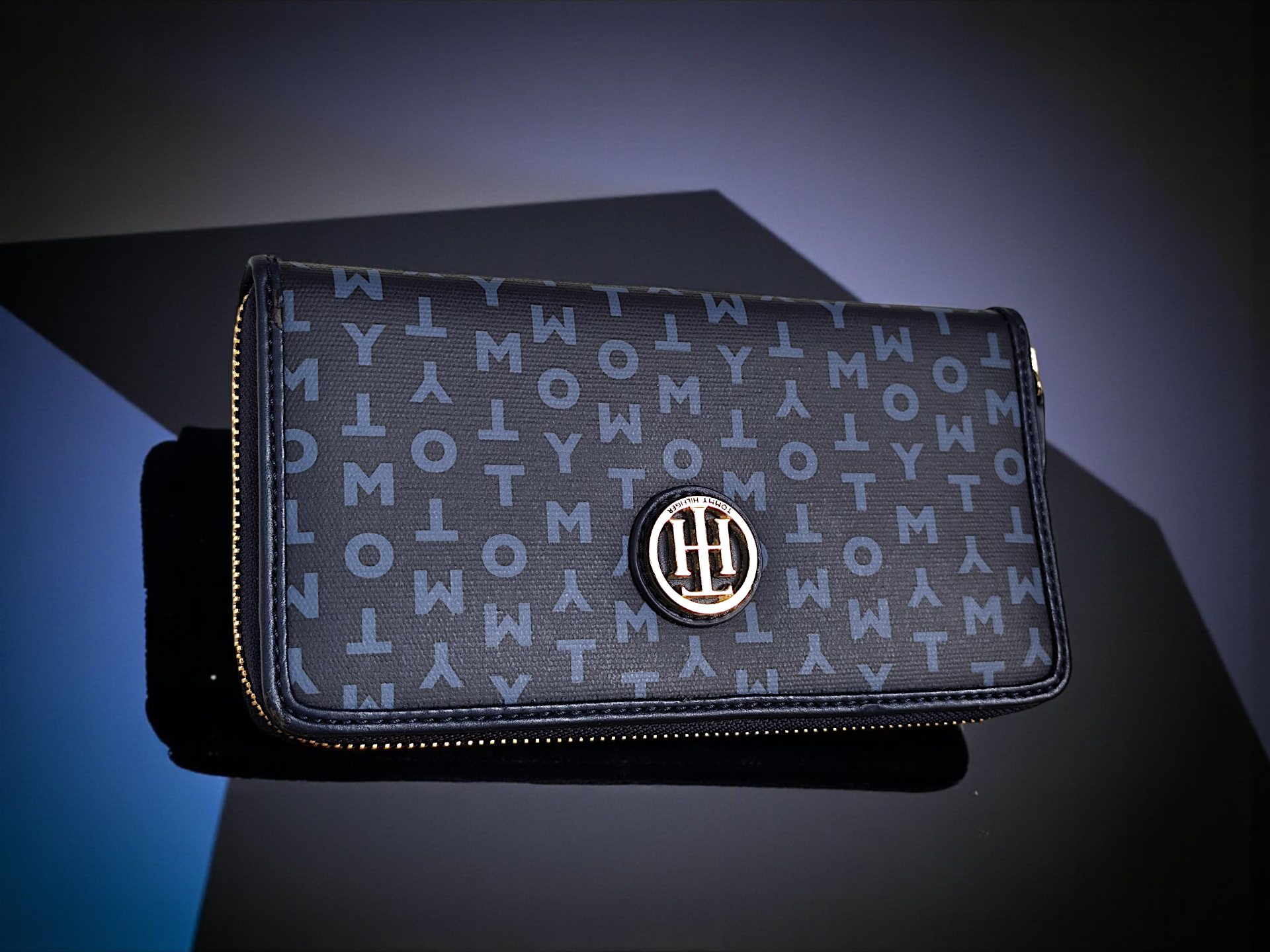 A stylish Tommy Hilfiger wallet with zipped compartments, card slots, suitable for versatile use.
