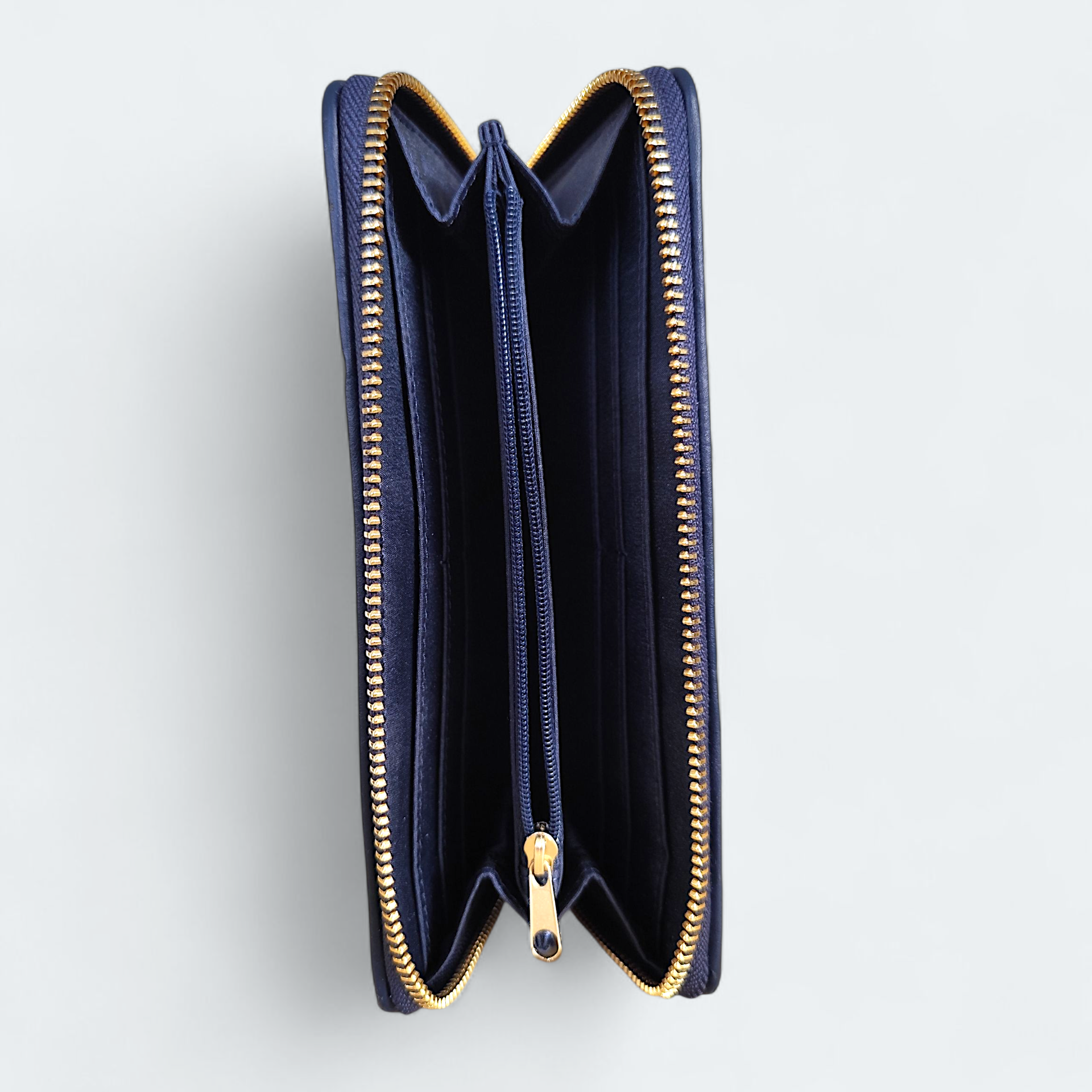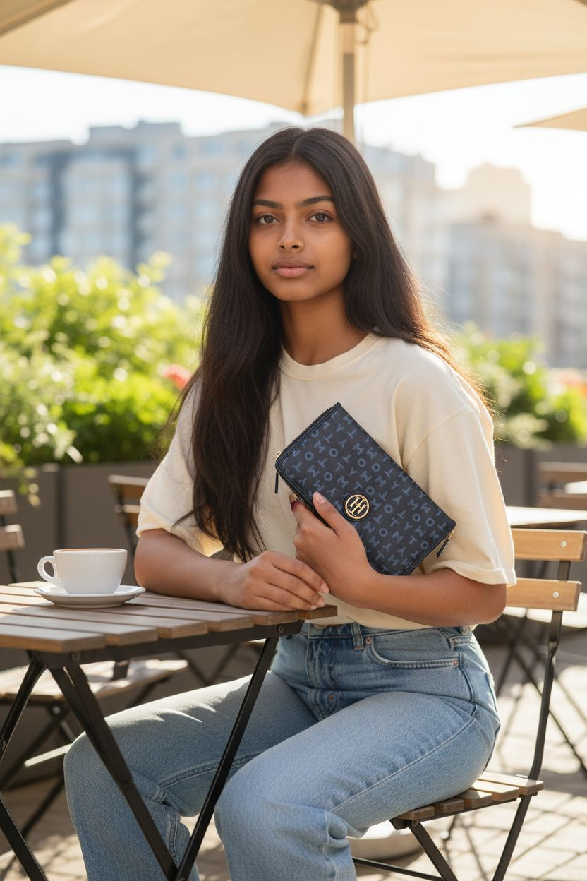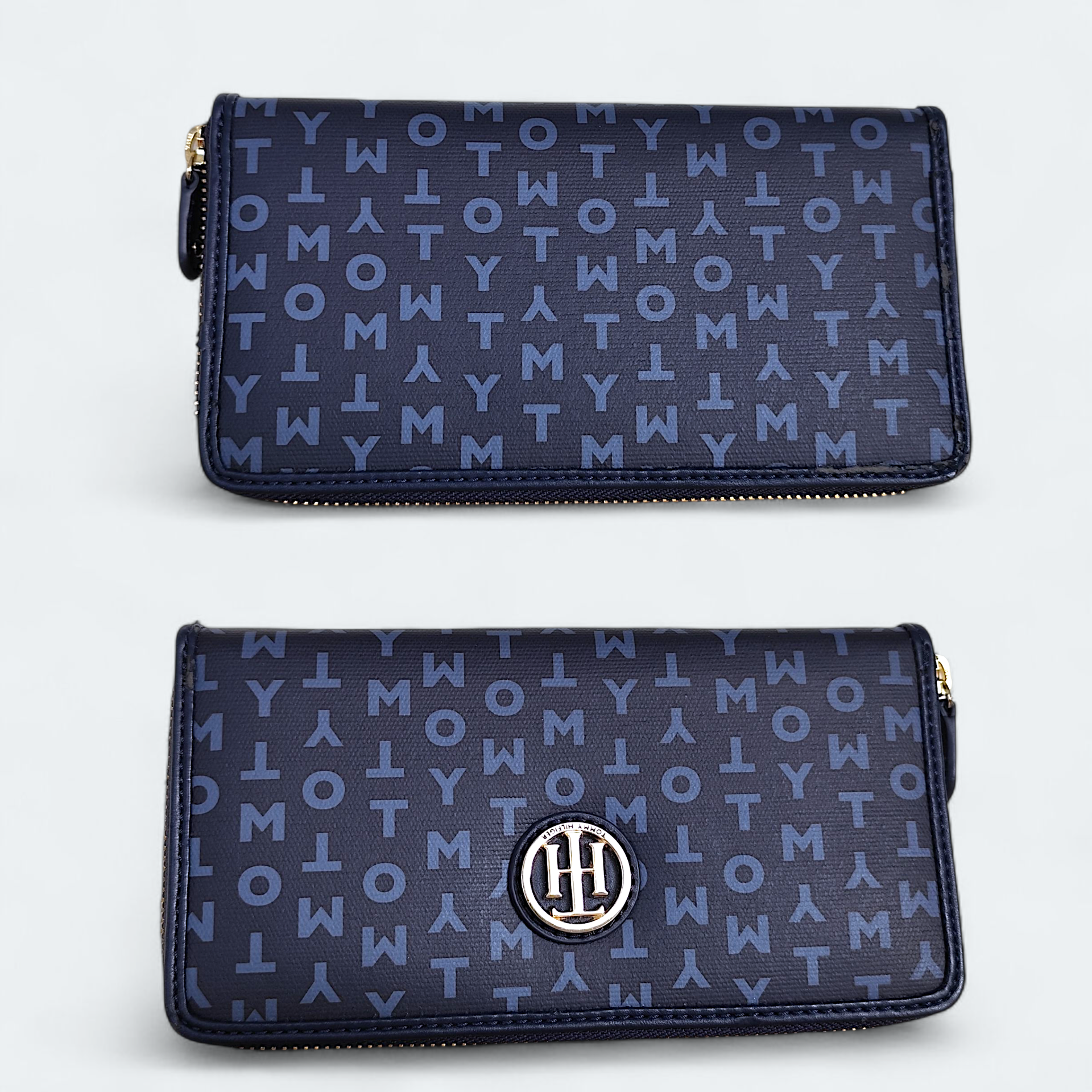 A stylish Tommy Hilfiger wallet with zipped compartments, card slots, suitable for versatile use.