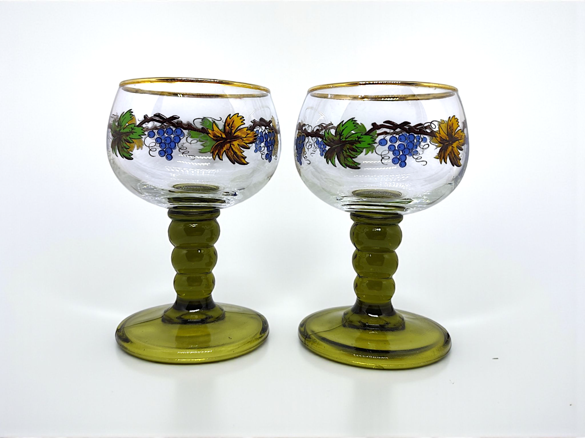 Two glasses with decorative grape motif and gold rim. From the Remmare series.