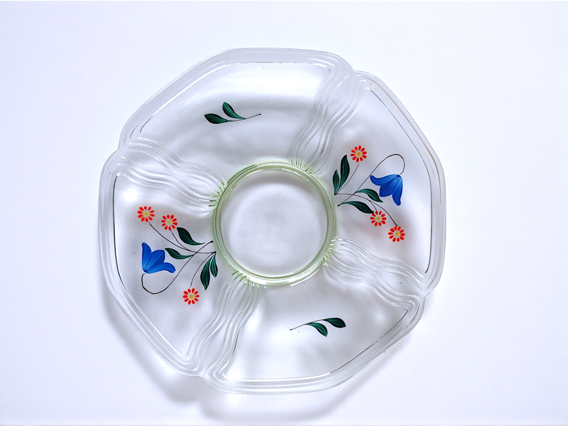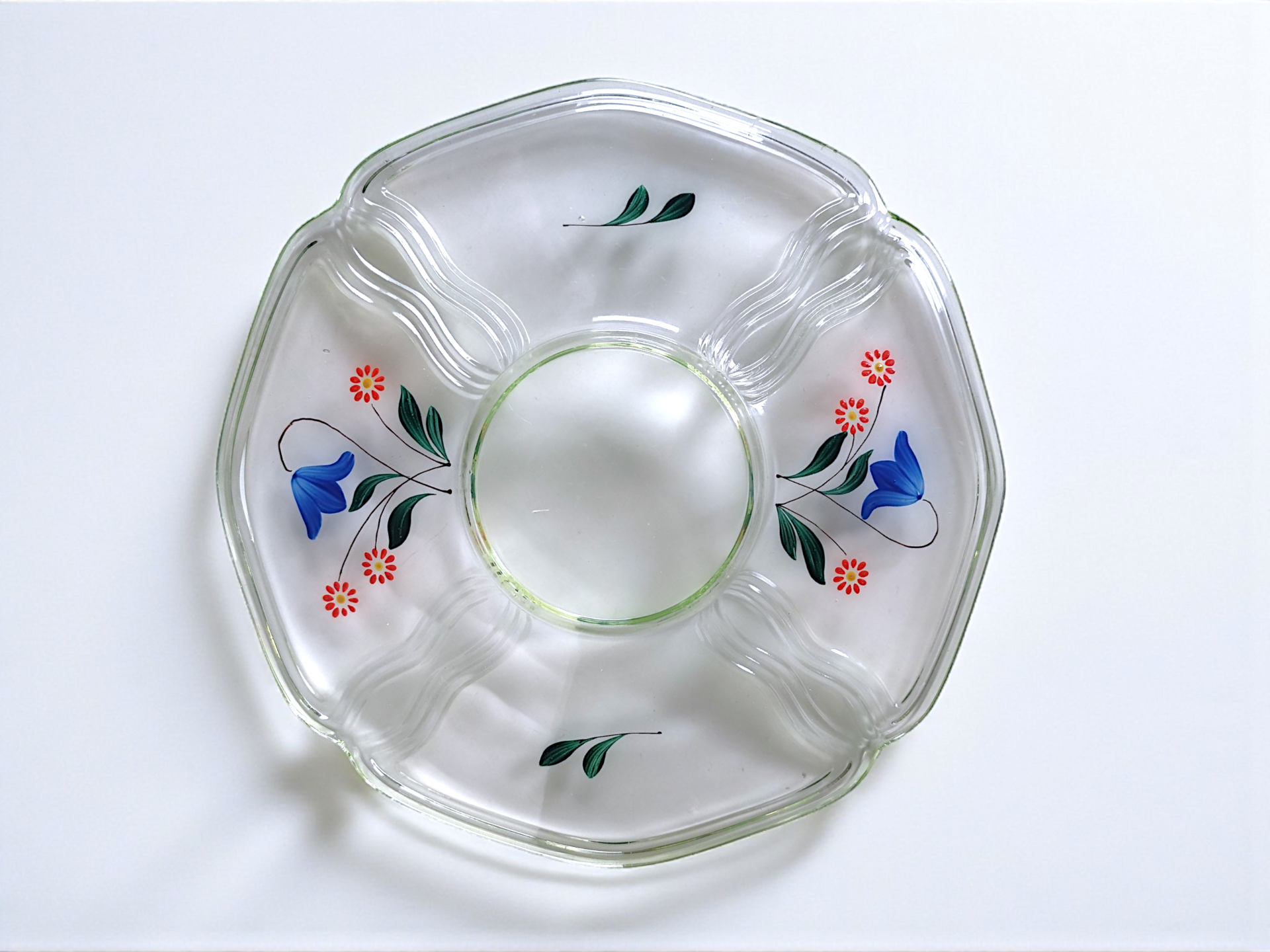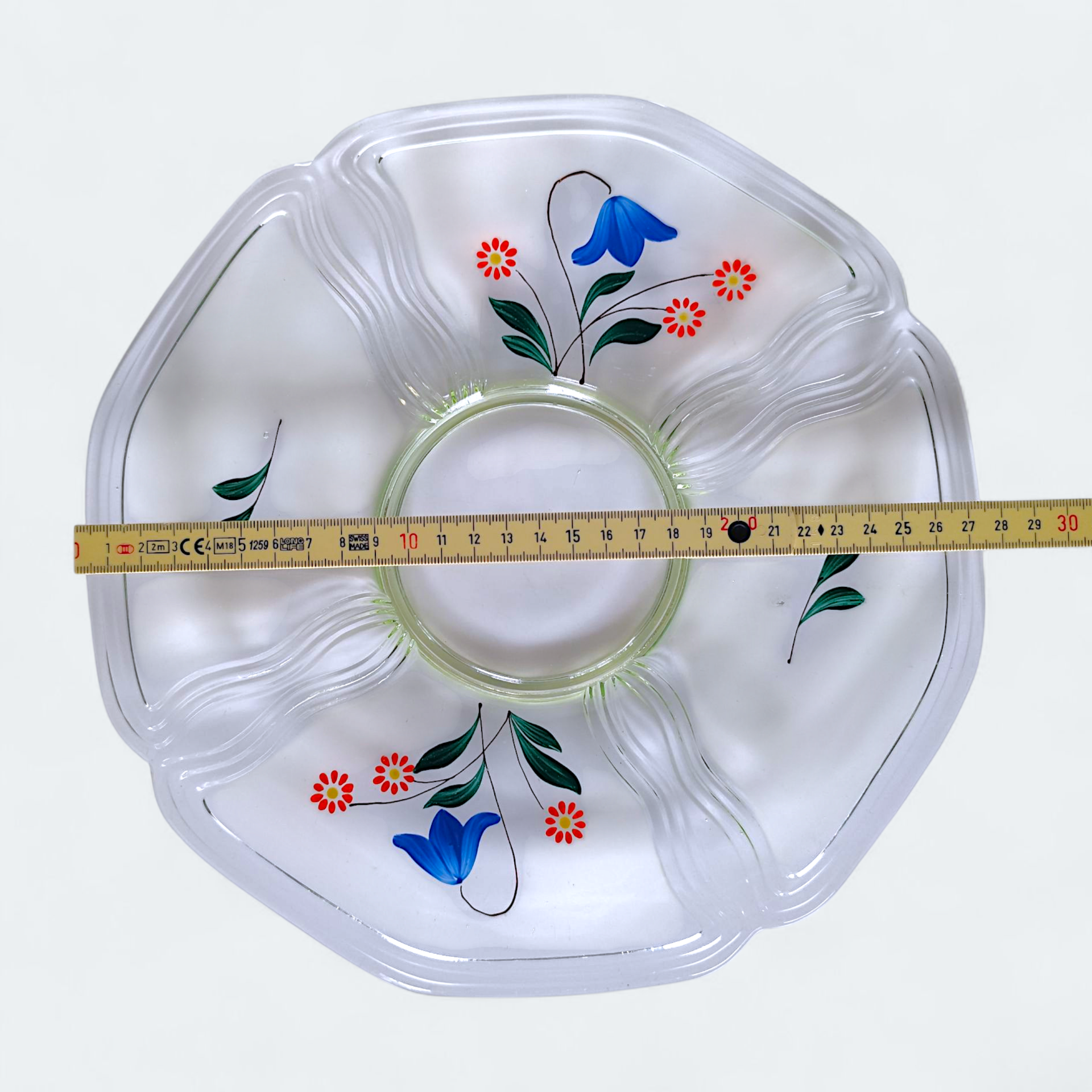 A vintage JOHANSFORS serving dish decorated with hand-painted flowers.