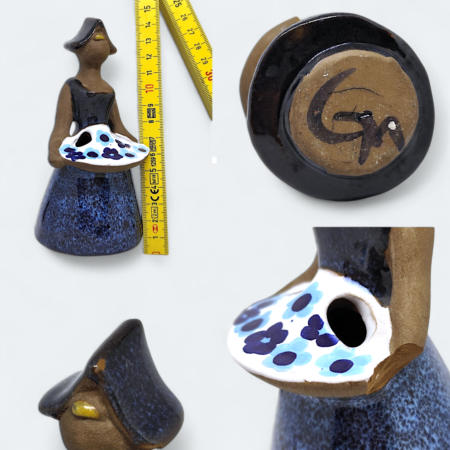 A flower girl in glazed ceramic. Designed by Ulla Skogh. The girl has holes in the bouquet so that you can put flowers in them. Perfect as a decorative detail in the home.