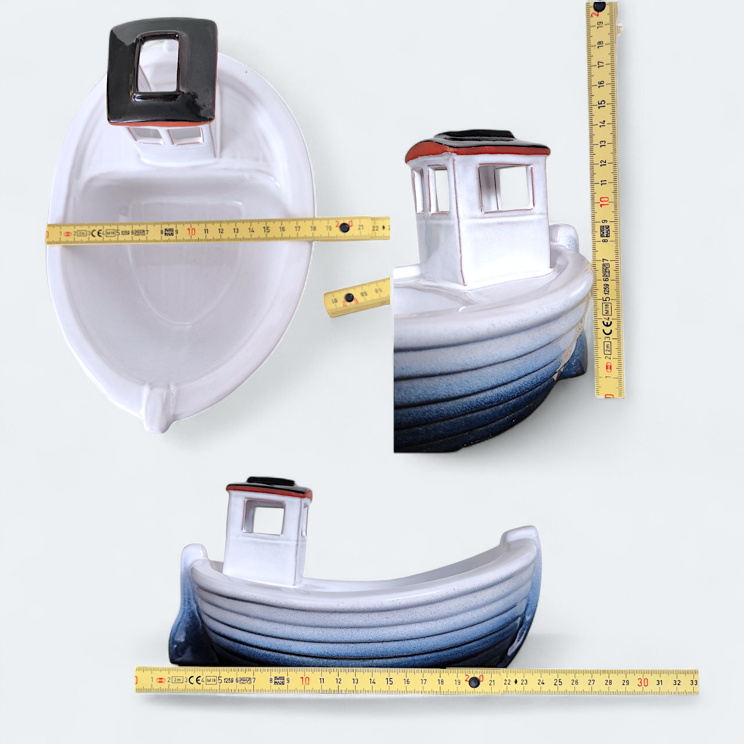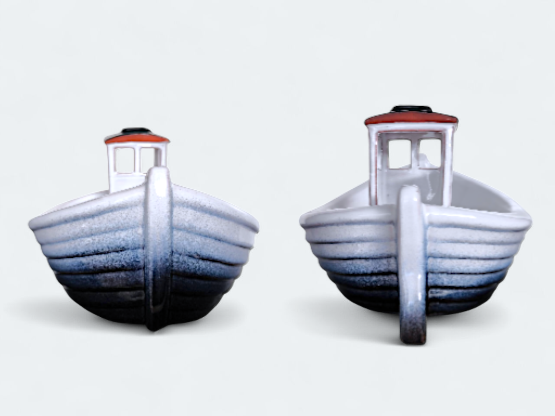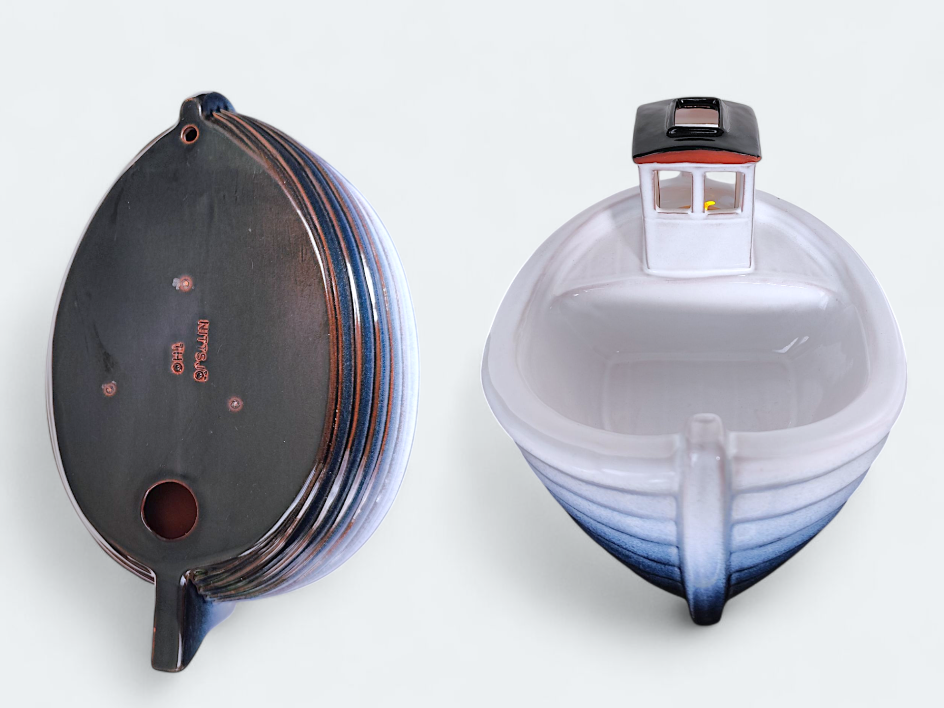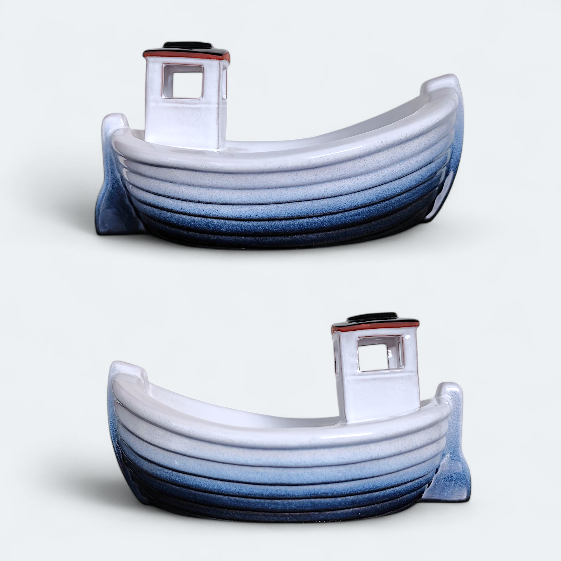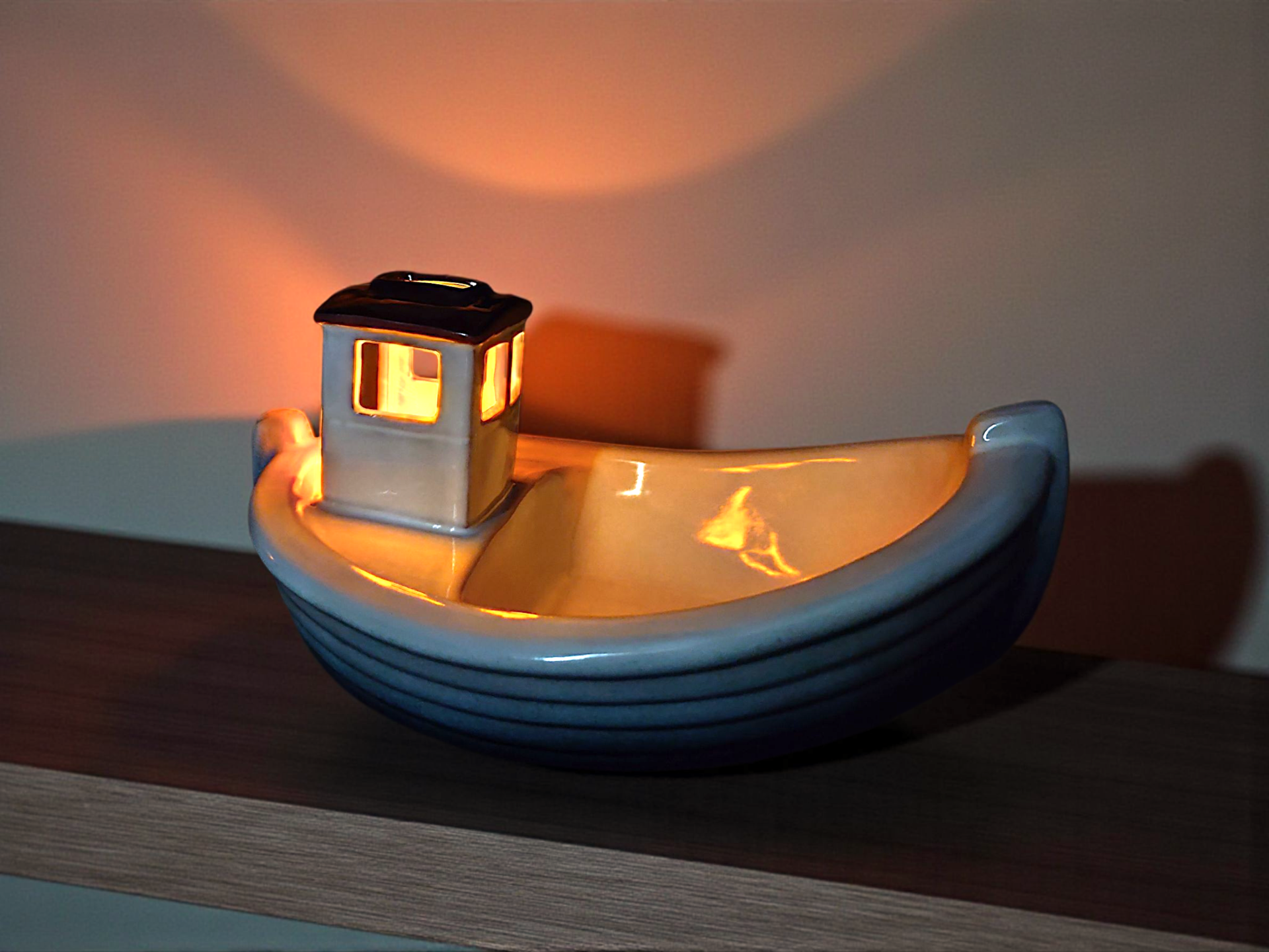 Candle lantern in the shape of a boat/shrimp trawler/shrimp boat in glazed ceramic from Nittsjö ceramics. Designed by Thomas Hellström.