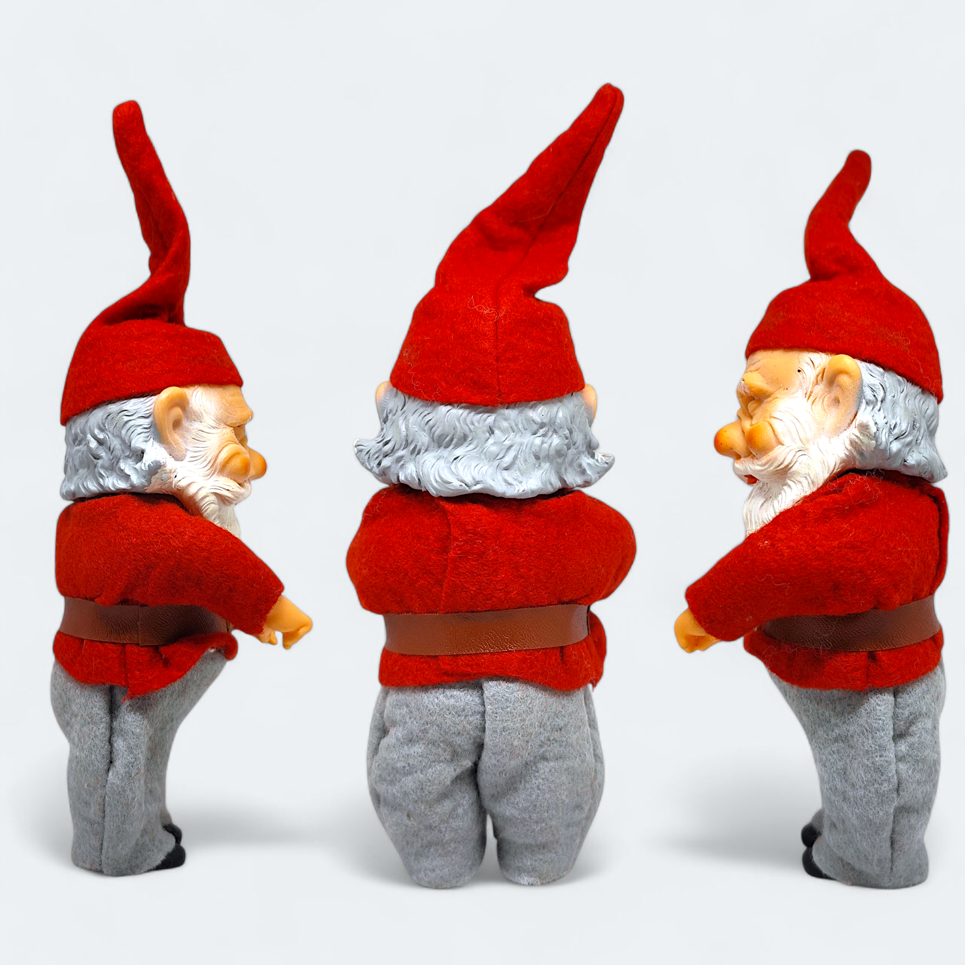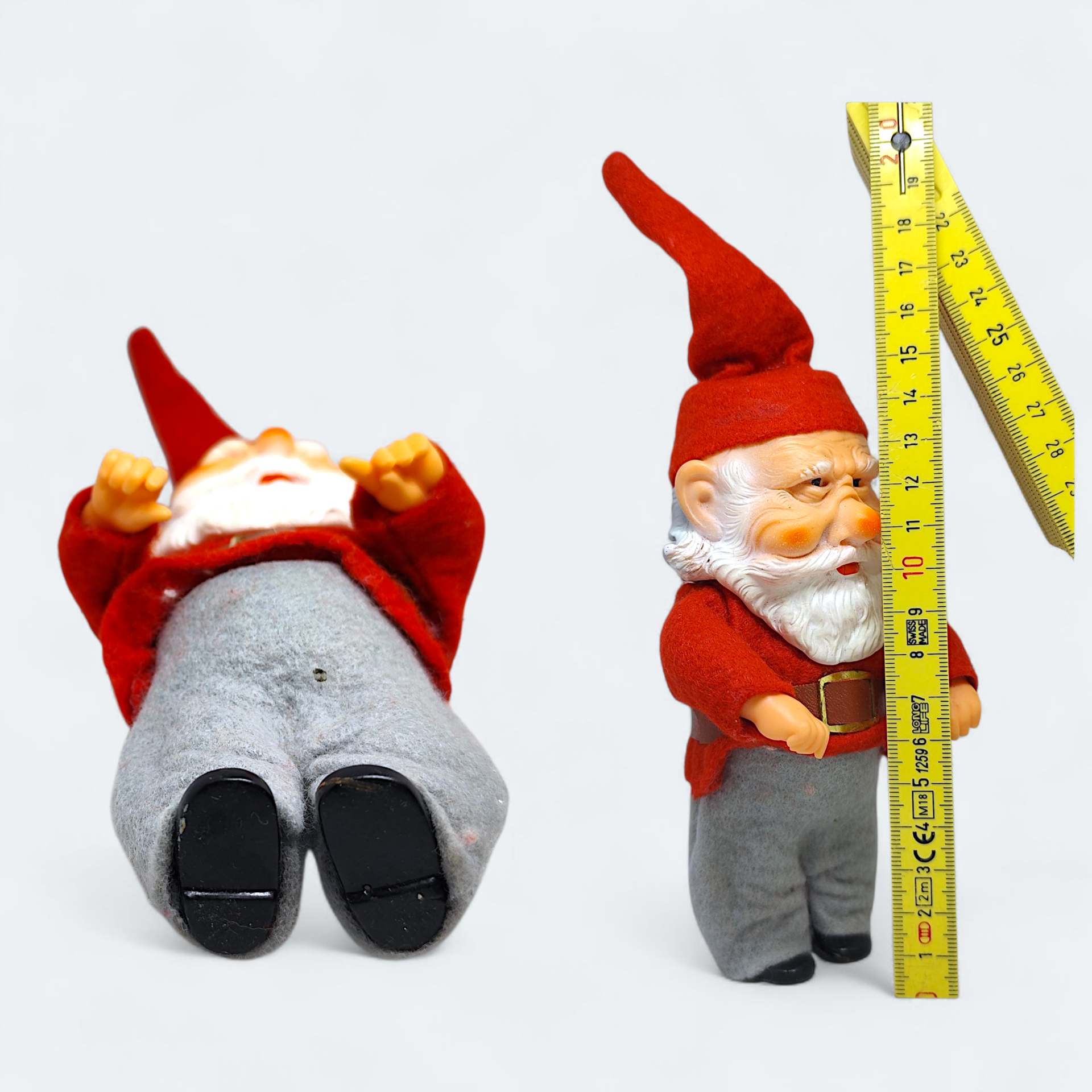 A vintage Santa Claus/Elf/Gnome with a slightly sour expression. A definitely funny Santa to look at. Made of plastic and fabric. Perfect as a Christmas decoration.