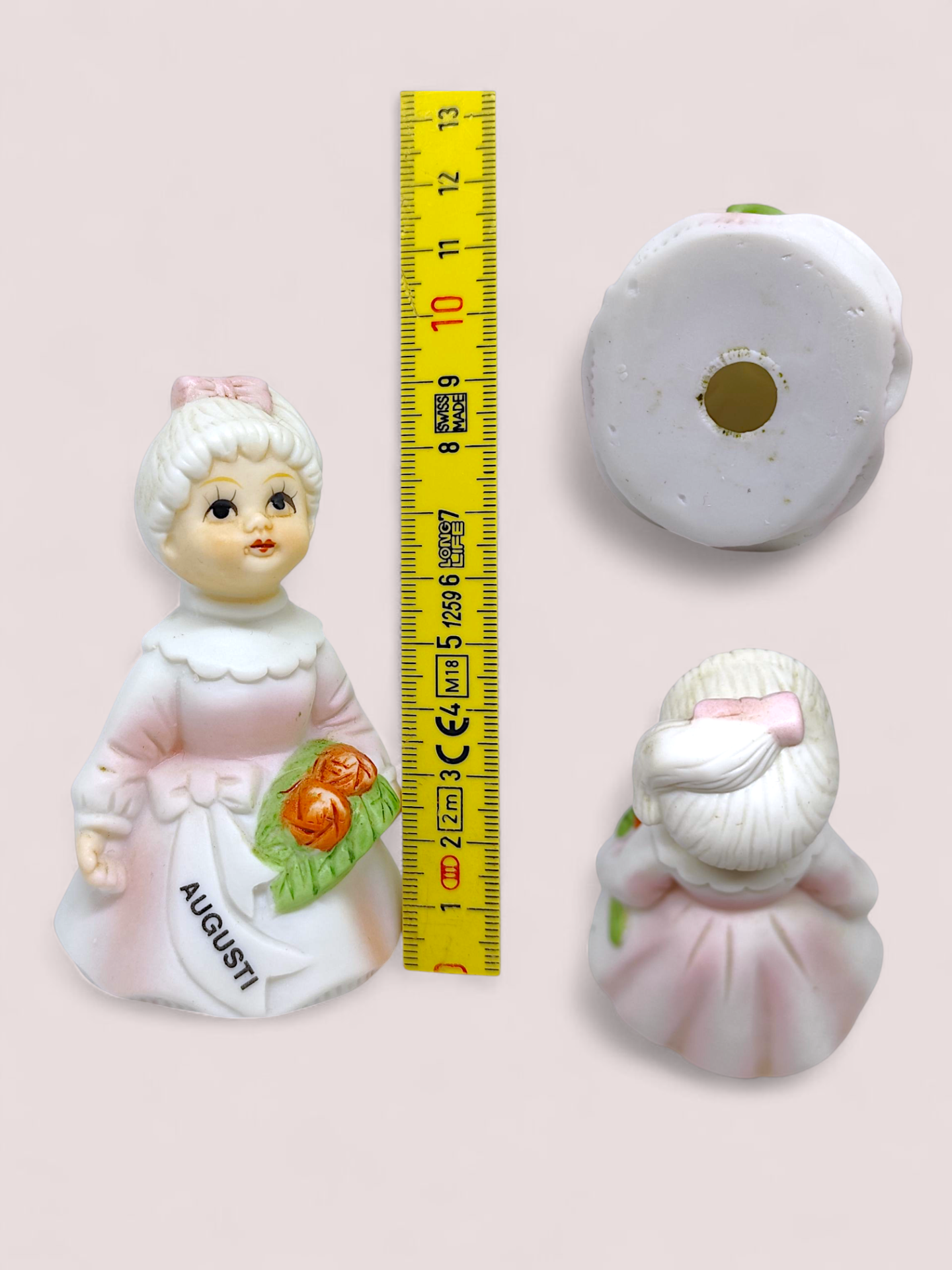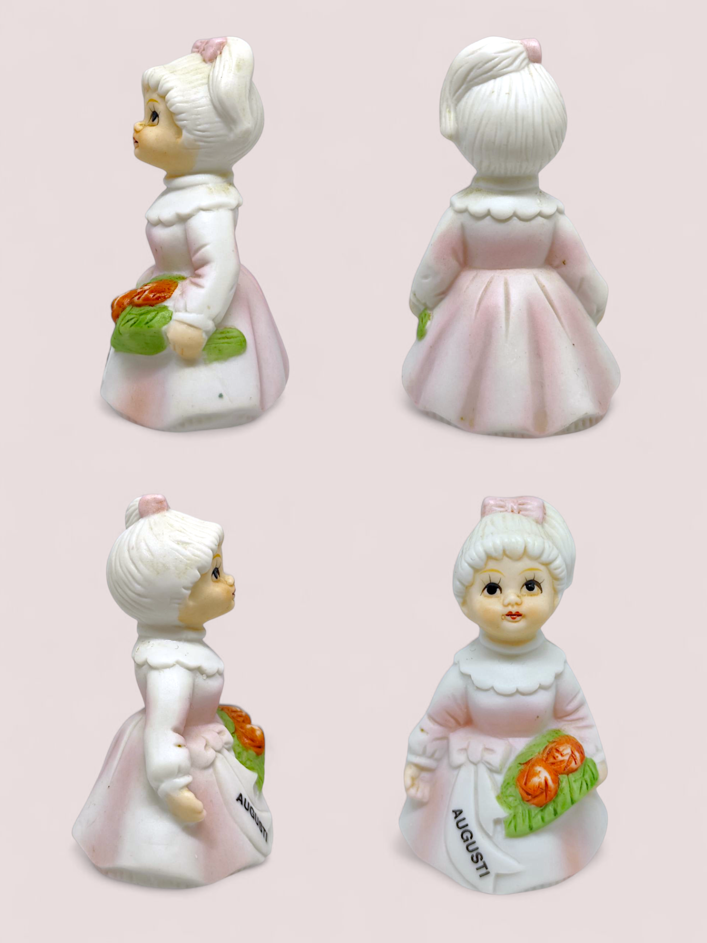 Vintage August porcelain birthday girl with flowers. Month girl made in Japan.