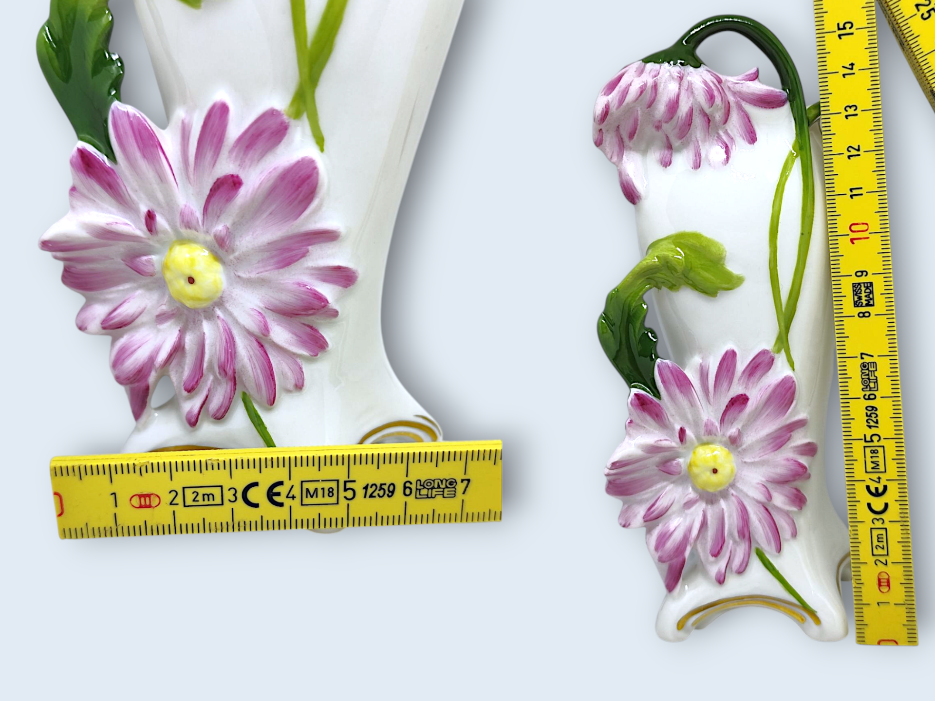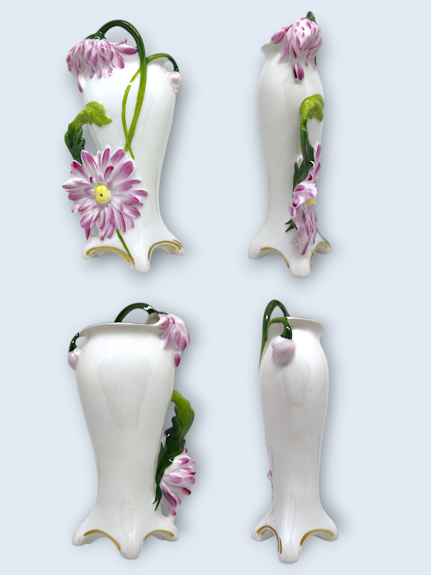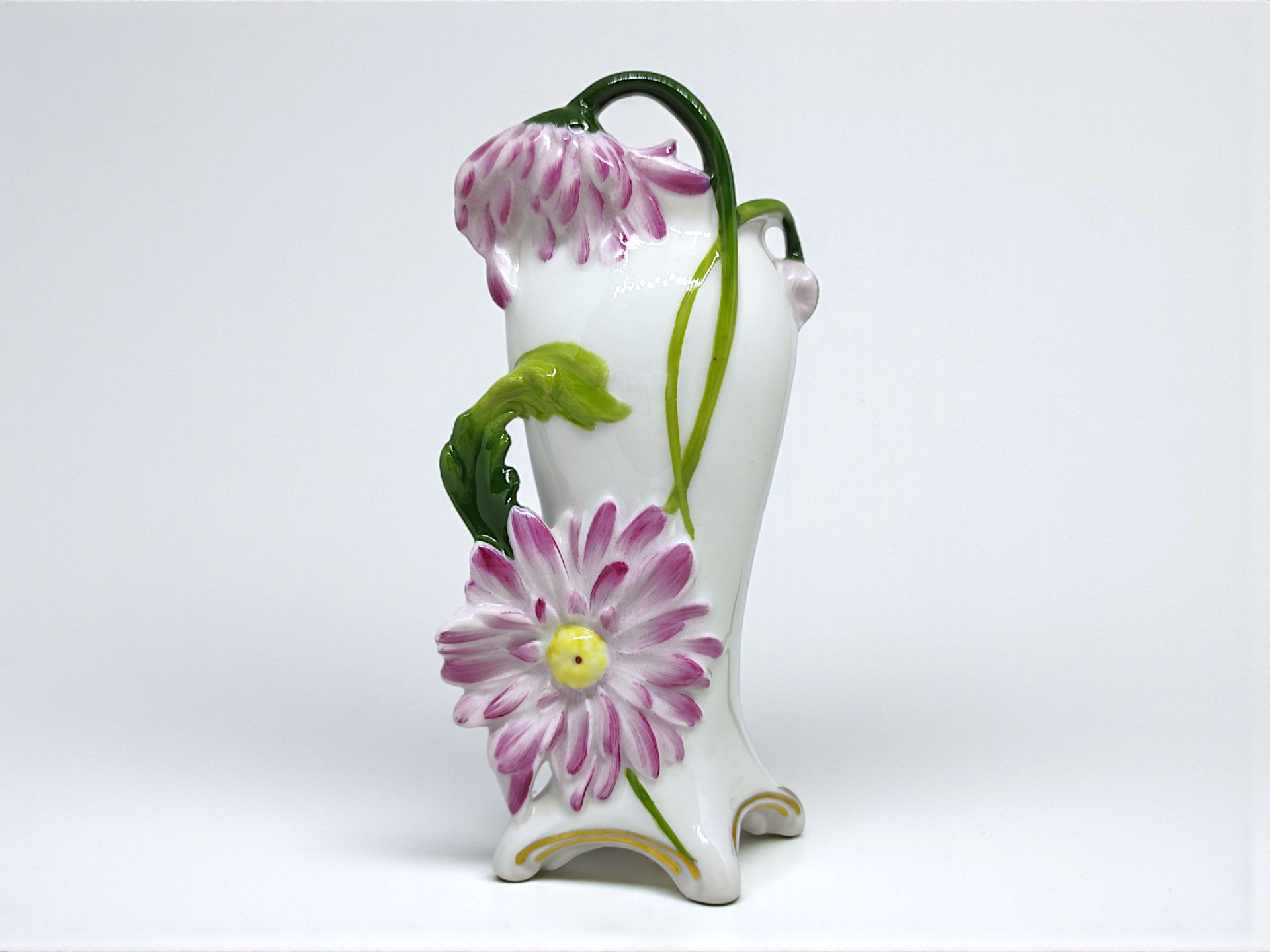 A vintage porcelain vase from the 1930s. From Scheibe-Alsbach in Jugendstil (Art Nouveau) and Art Deco influences. The vase is a miniature flower vase made, painted and glazed by hand in Germany. Stamped on the bottom.