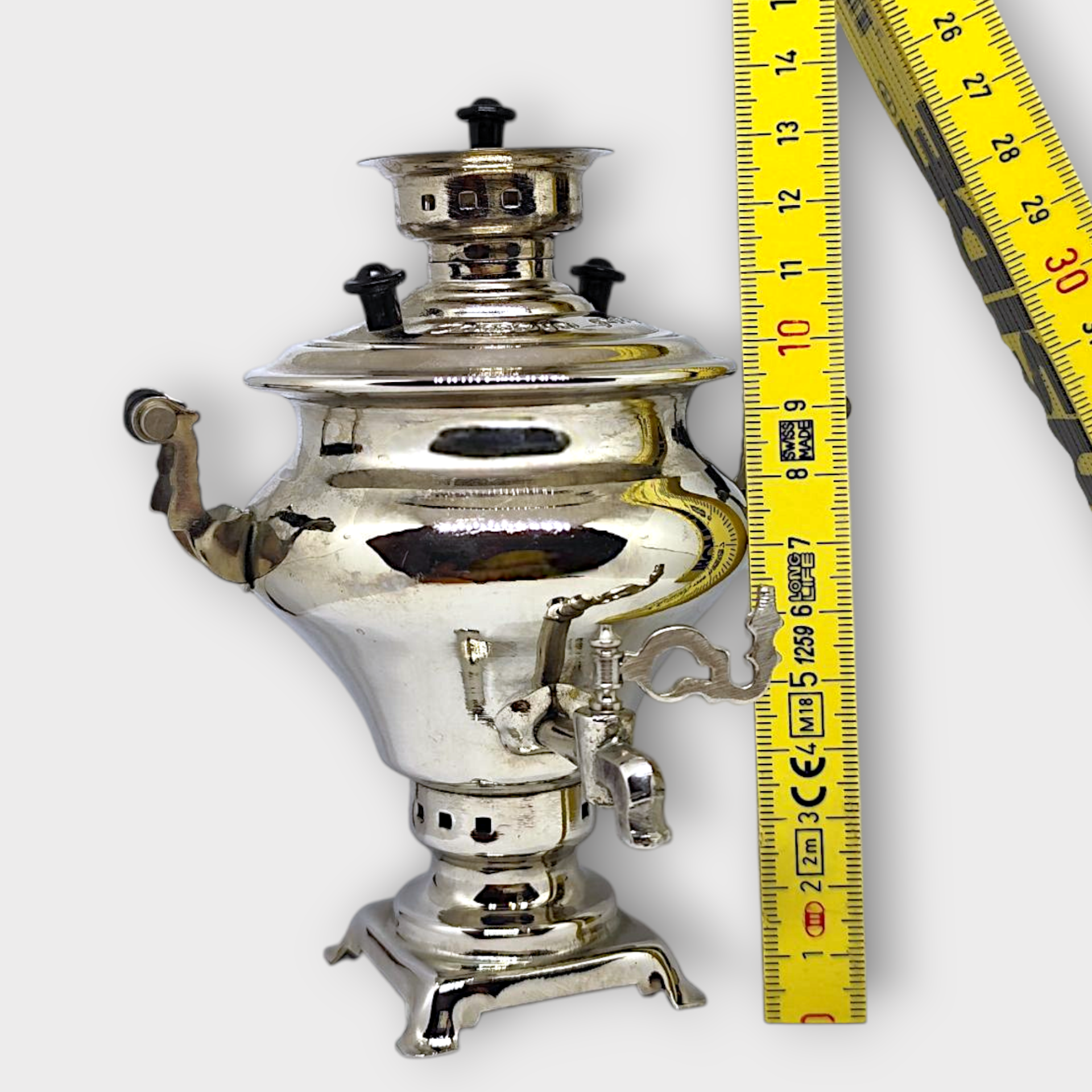 A miniature samovar from the Soviet Union. It is a replica of a real Russian samovar that you drink/drank tea from. It is a collector's samovar that is nice as home decoration.