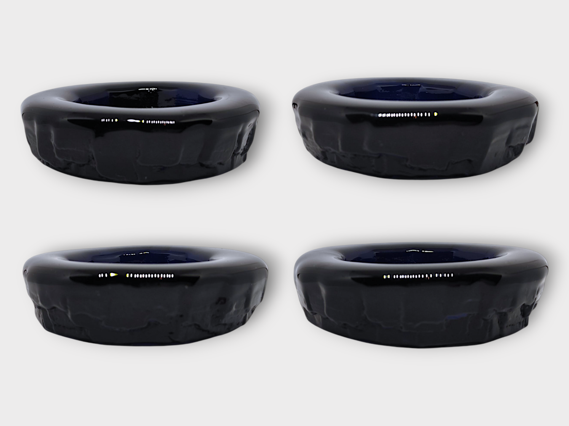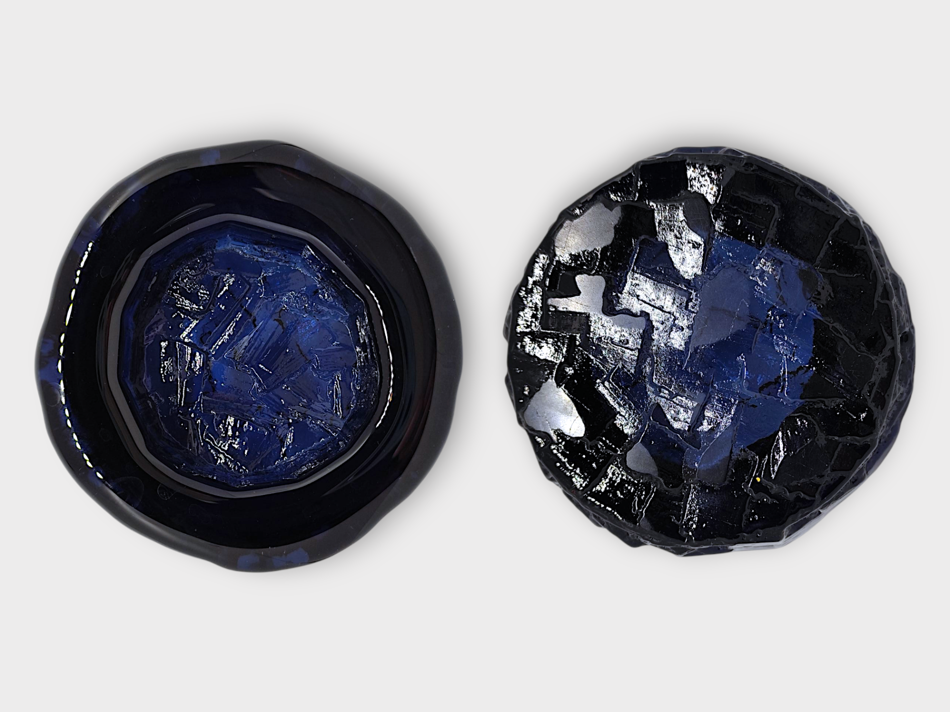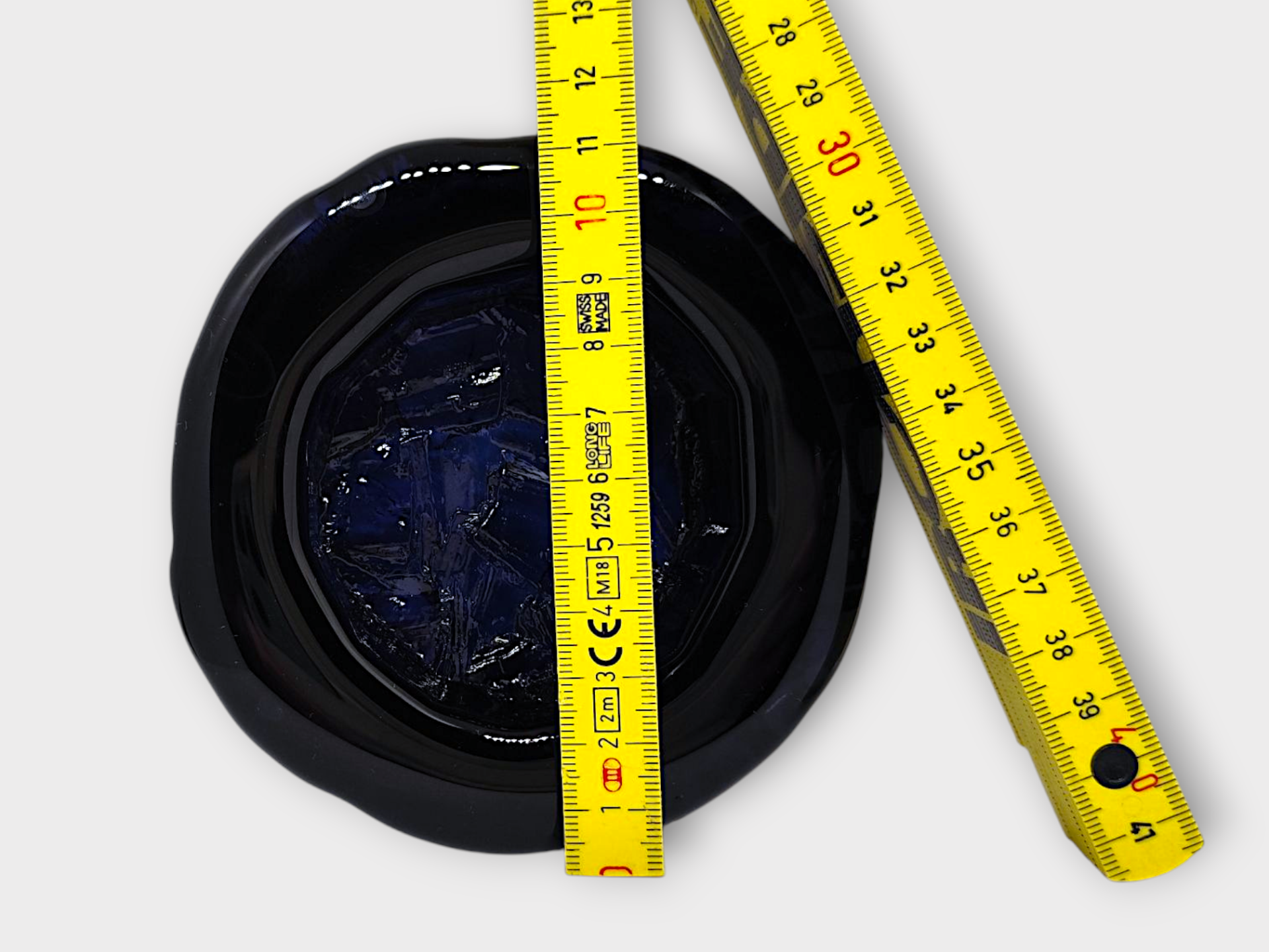A vintage ashtray in dark blue/black glass. Designed by Göte Augustsson in the 50s-60s. Probably made by Ruda Glasbruk.