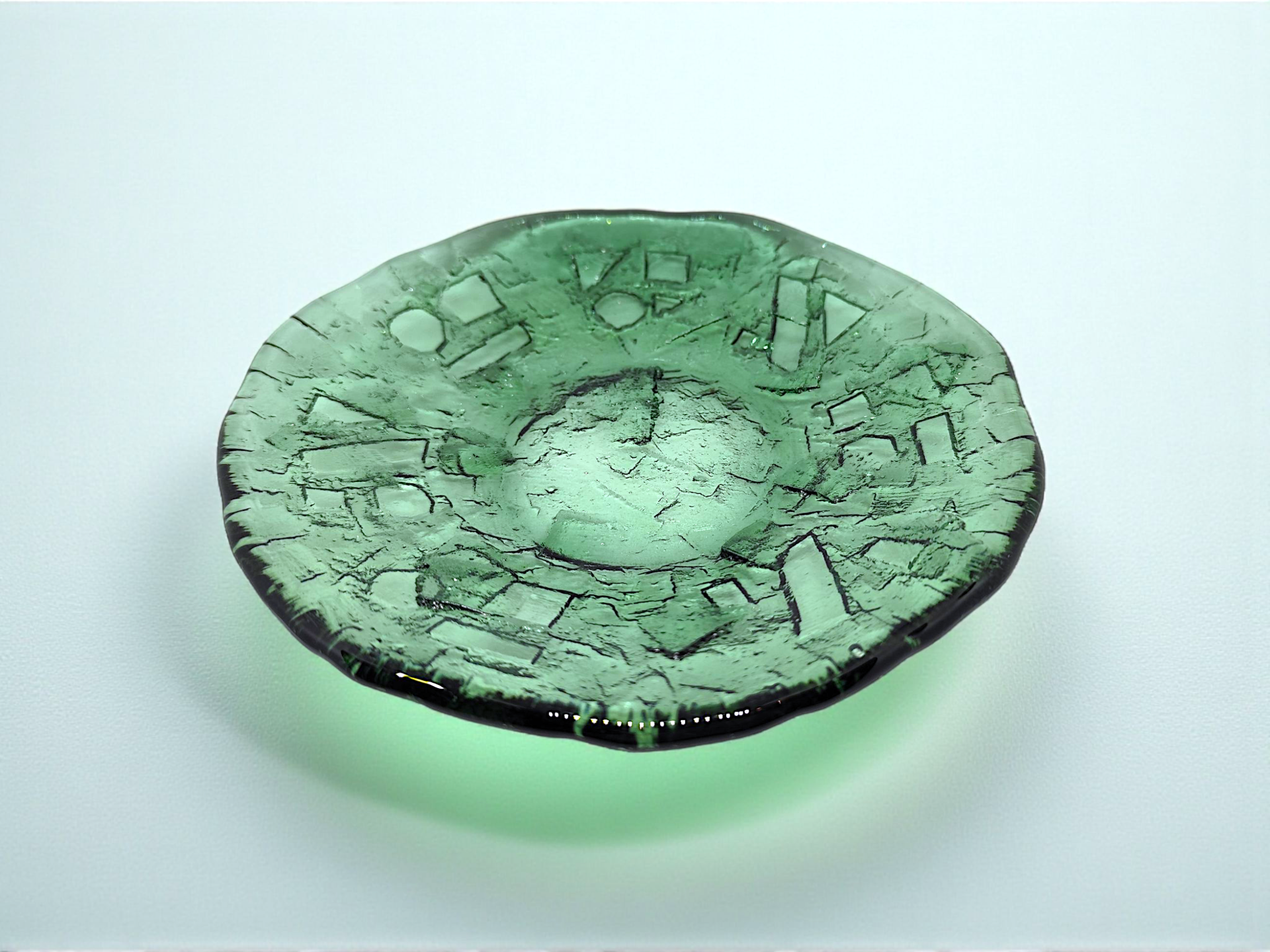 A vintage green glass dish. Designed by Göte Augustsson in the 50s-60s. Probably made by Ruda Glasbruk.