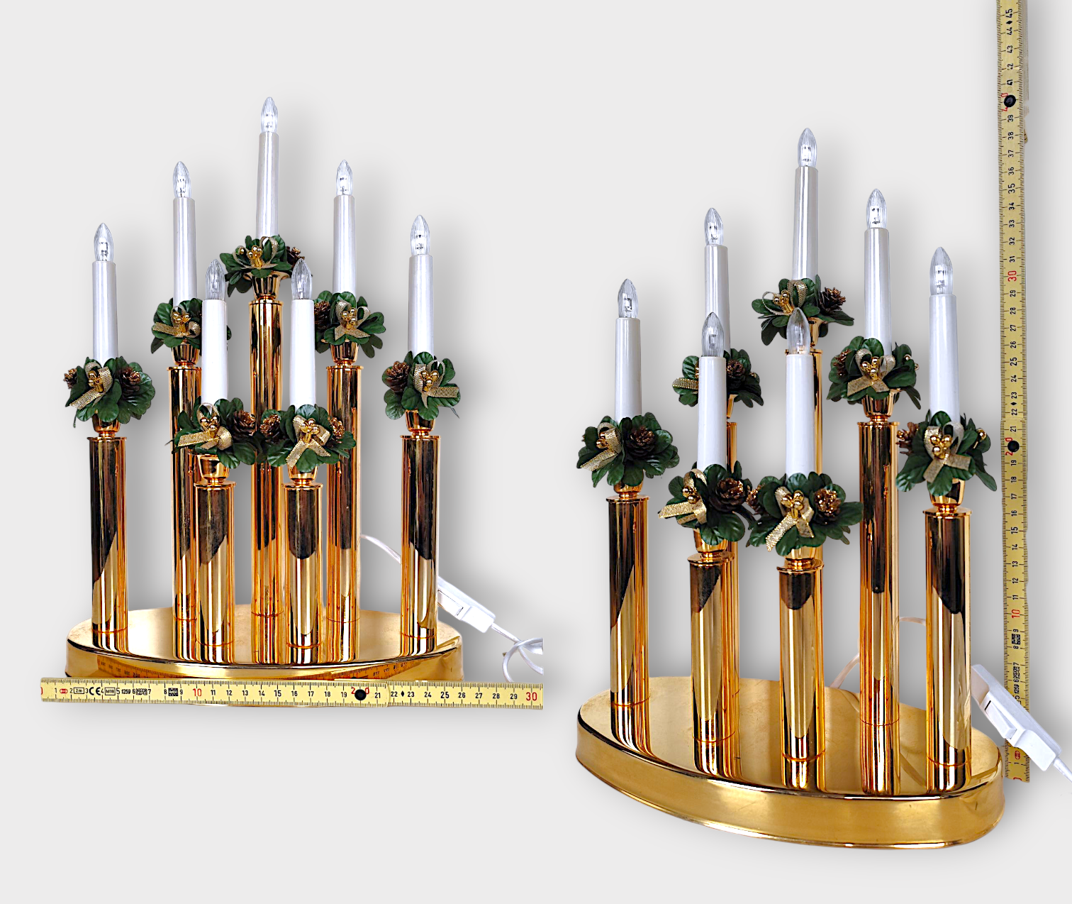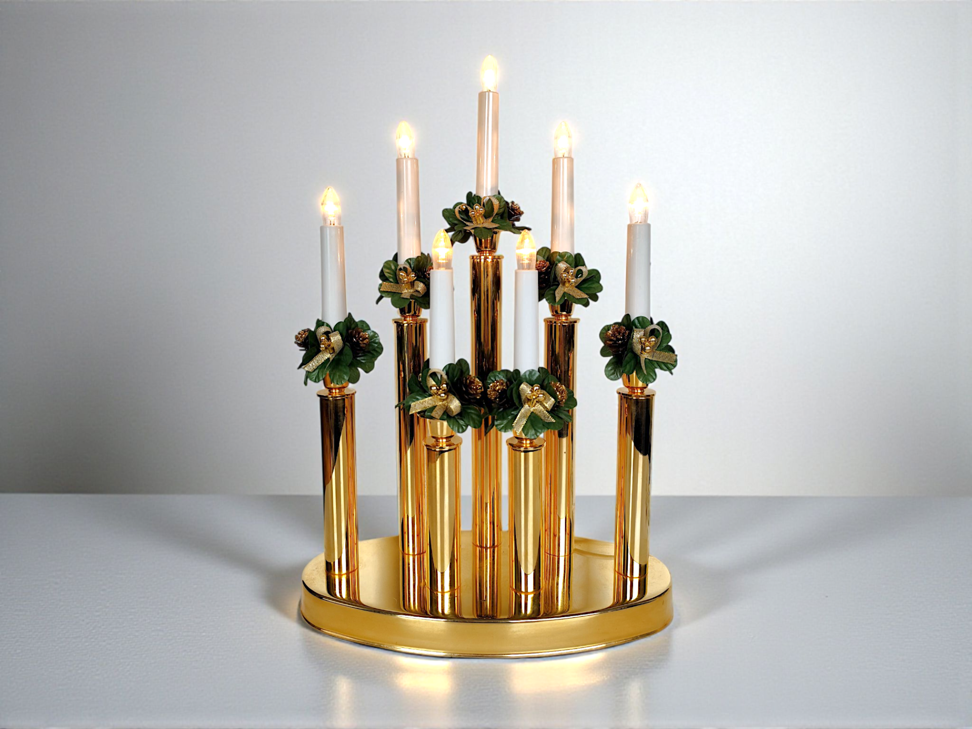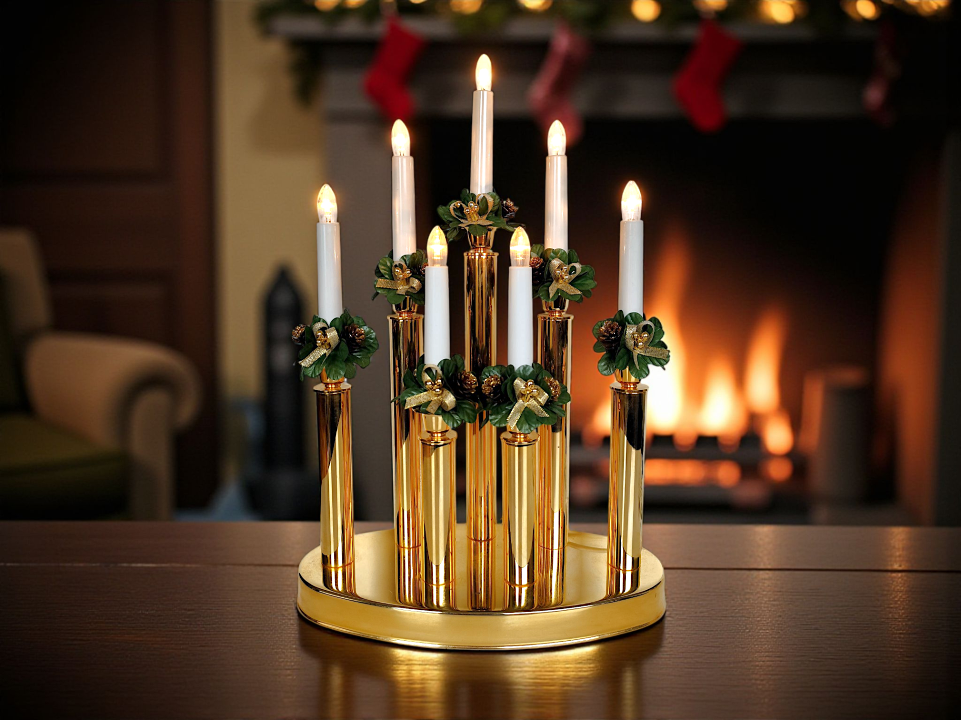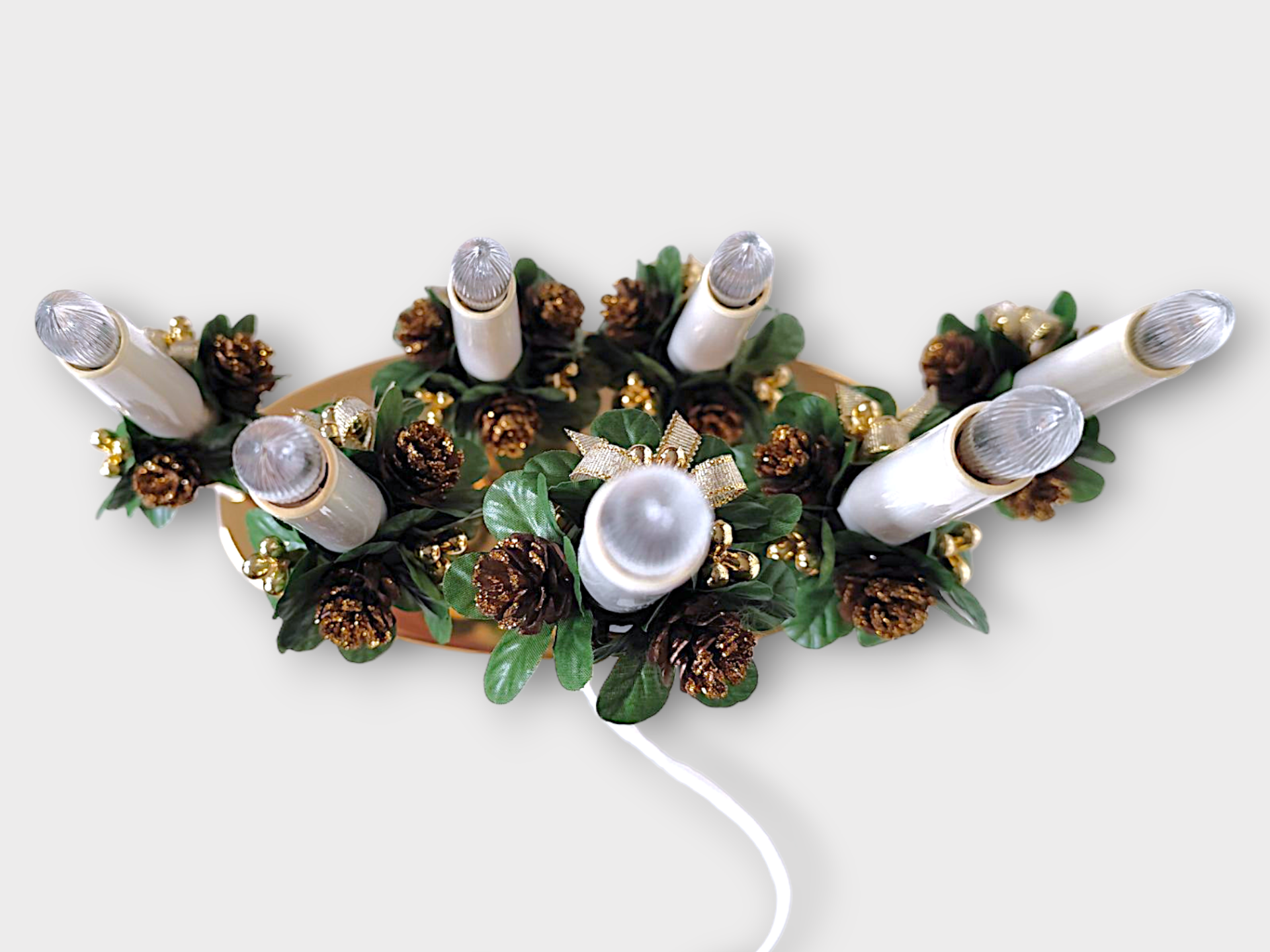 It has 7 light points and decorations of artificial pine cones, leaves, gold-colored berries and bows. A beautiful Advent candle holder that spreads a lovely warm light and gives the home a Christmas feel.