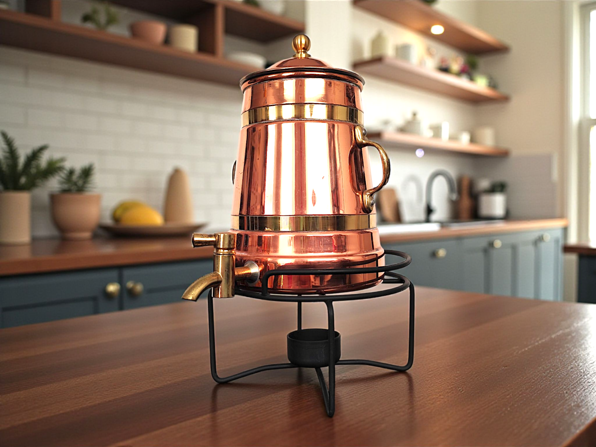 This copper kettle is the perfect kitchen utensil for those who want something beautiful and functional on the stove. With a capacity of 1.5 liters and a completely canned interior, it is easy to make any drink, from coffee and tea to hot chocolate and milk.