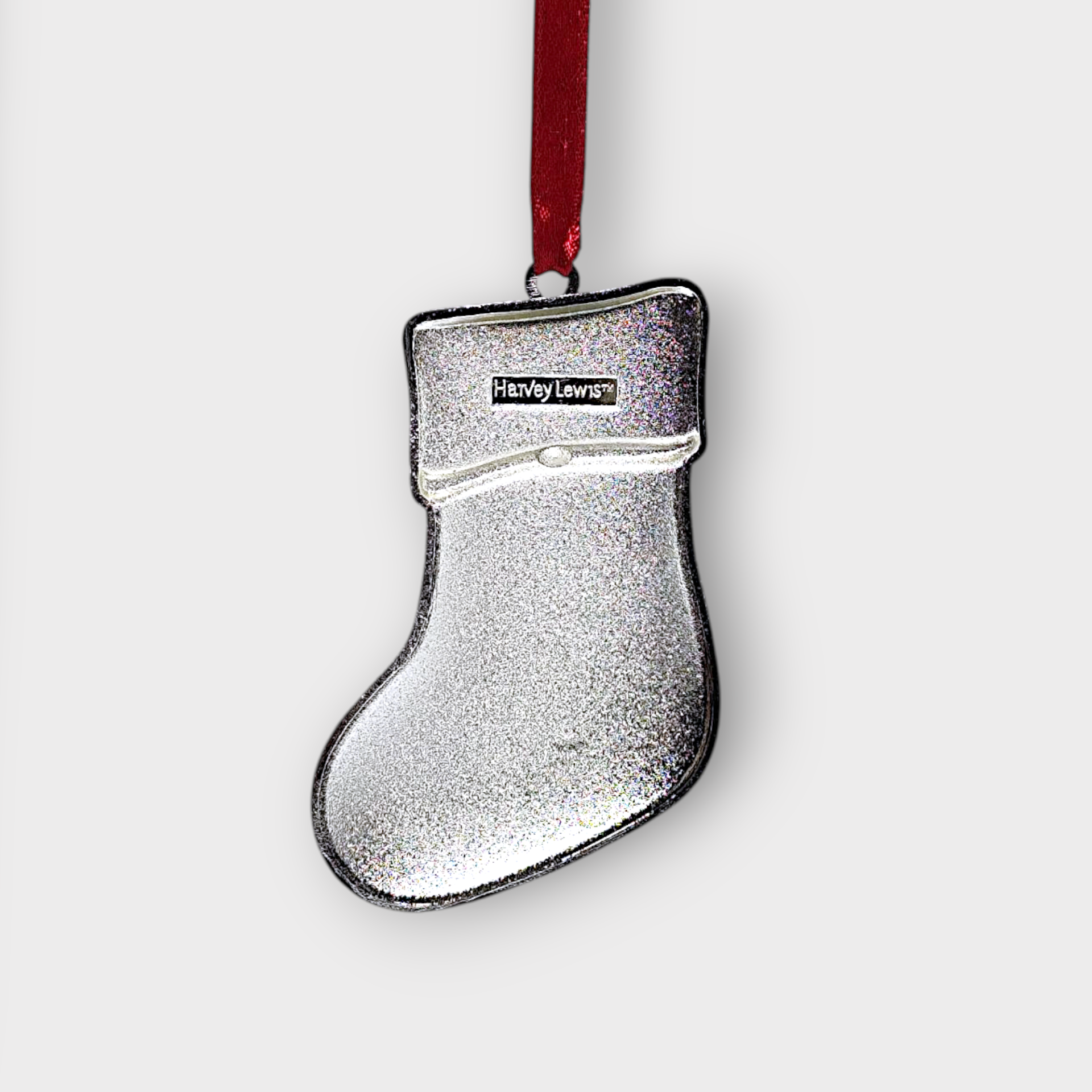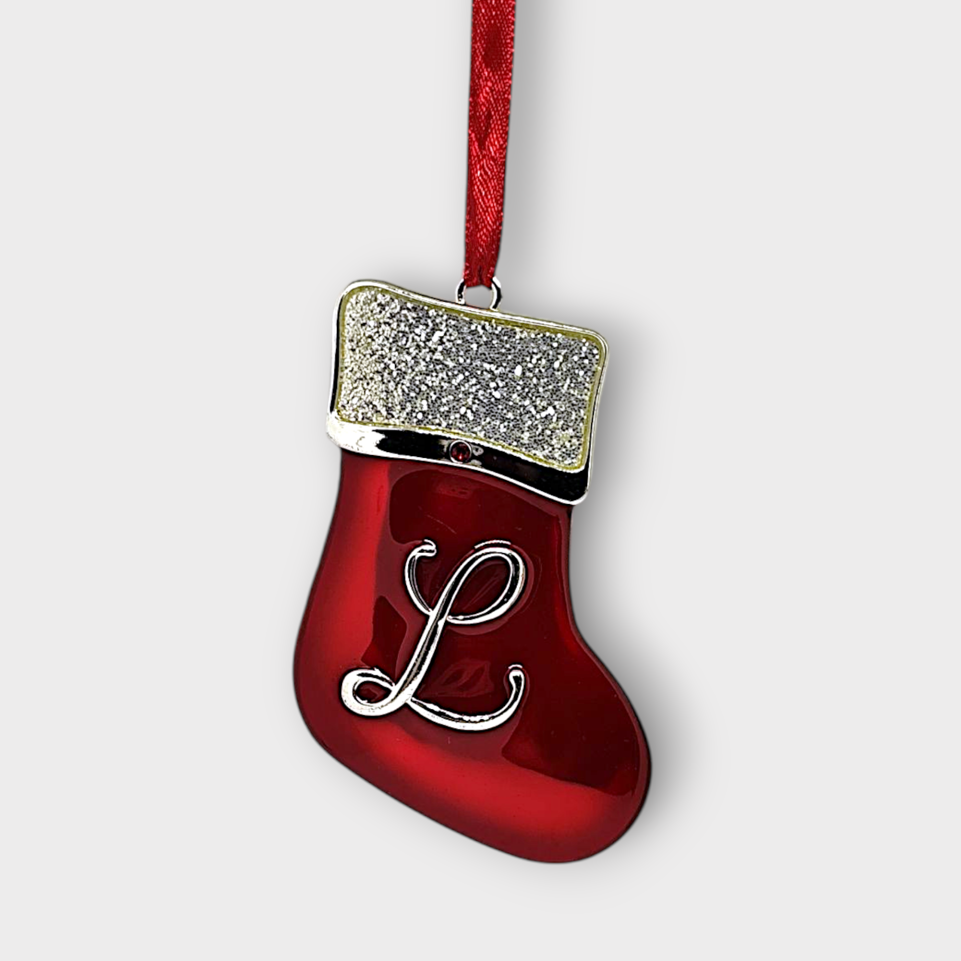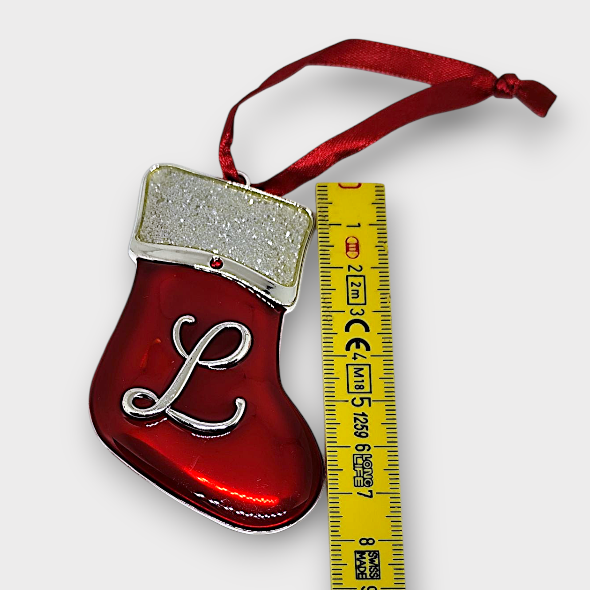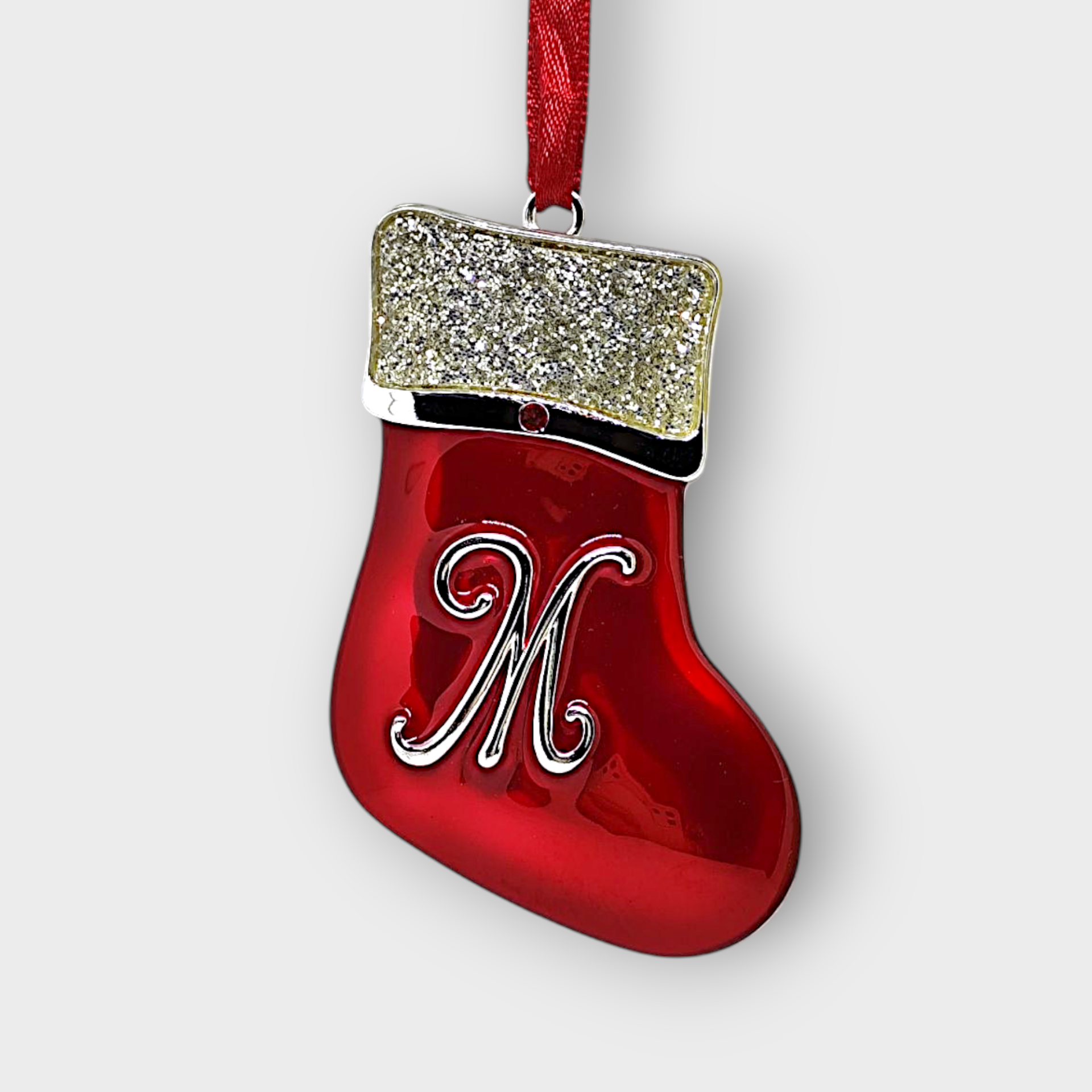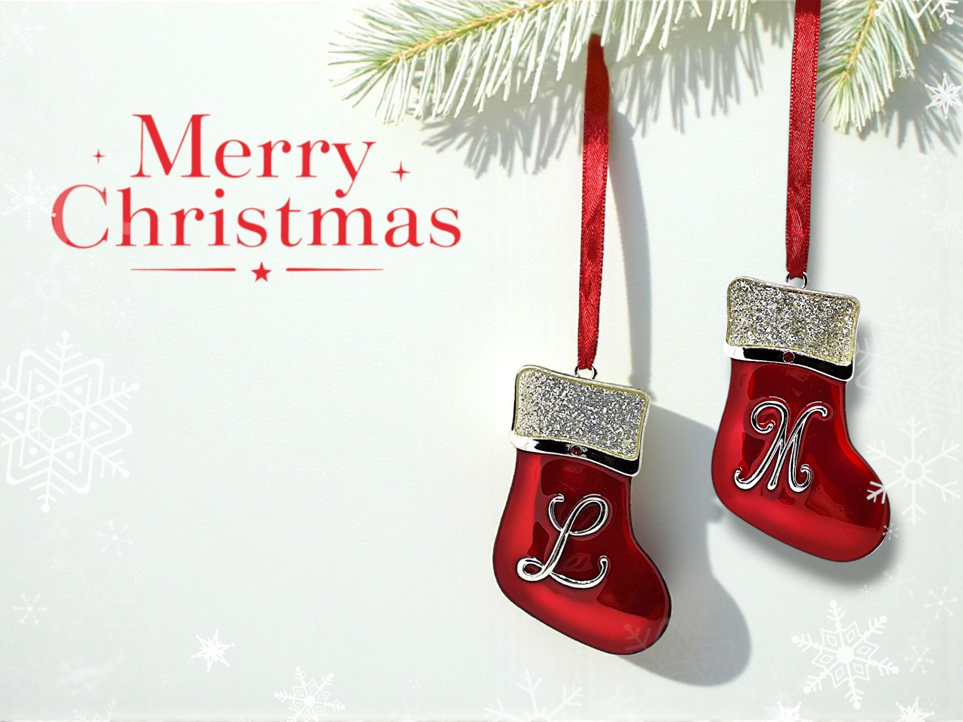 Regent Square Studio Design Silver Plated Monogrammed Red Christmas Stocking Ornaments with Fine European Crystals and the Letter M and L.