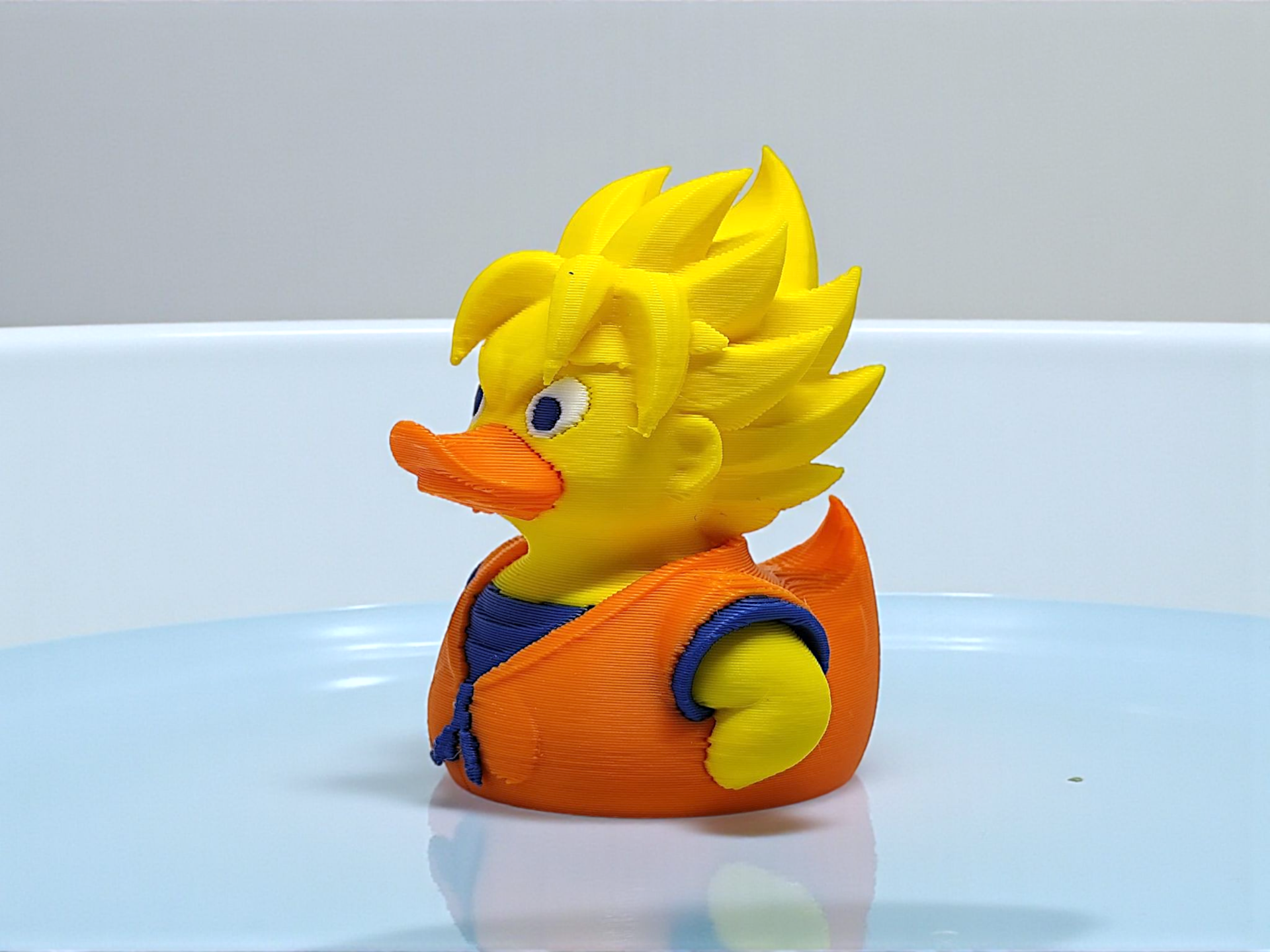 3D printed duck inspired by the Dragon Ball Z character Goku.