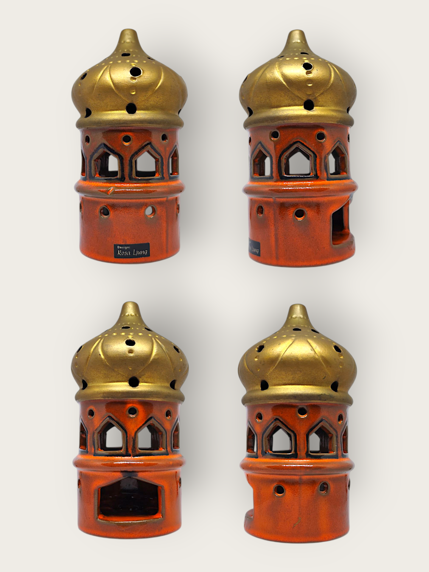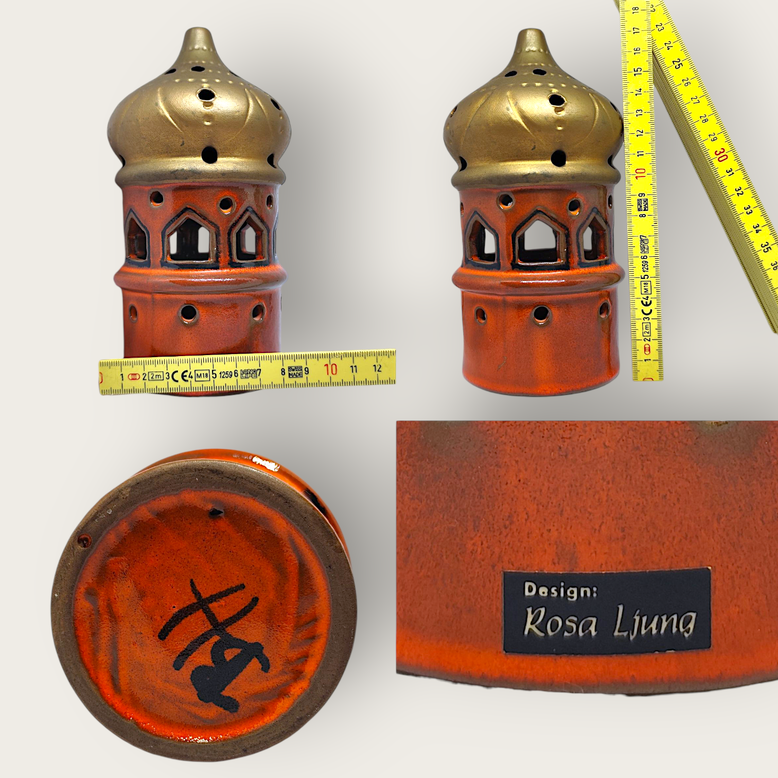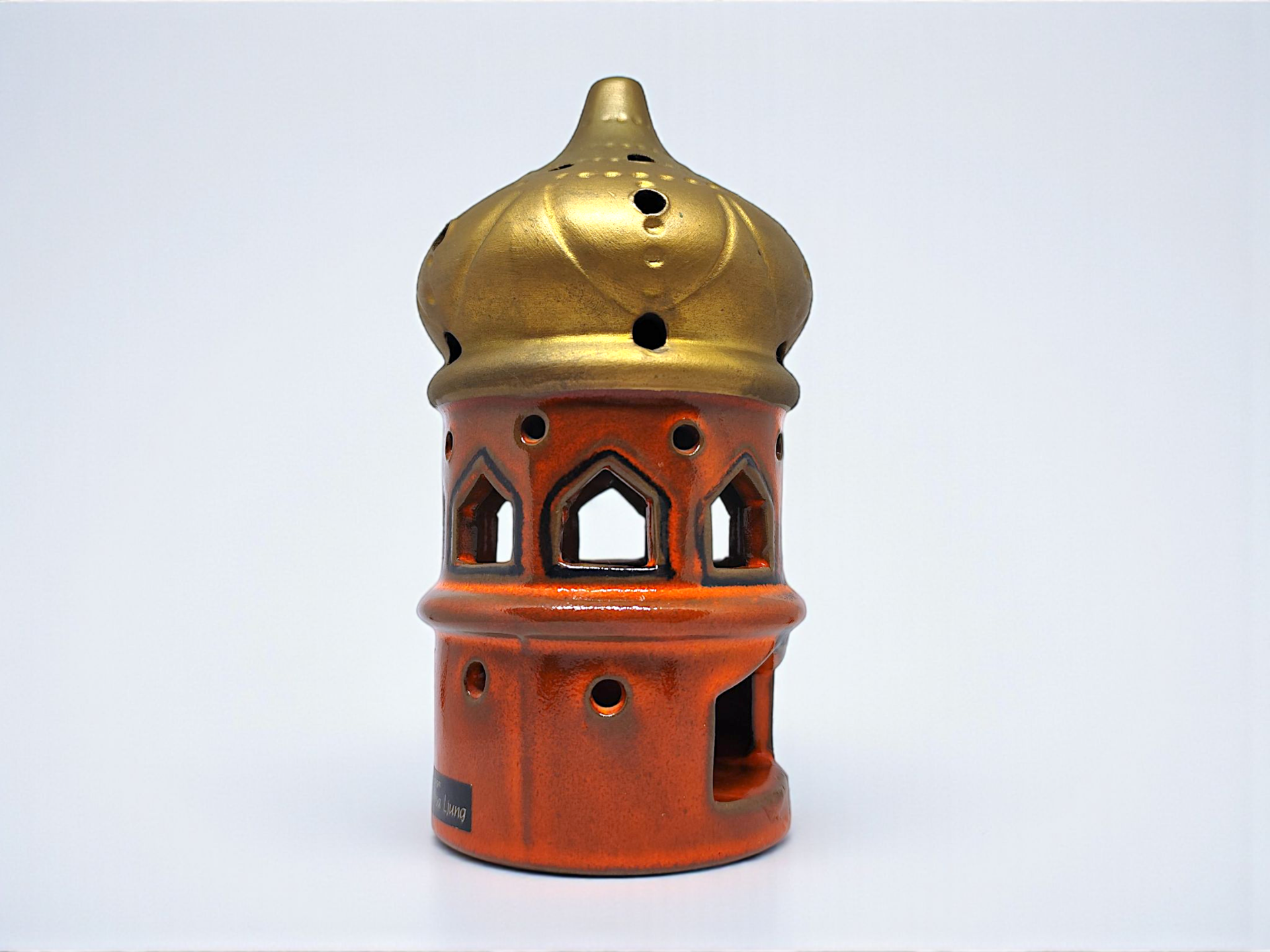 An oriental style candle lantern. Made of ceramic by Rosa Ljung. Signed at the bottom BH (probably Brita Heilimo).