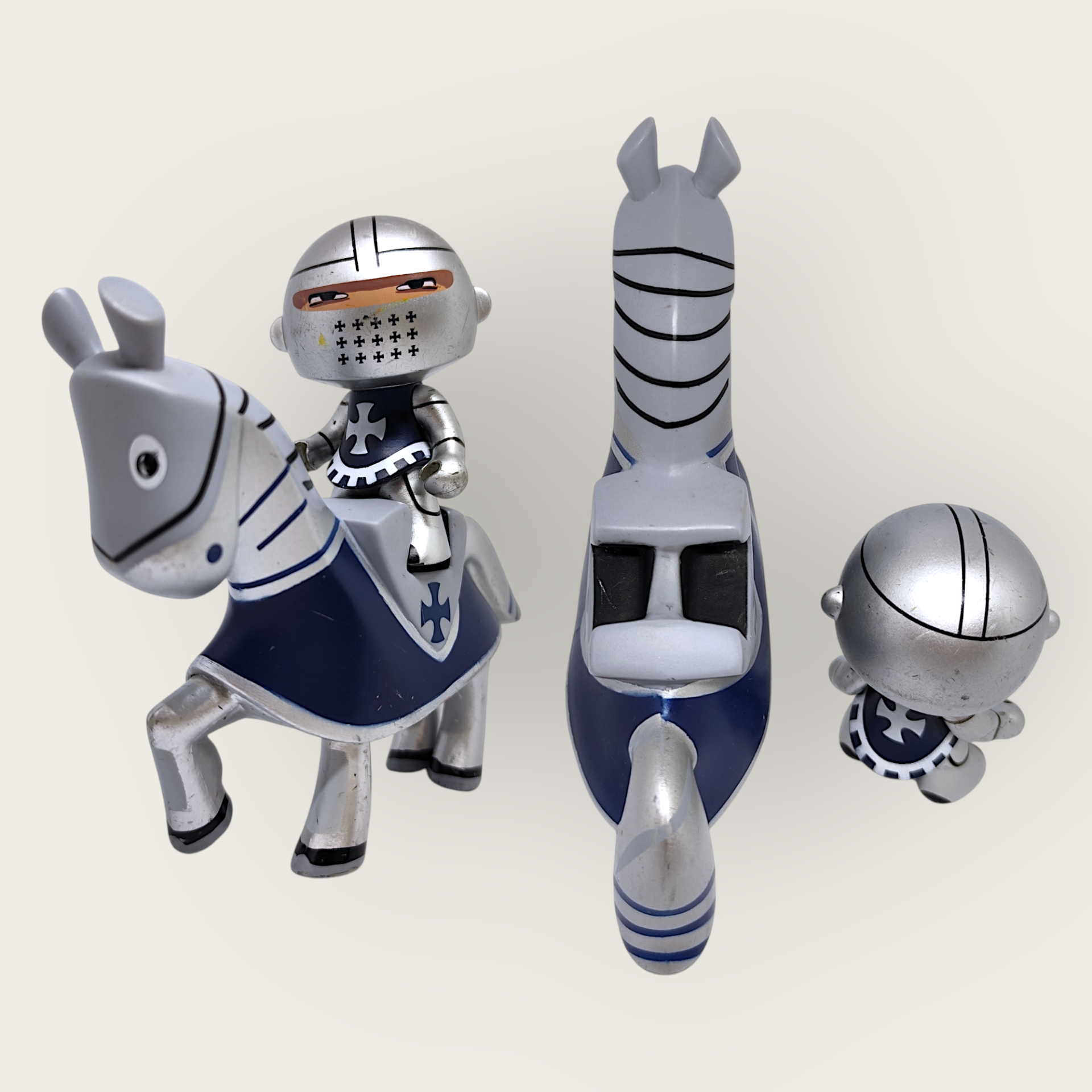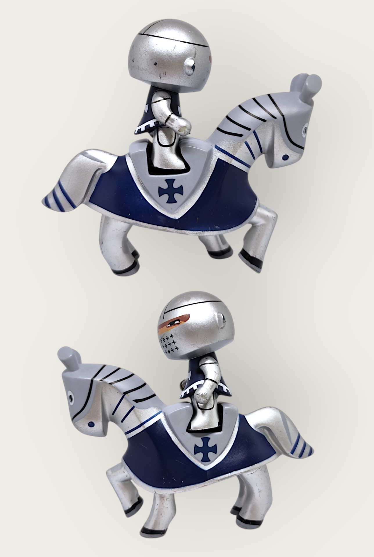 He is part of the Arty Toys series from Djeco. The knight is dressed in silver, blue and white - just like his faithful knights.