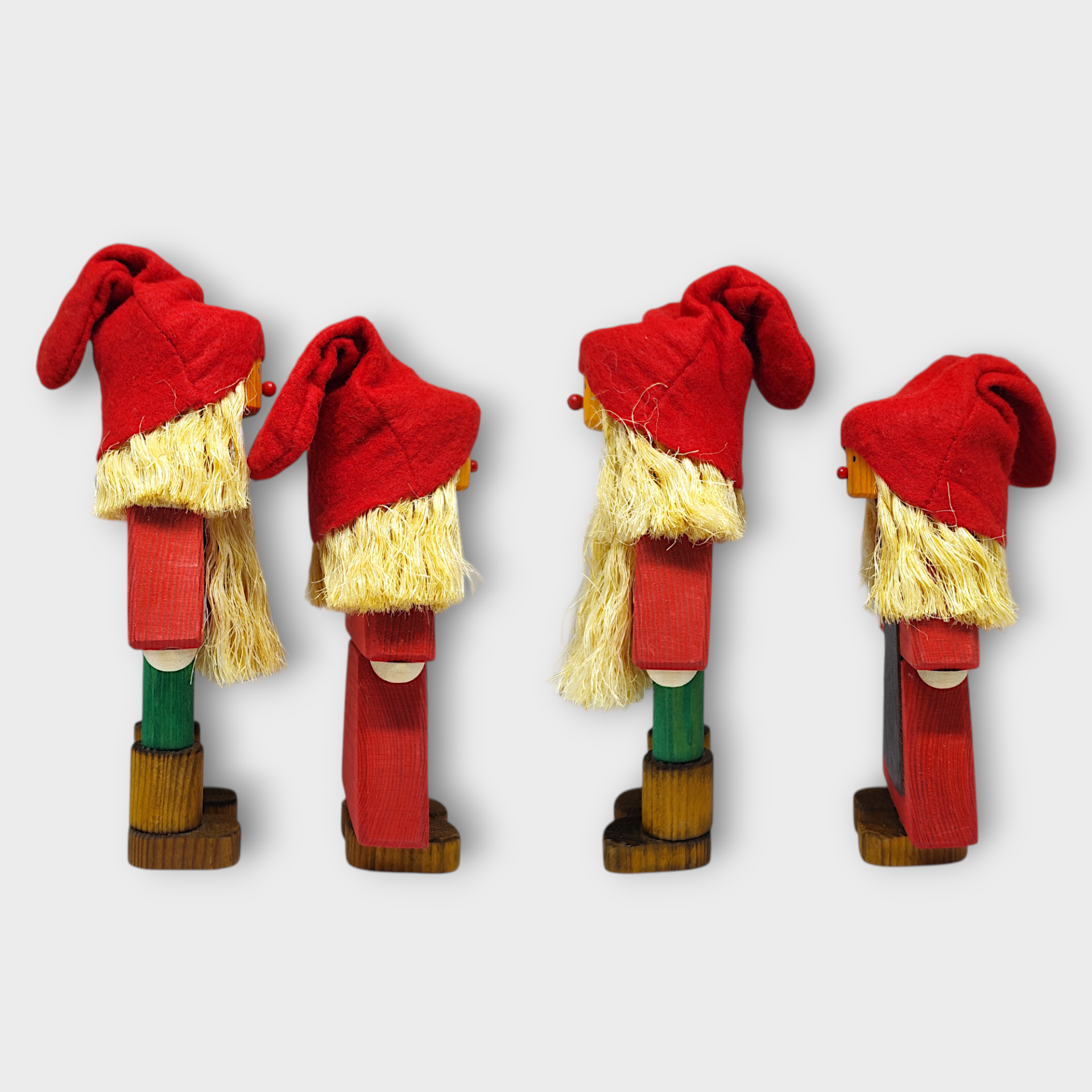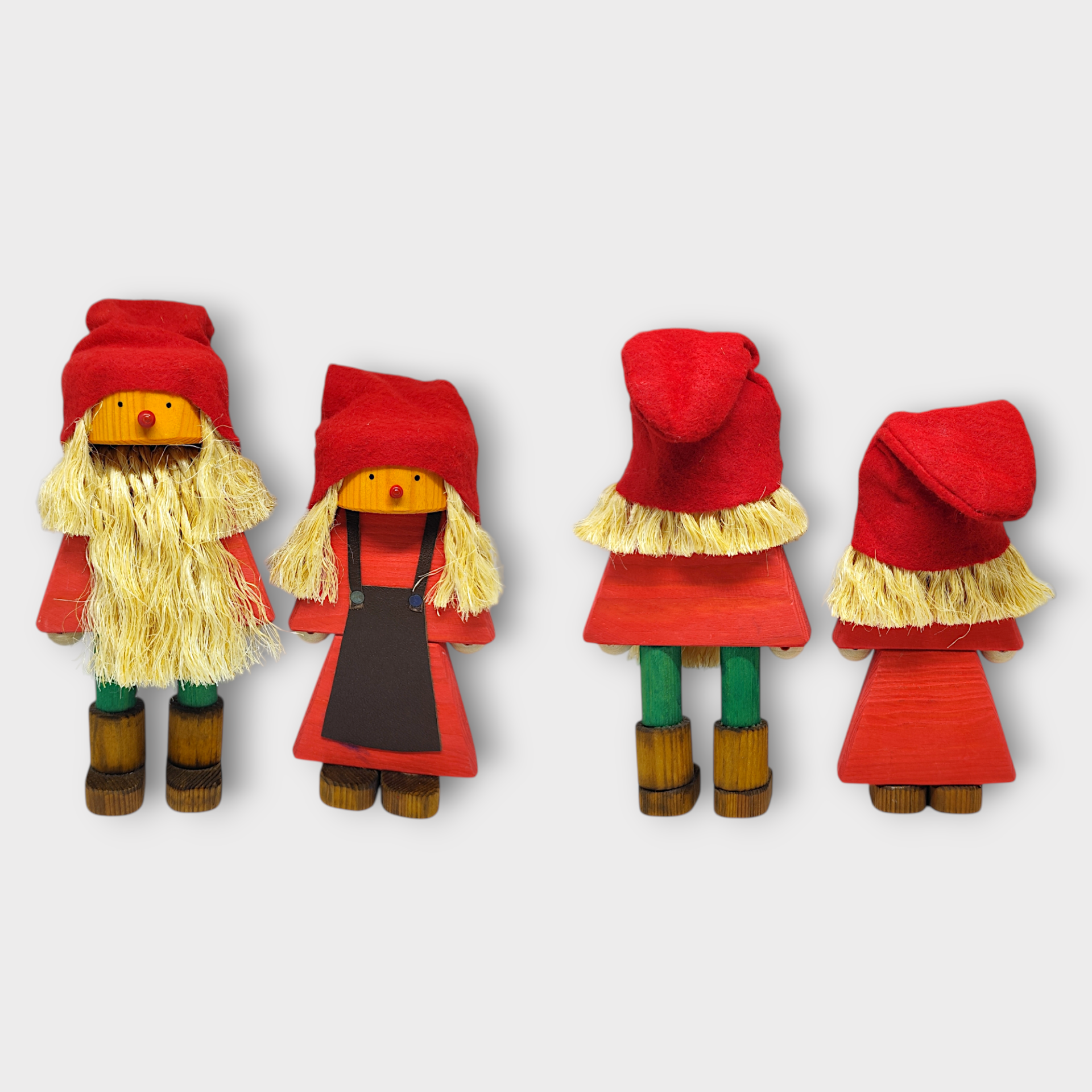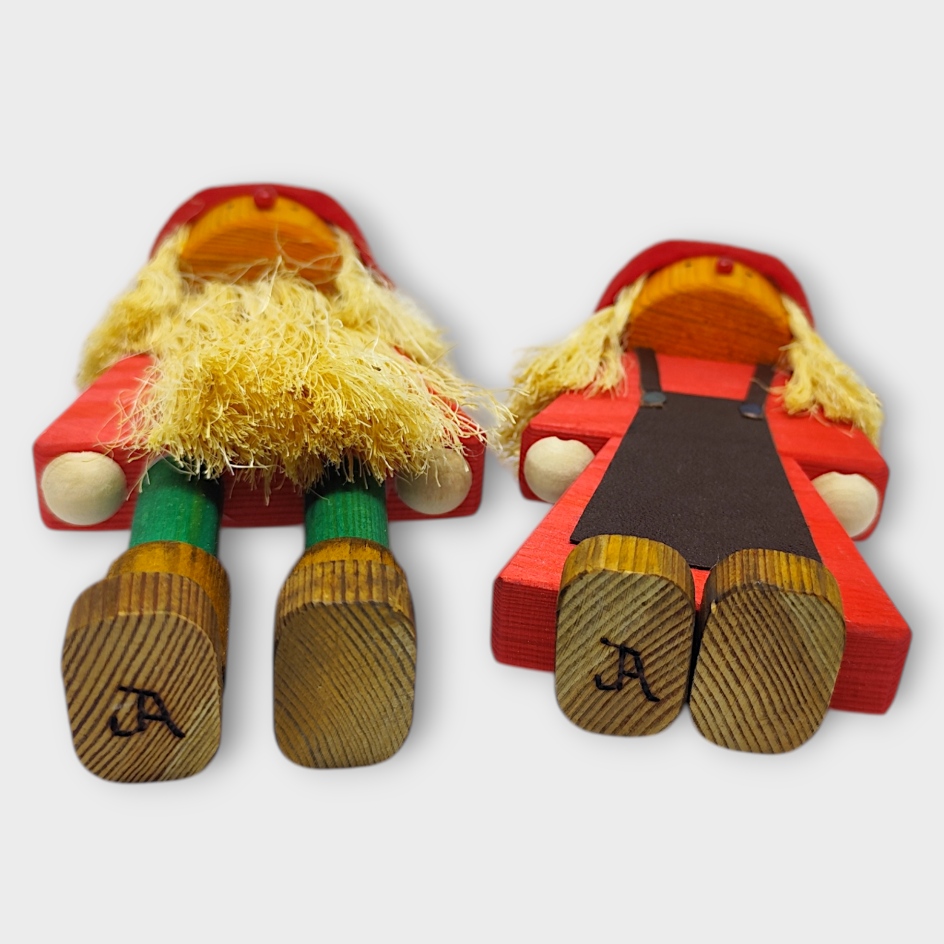 Two vintage handmade wooden gnomes. Signed JA at the bottom. Perfect for Christmas decoration or as a unique gift.