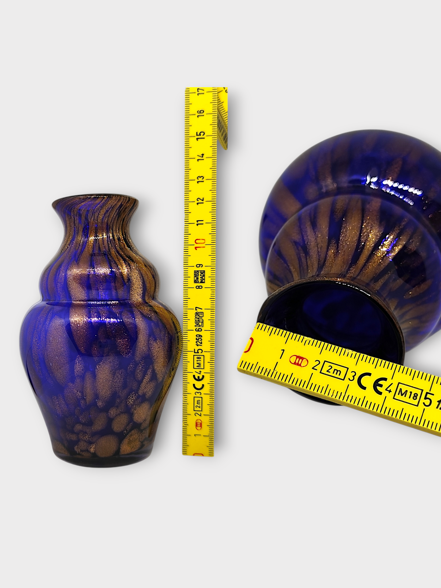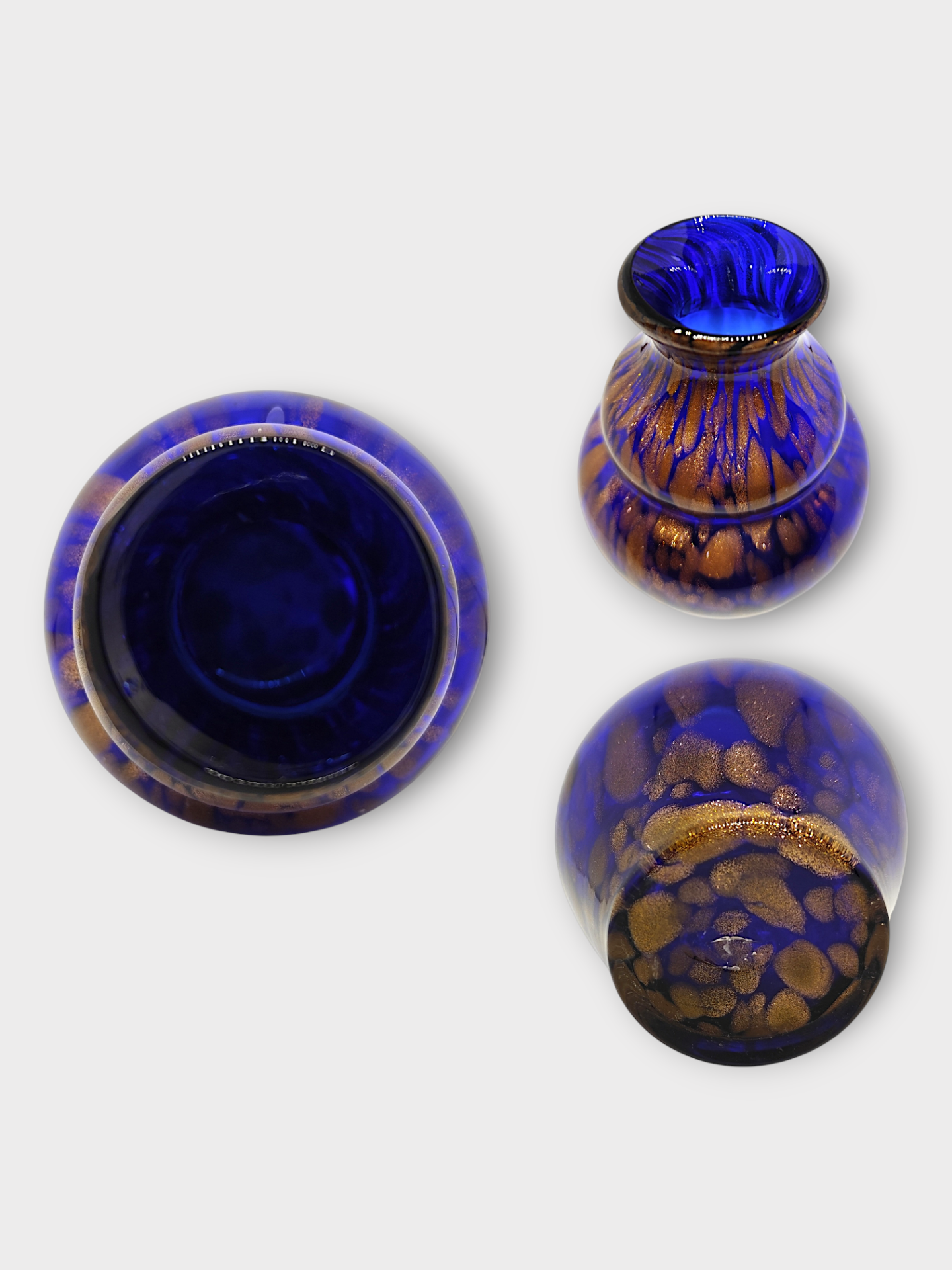 A small vintage 60s cobalt blue glass vase with rose gold copper Adventurine flecks.