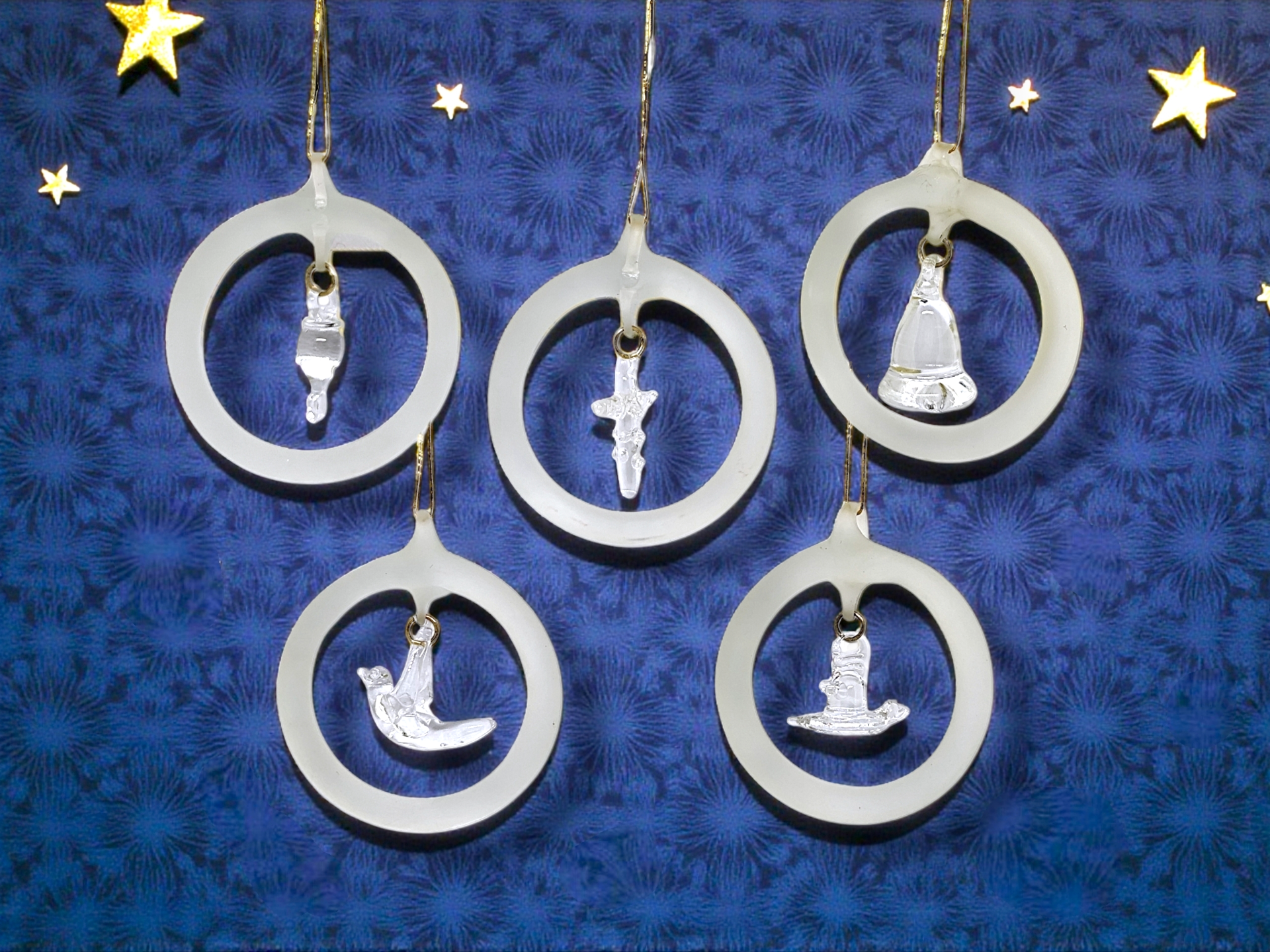 Vintage handmade Christmas ornaments for the window or Christmas tree. The style is reminiscent of Bertil Vallien's Christmas ornaments. Made of clear glass in combination with frosted glass. Perfect for Christmas decoration or as a unique gift.