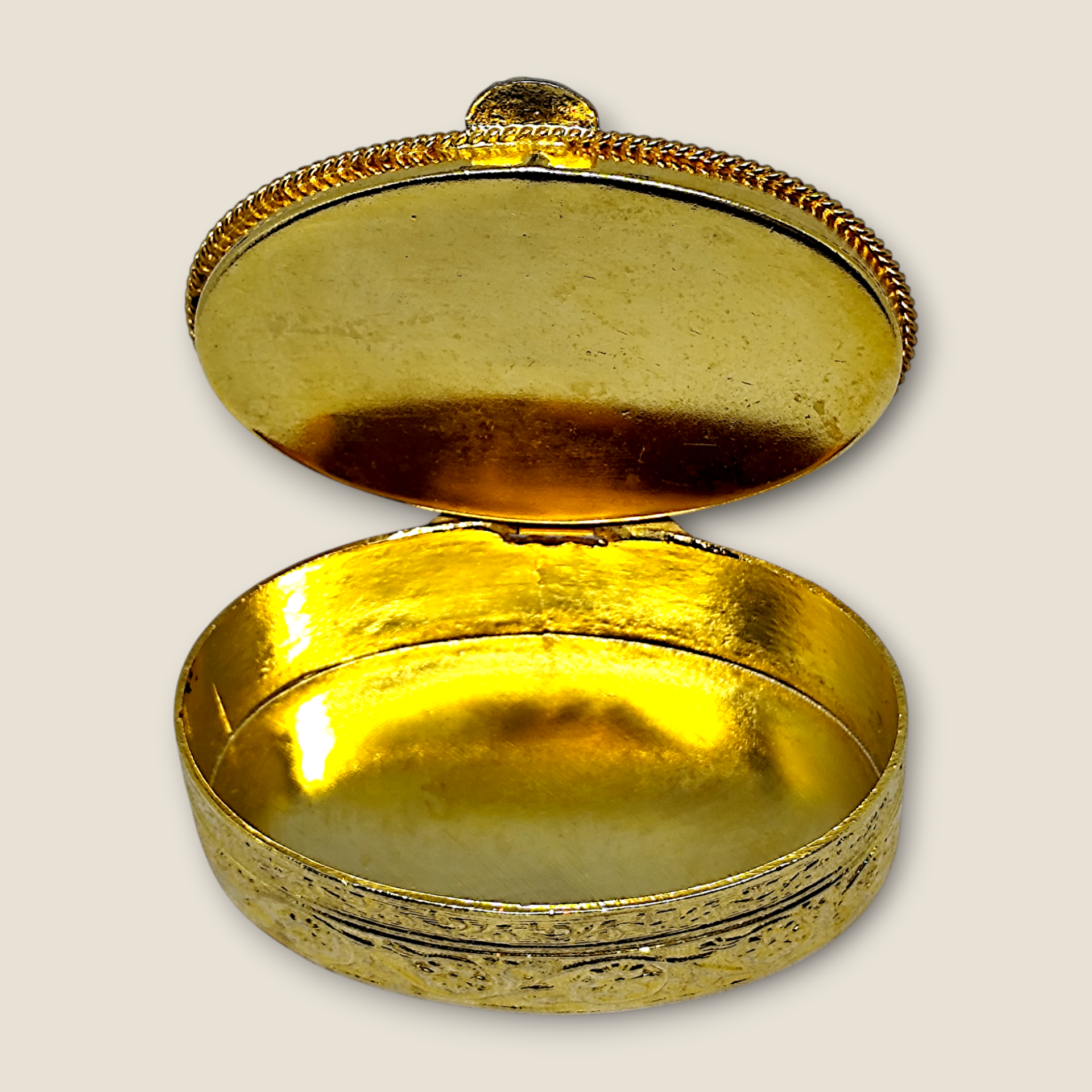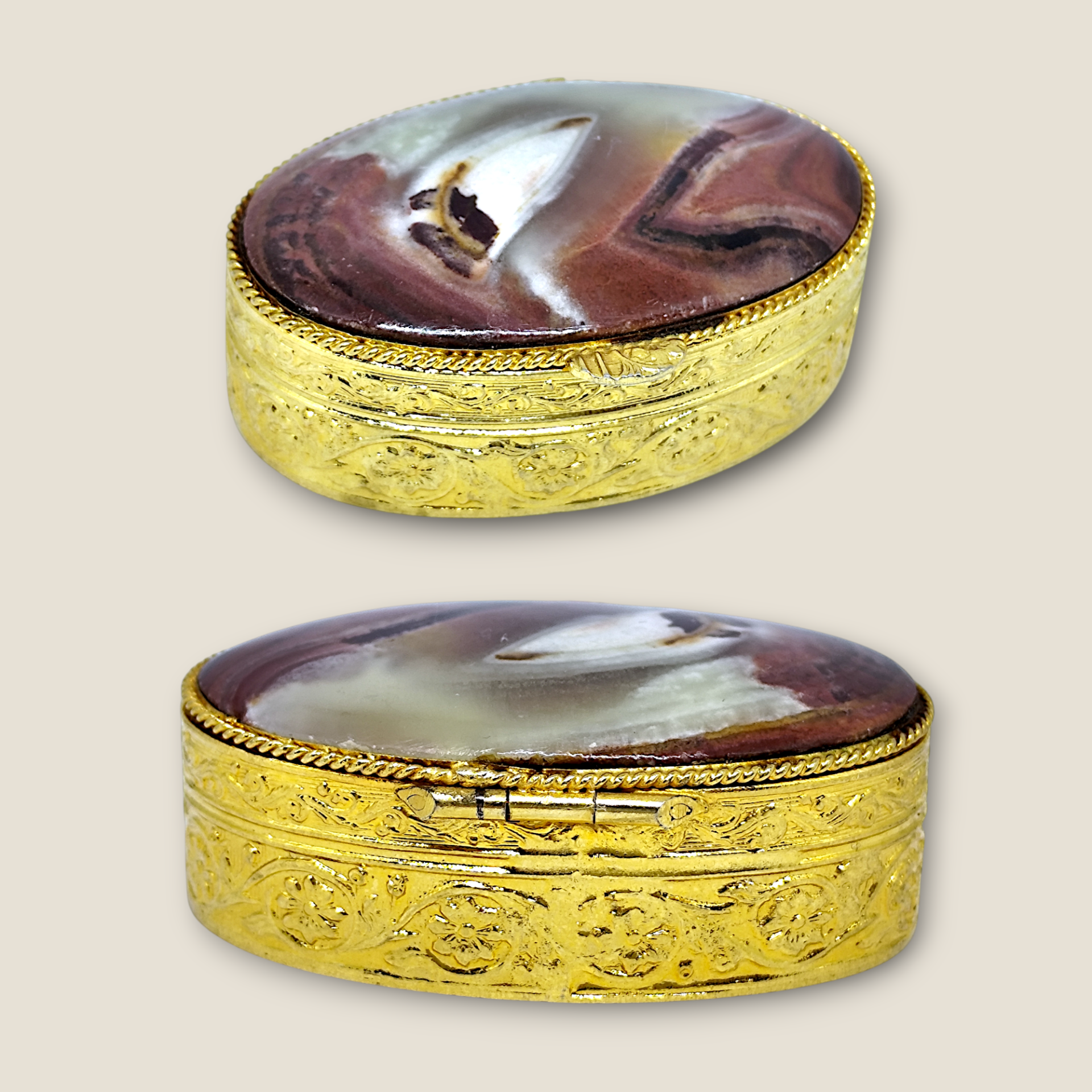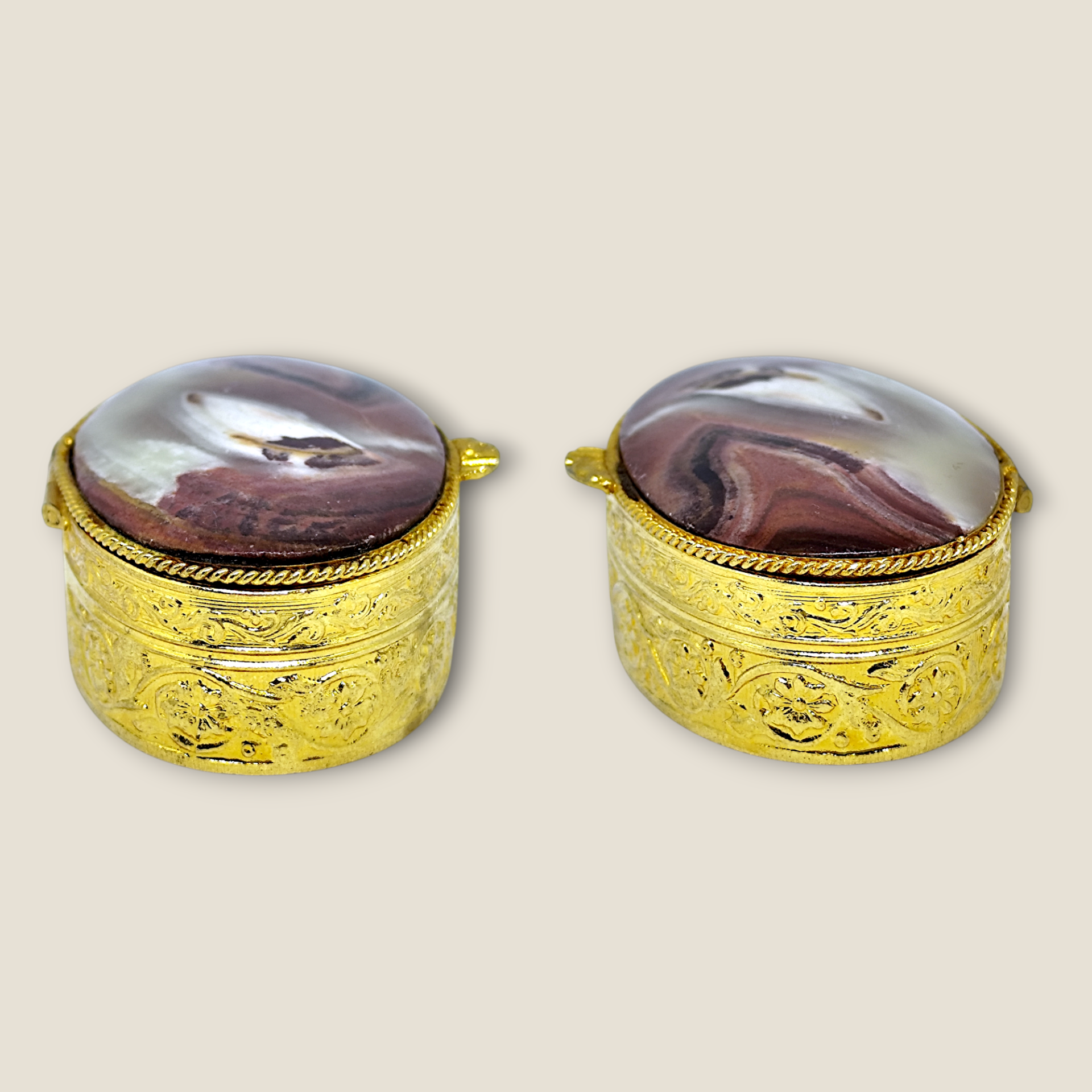 A small older box made of Agate and yellow metal. Elegant and decorative. Perfect for small items or to keep medicine in.