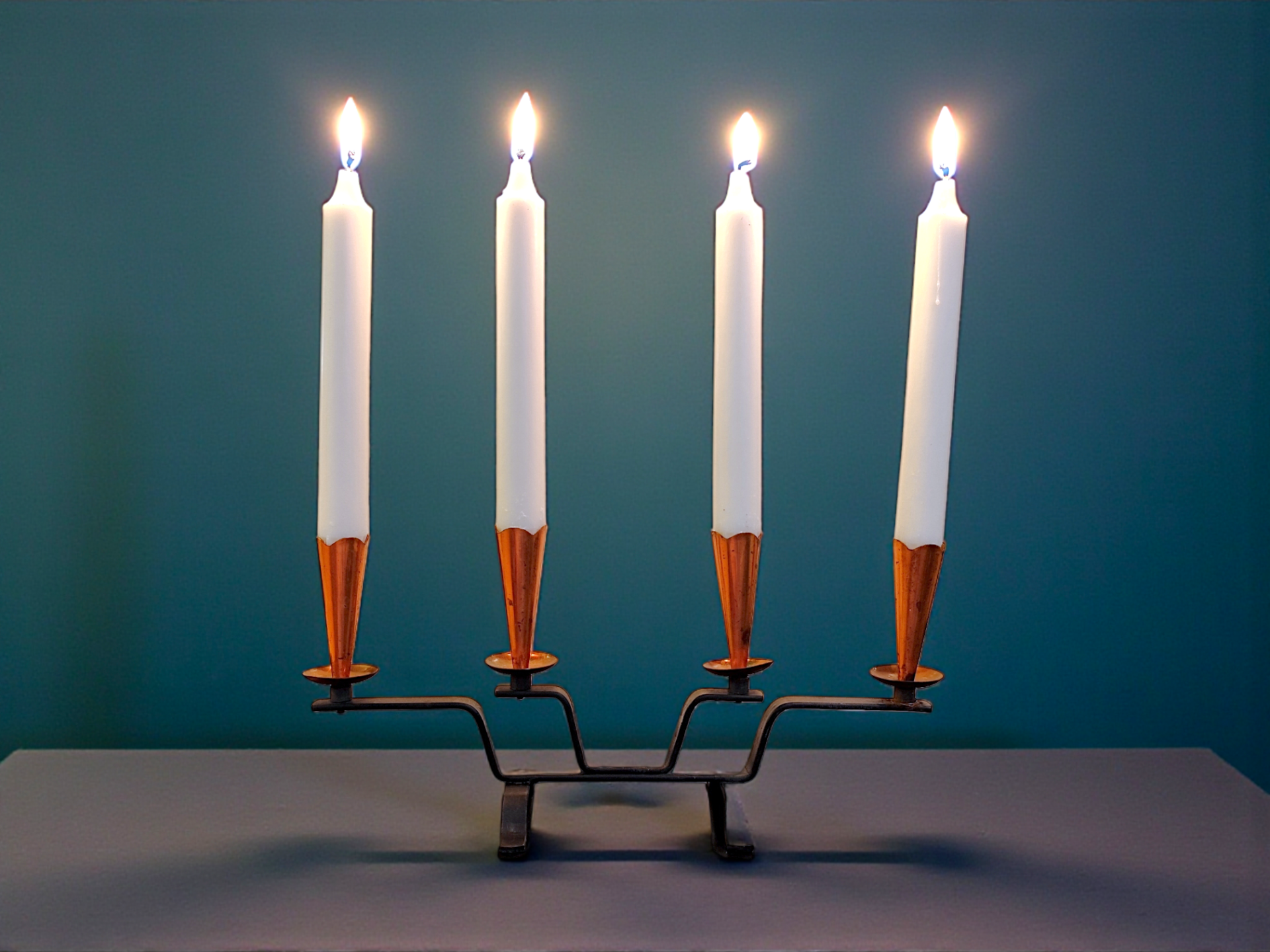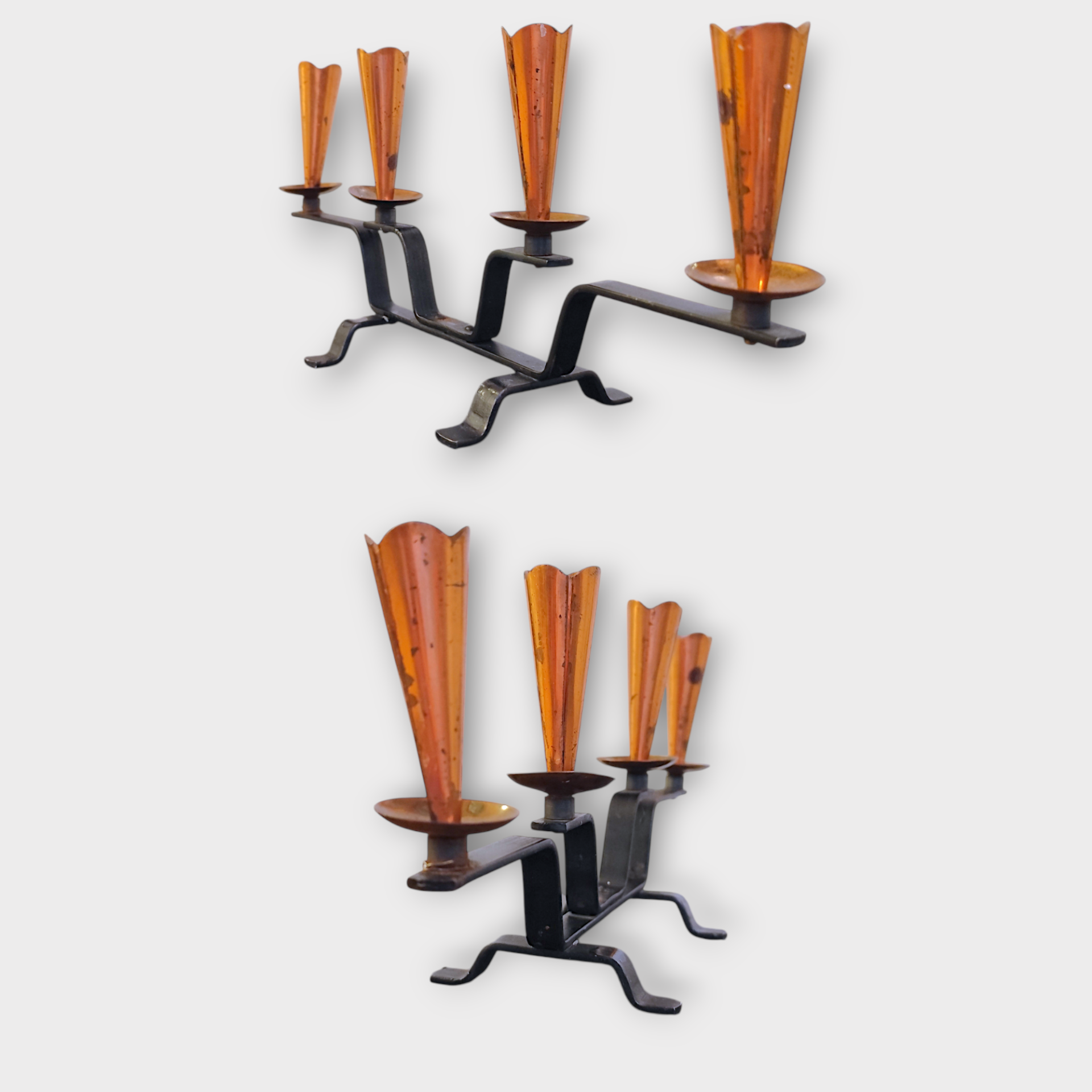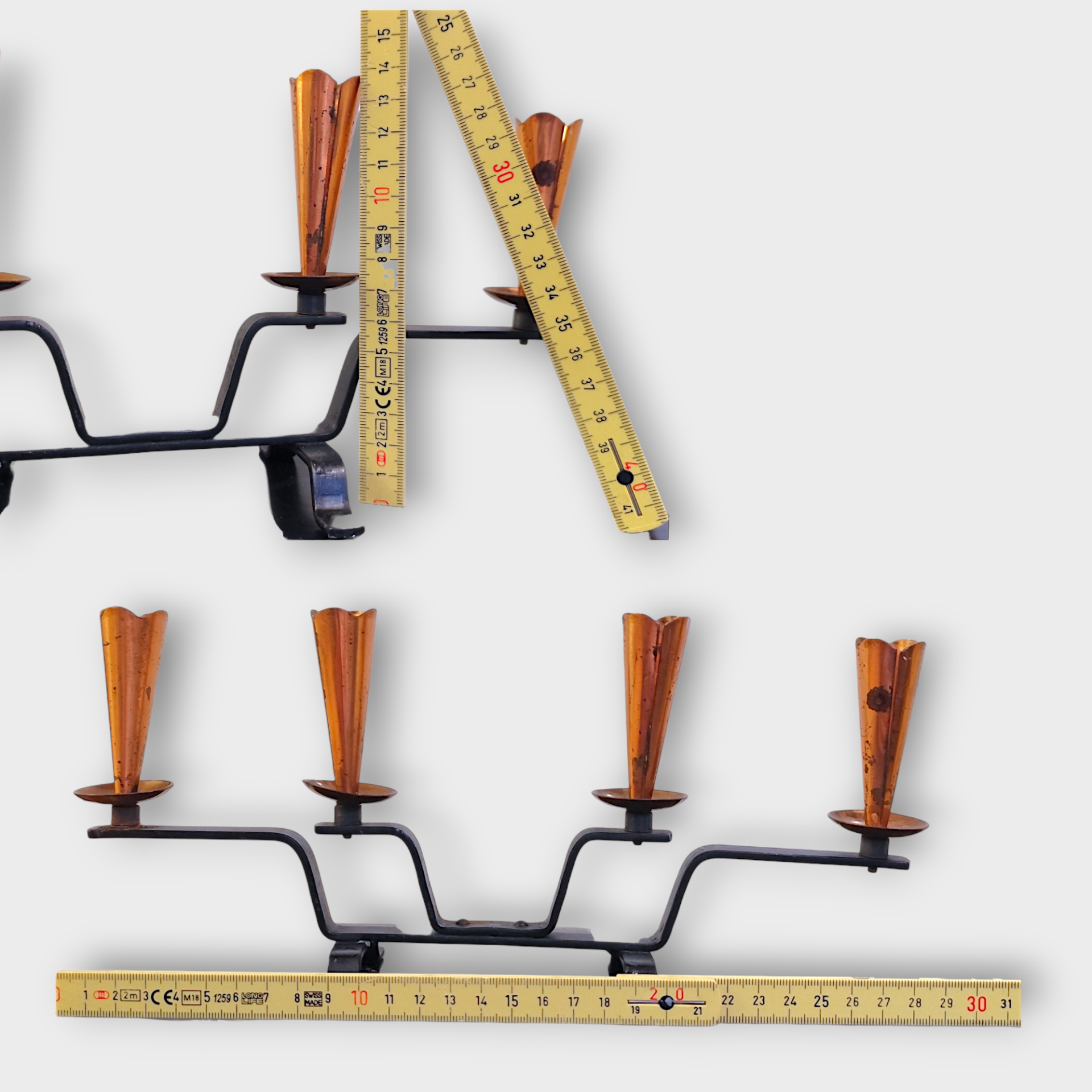 An Advent candlestick in wrought iron with copper parts. Designed by Gunnar Ander for Ystad Metall in the 1960s. Made in Sweden.