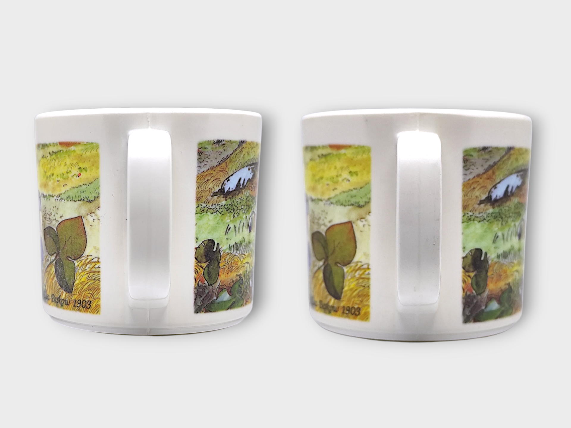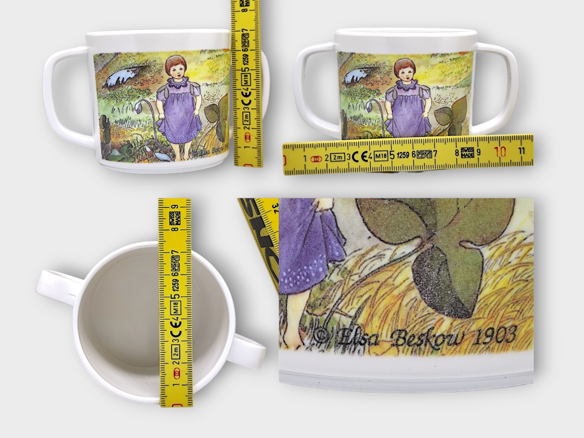 A children's mug from Rätt Start with an Elsa Beskow motif. The mug has two handles and a silicone ring underneath that makes it stand steady on the table. Made of RPET, which is an environmentally friendly and durable material. Rätt Start's products in RPET contribute to reduced waste and a lower carbon footprint. RPET is not microwaveable but can be washed in the dishwasher.
