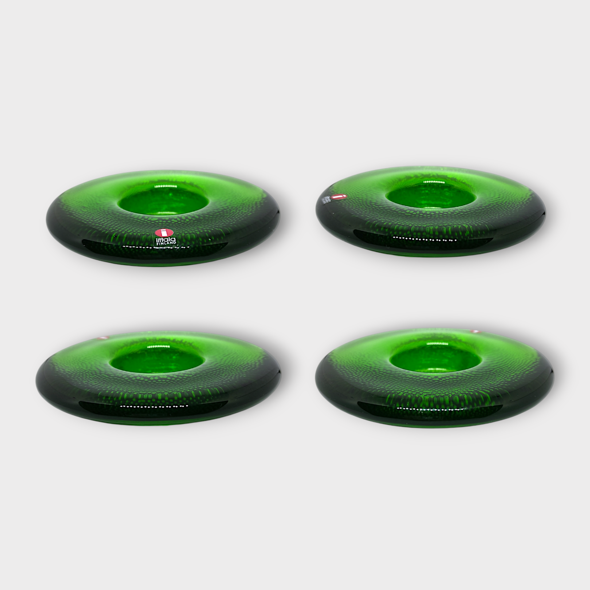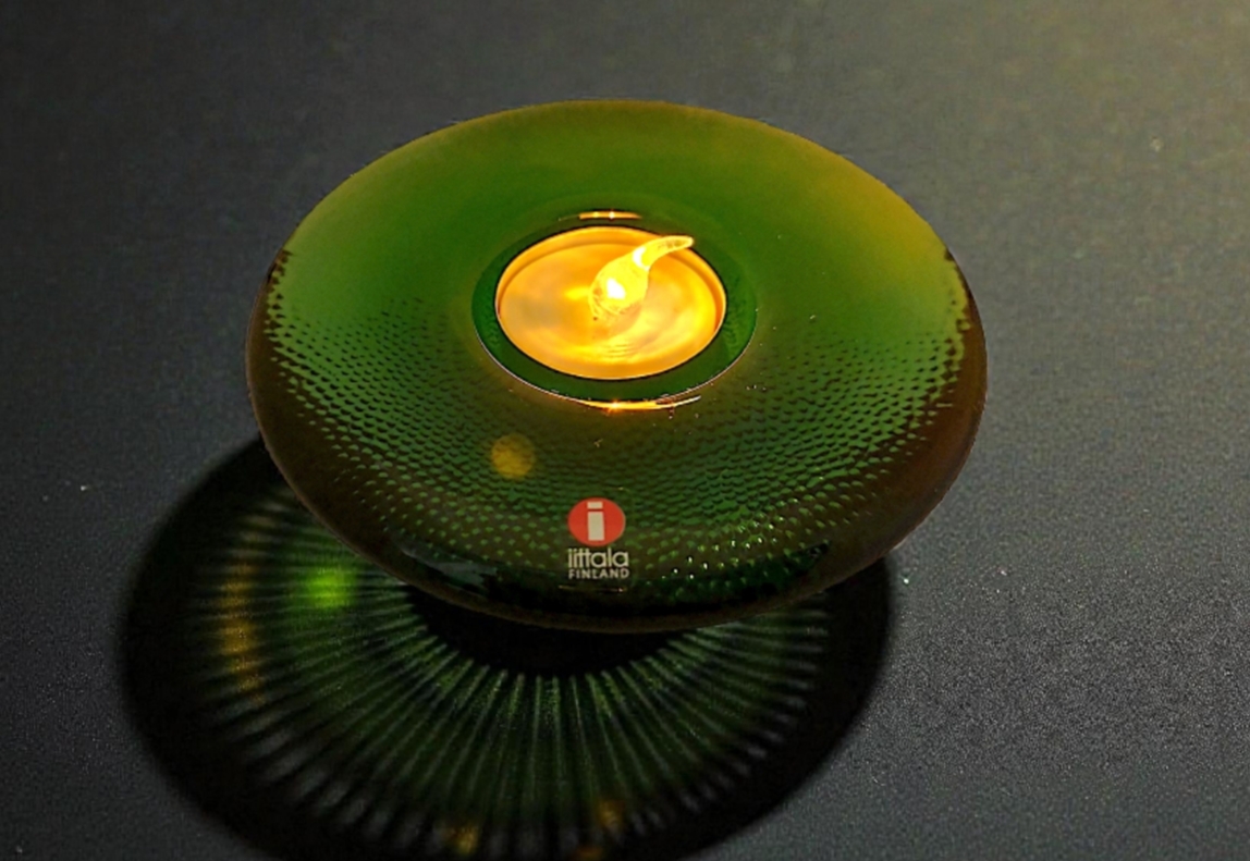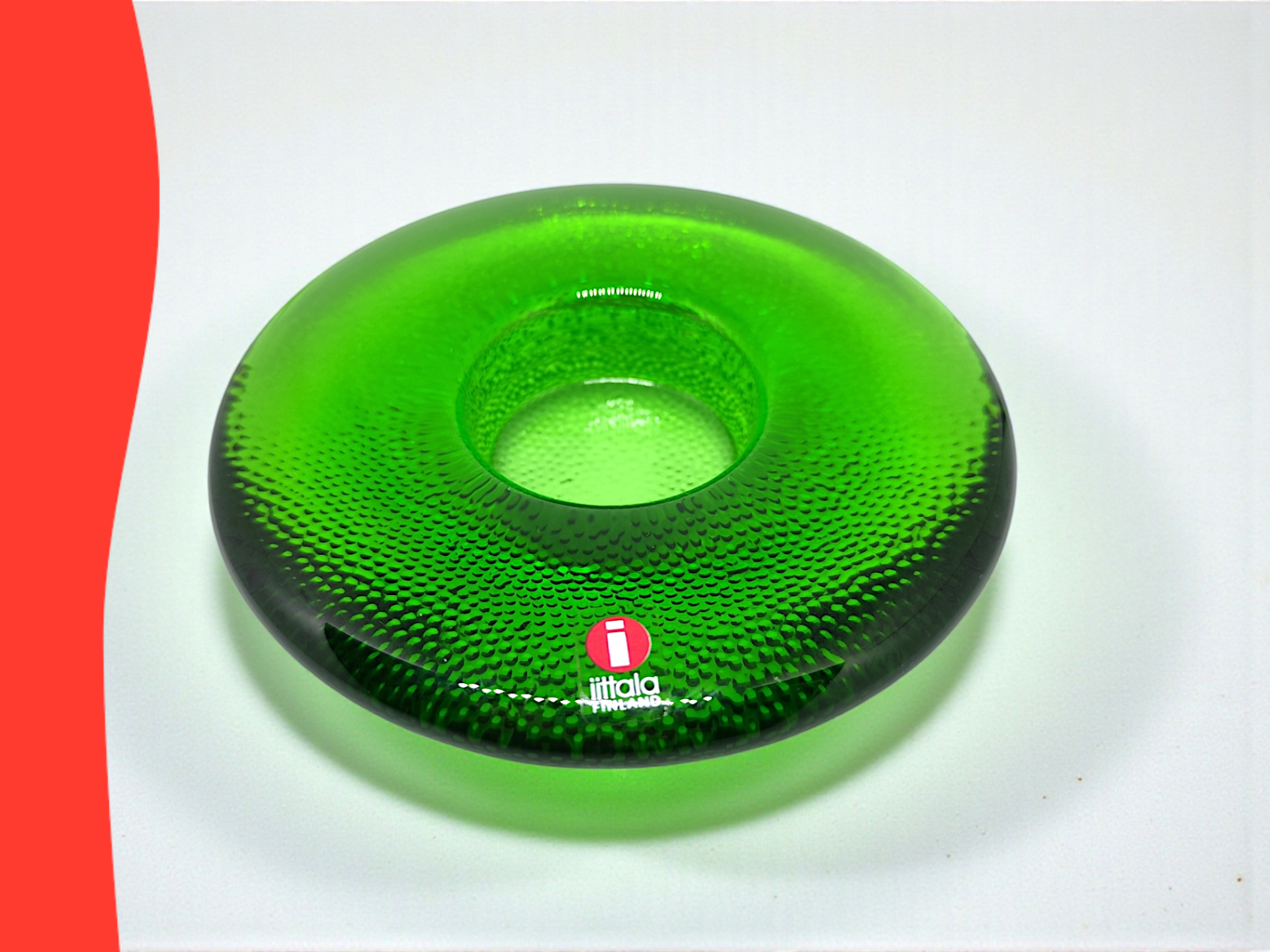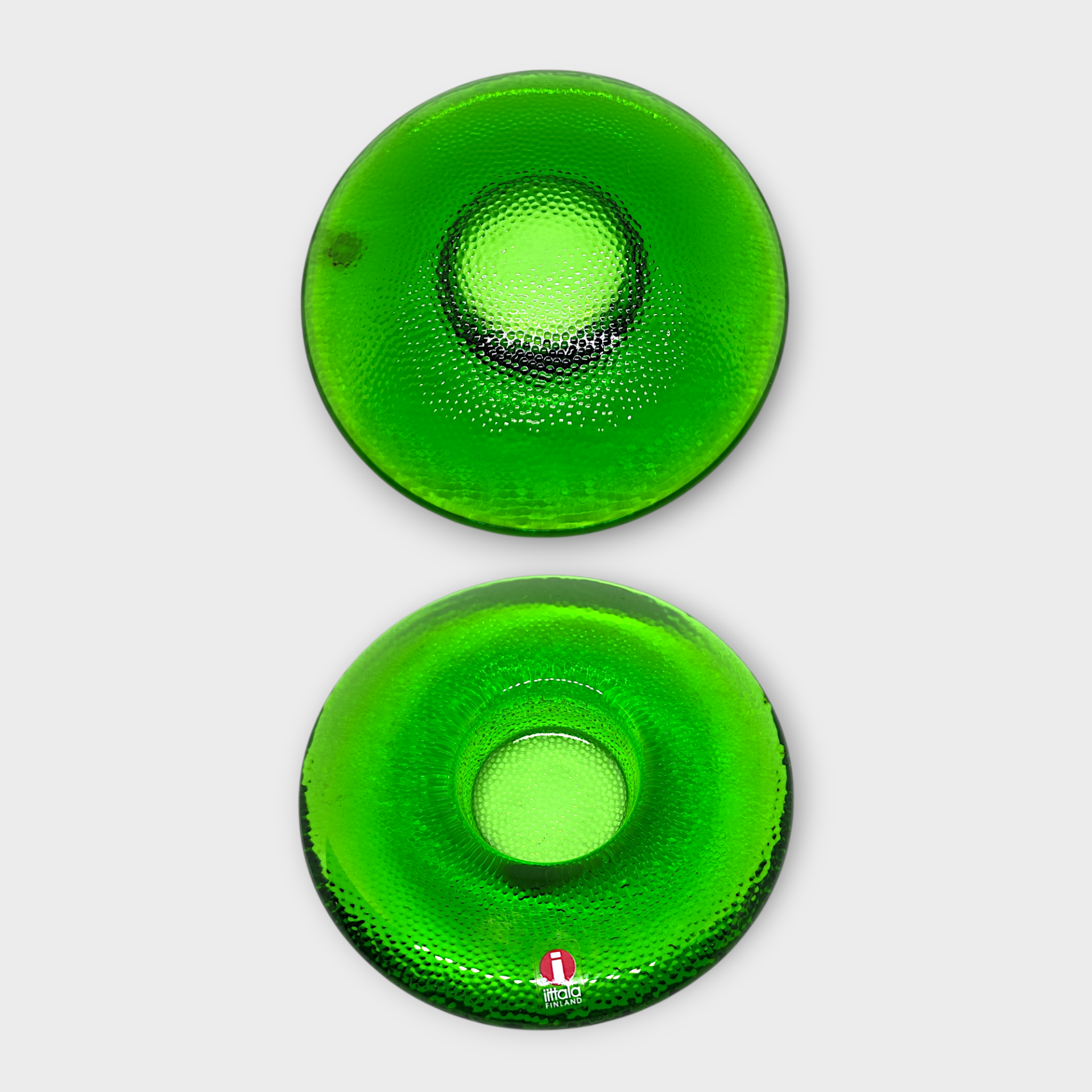 A beautiful Nappi candle holder in green glass. Made by littala and designed by Markku Salo.