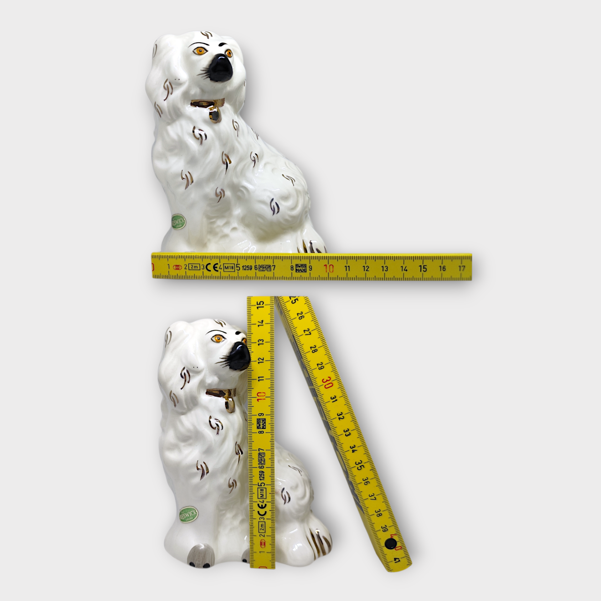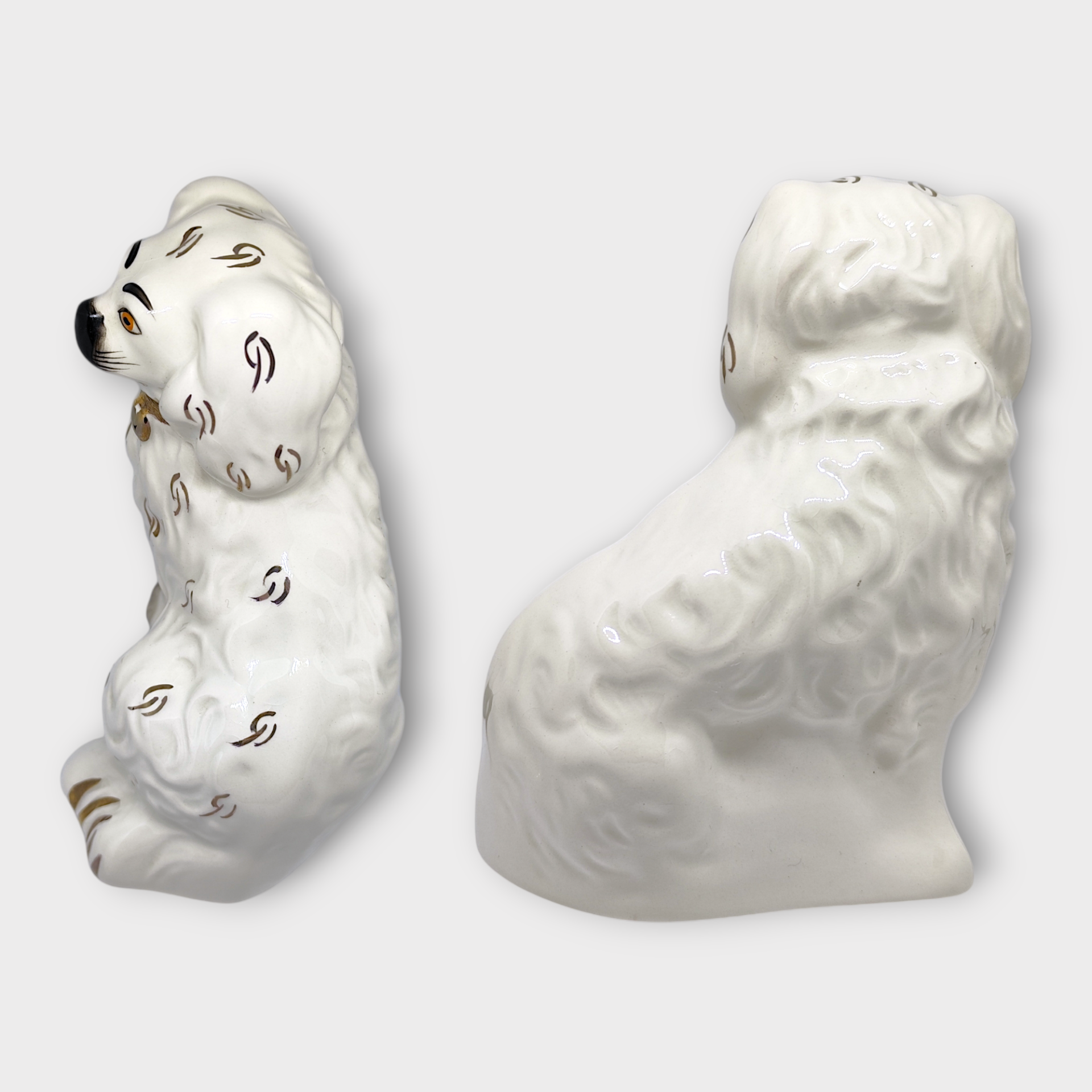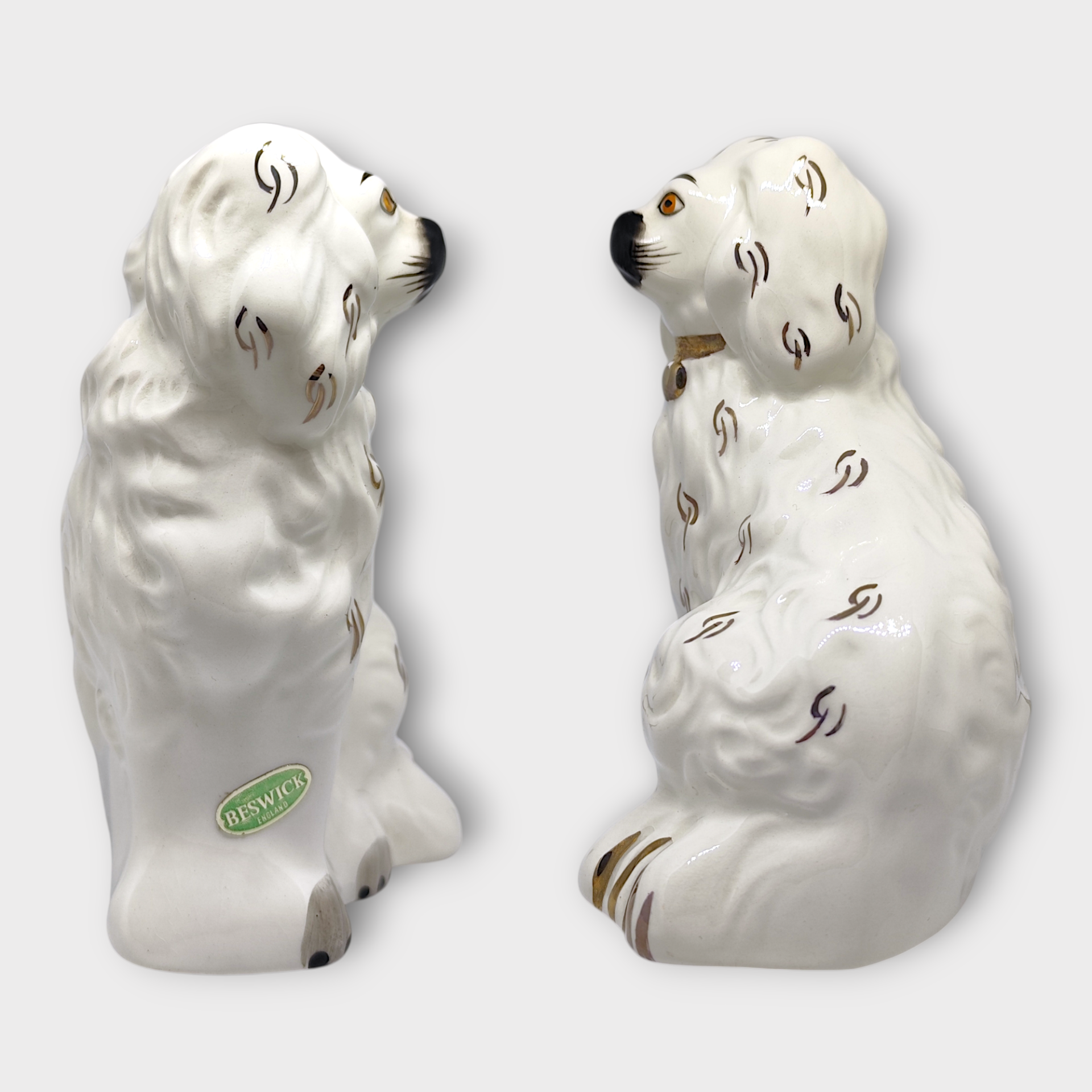 A Spaniel dog in flint, perfect for adding a classic touch to your home. This decorative dog figurine has fine details and a timeless design that fits in many different interior styles. Made by Beswick in England, second half of the 20th century. Labeled and stamped on the bottom.