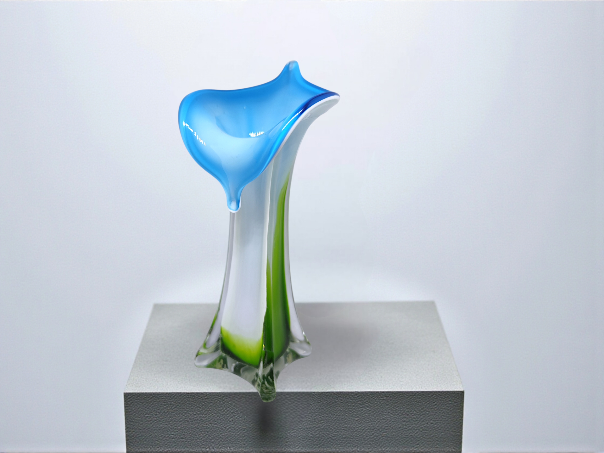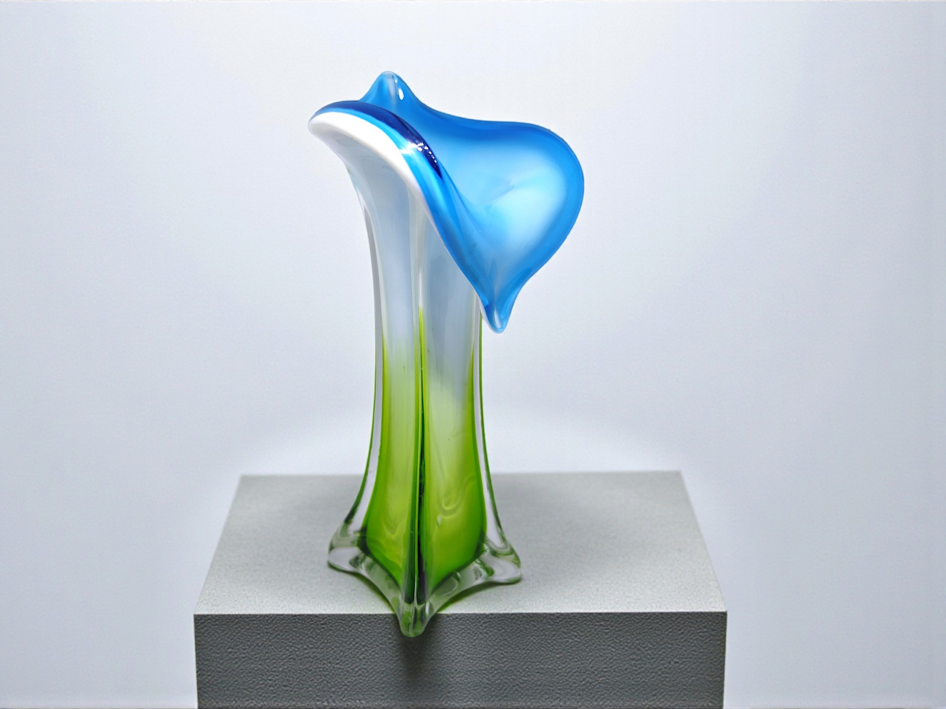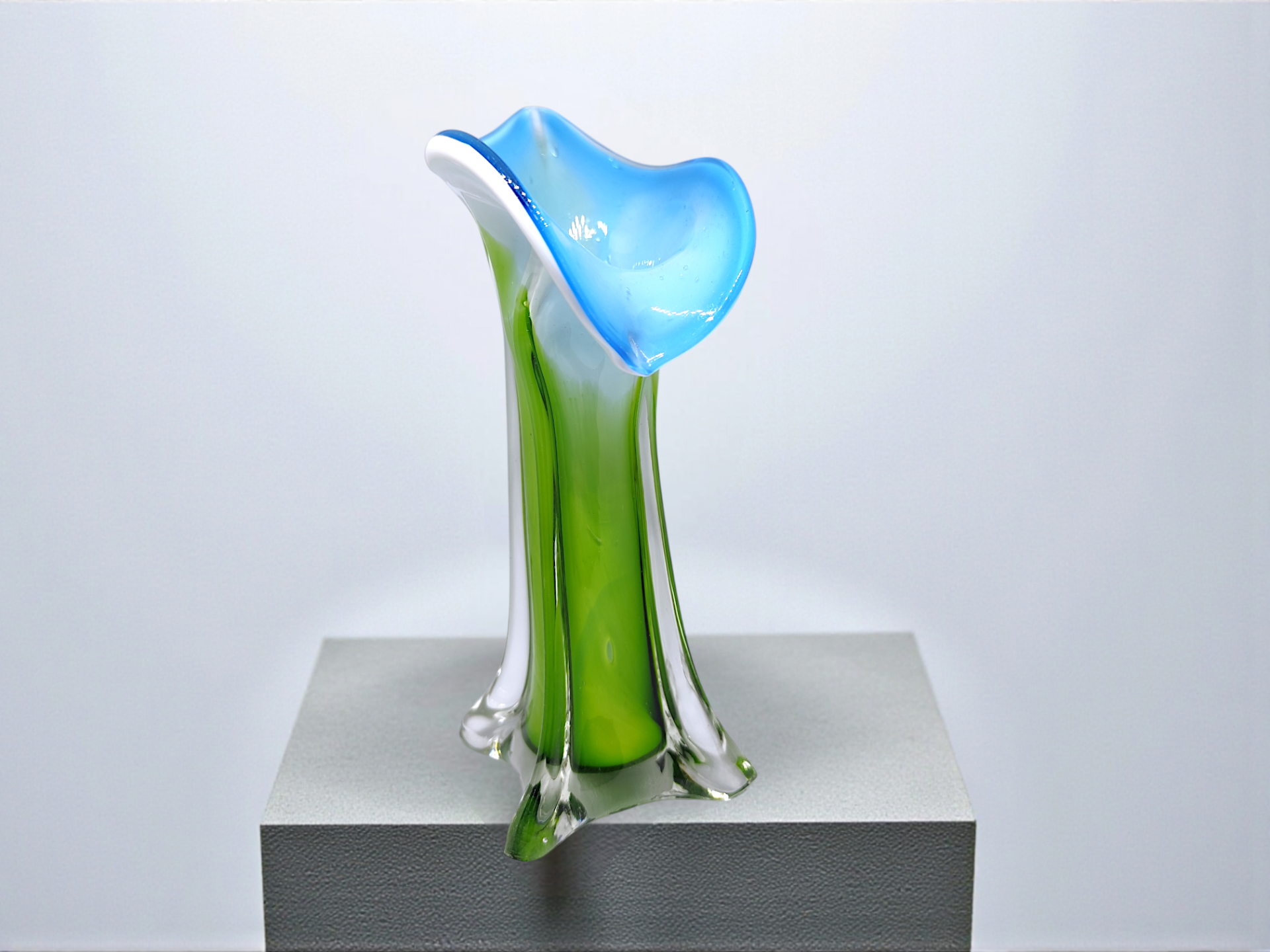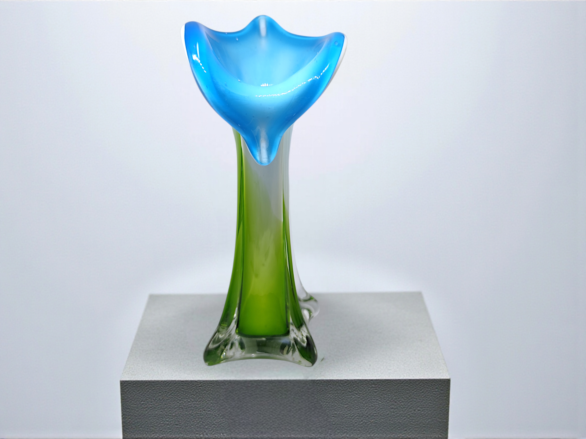 Muranovas from Italy. Mouth-blown glass vase "Jack in the Pulpit" from the 70s.