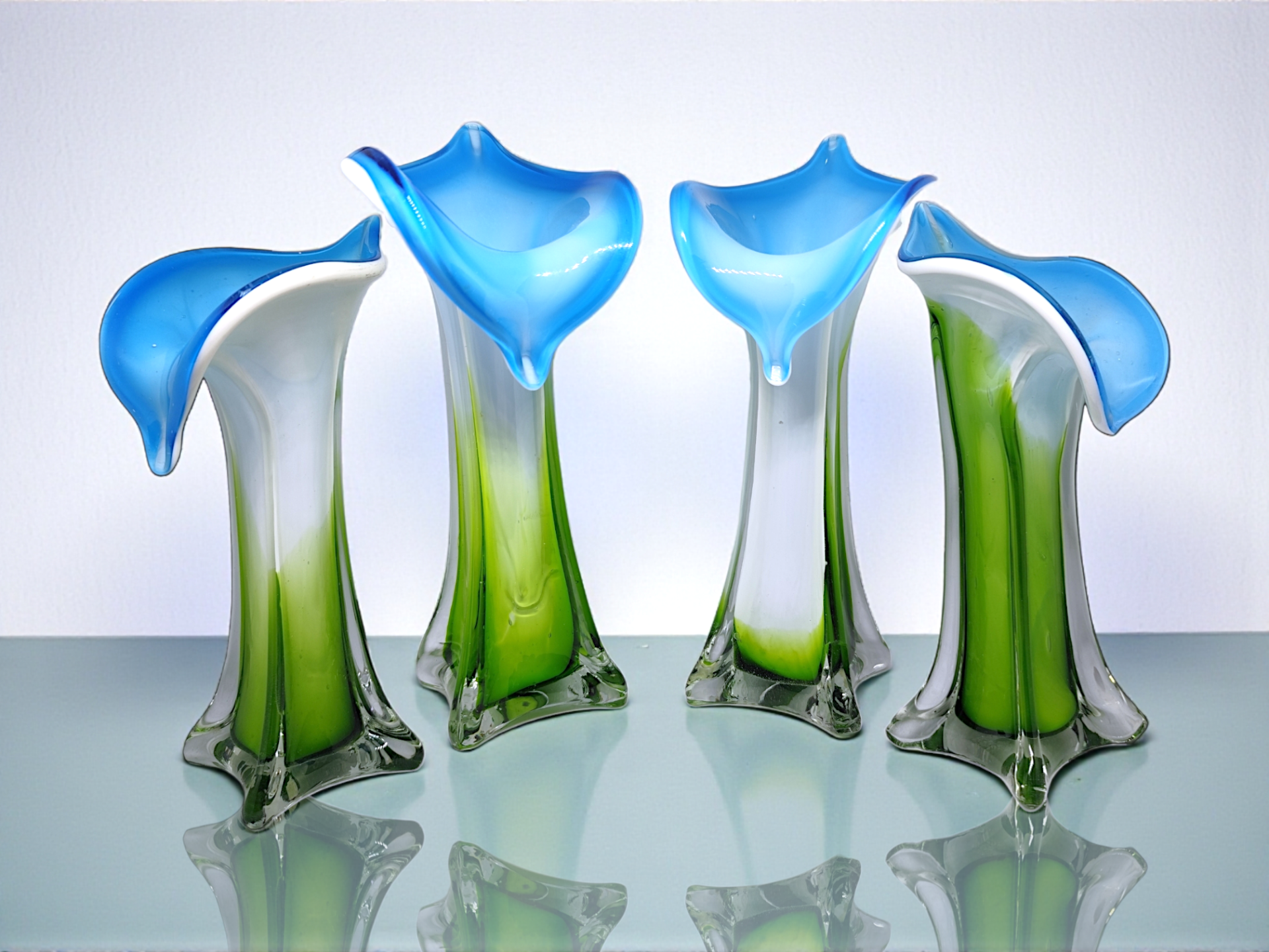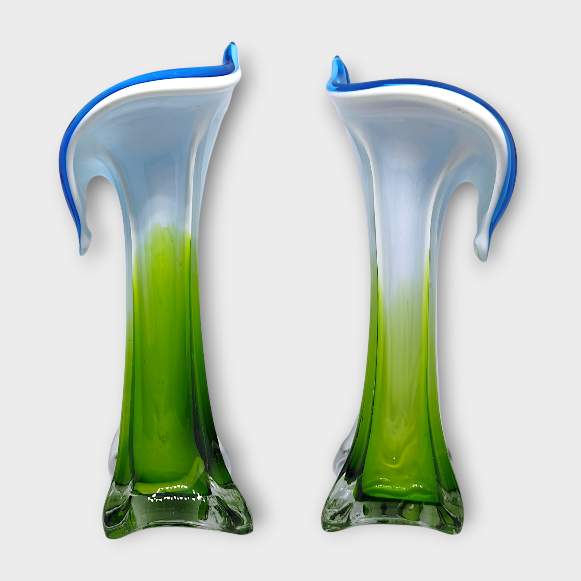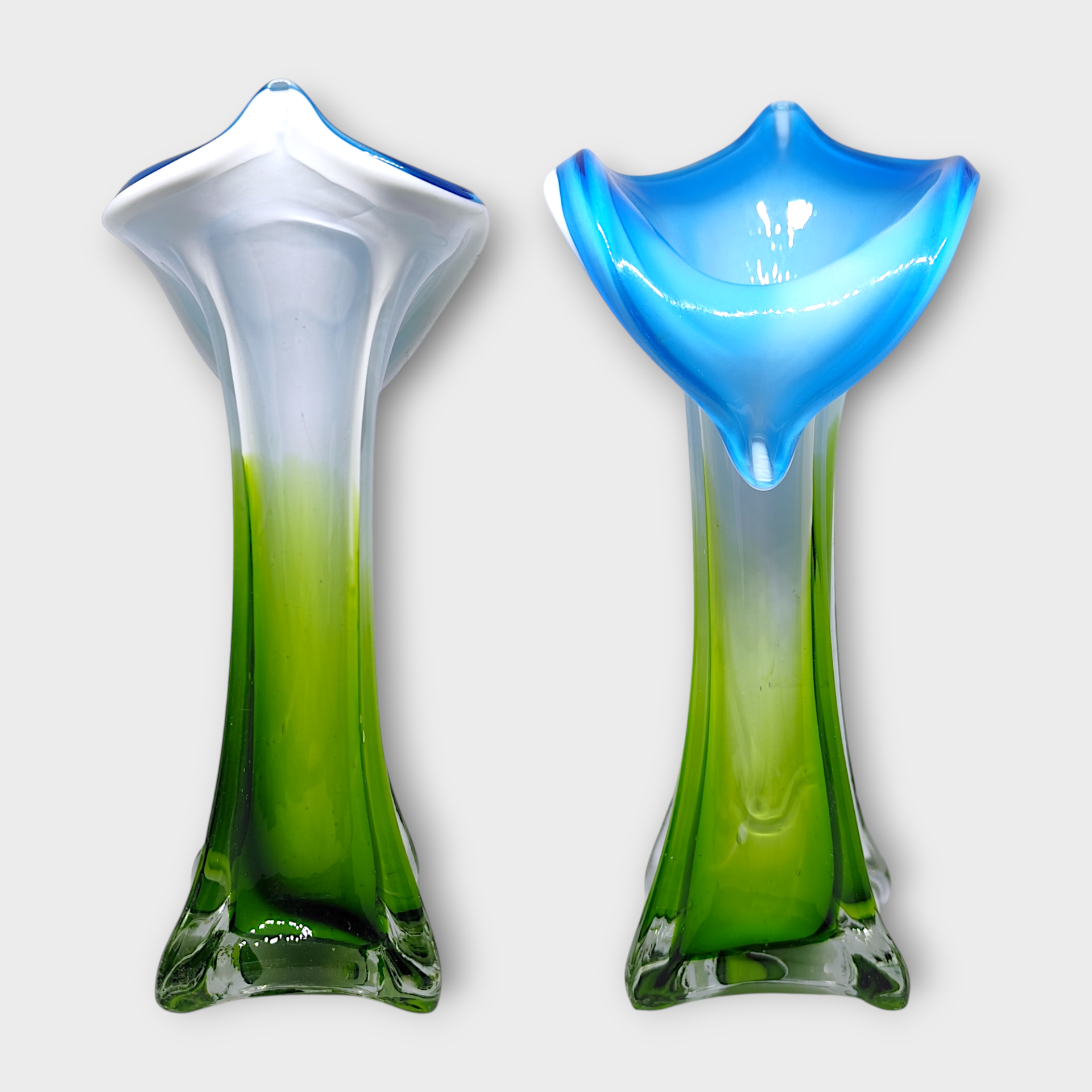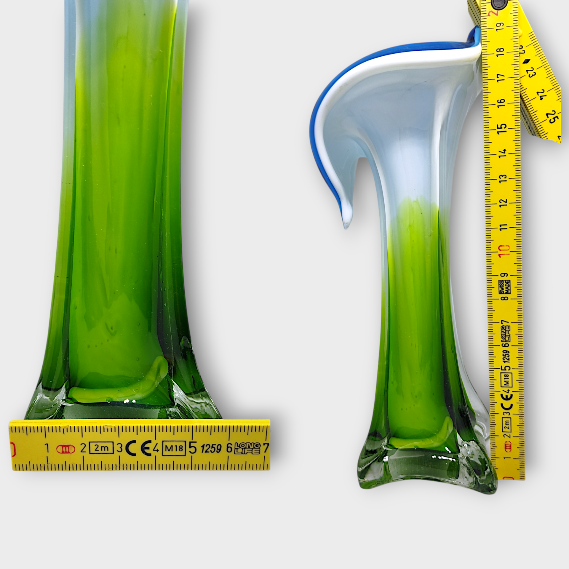 Muranovas from Italy. Mouth-blown glass vase "Jack in the Pulpit" from the 70s.