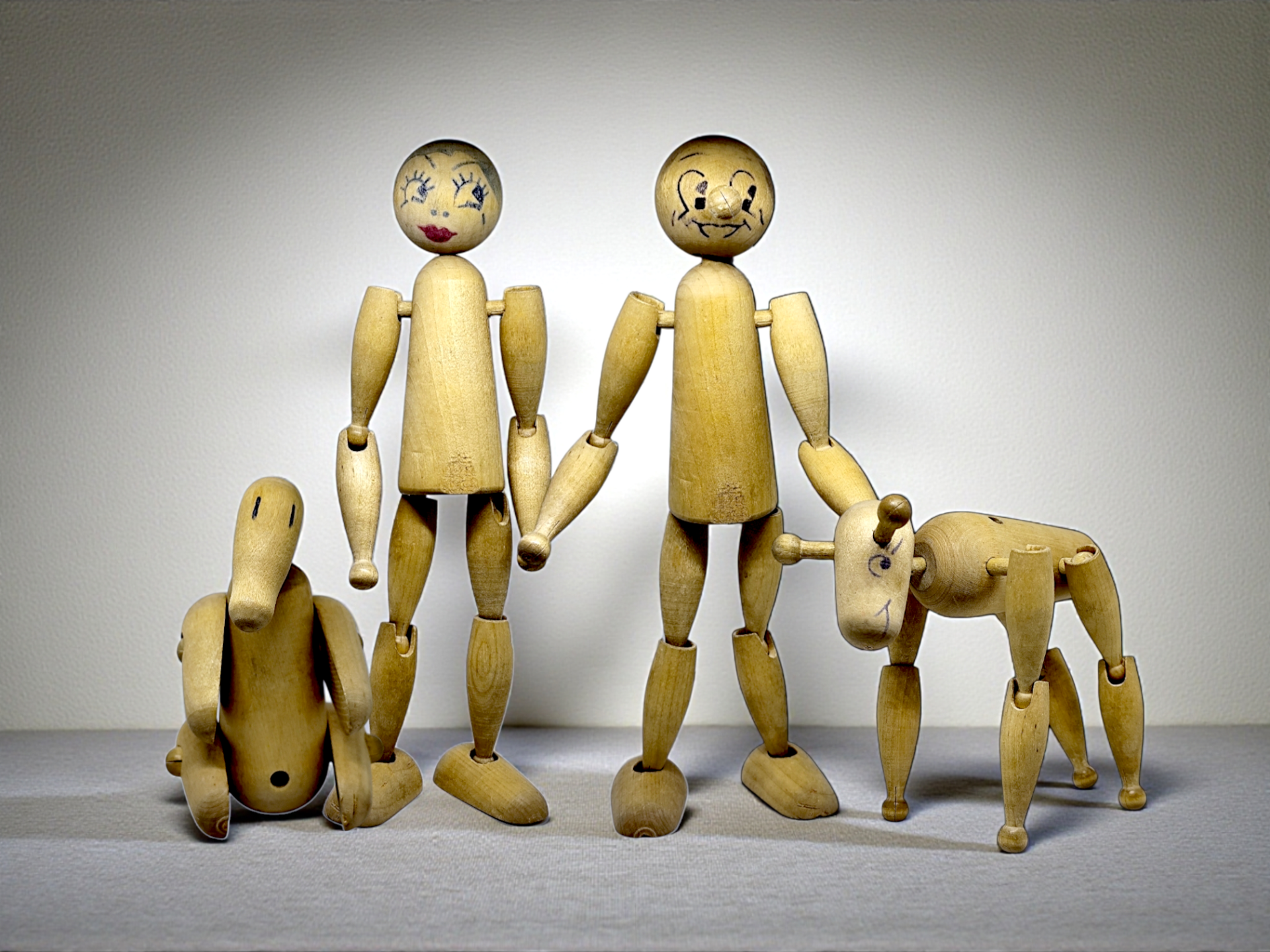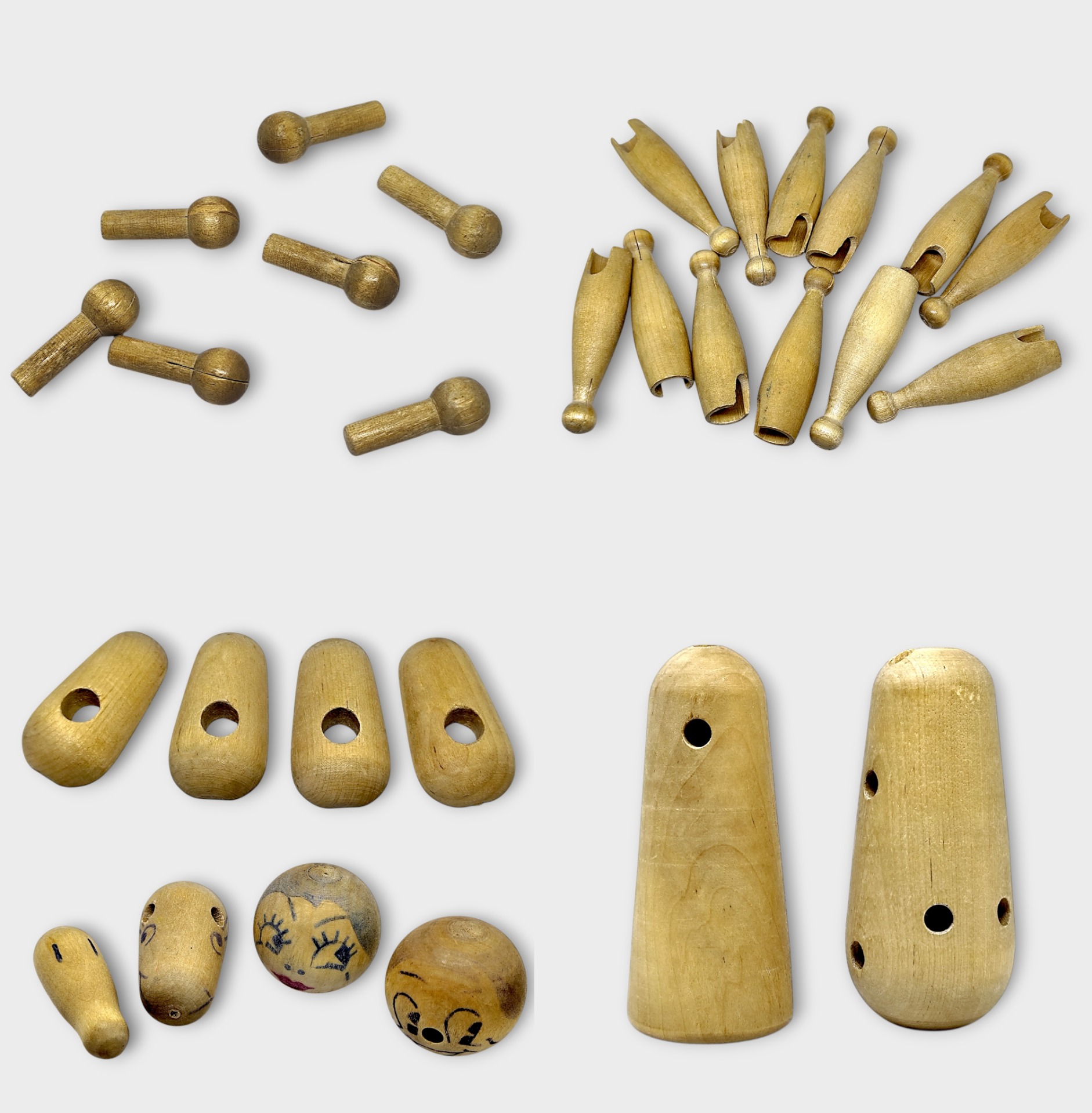 Wooden parts for building figures and animals. The set consists of 12 pieces. Made in the early 20th century.