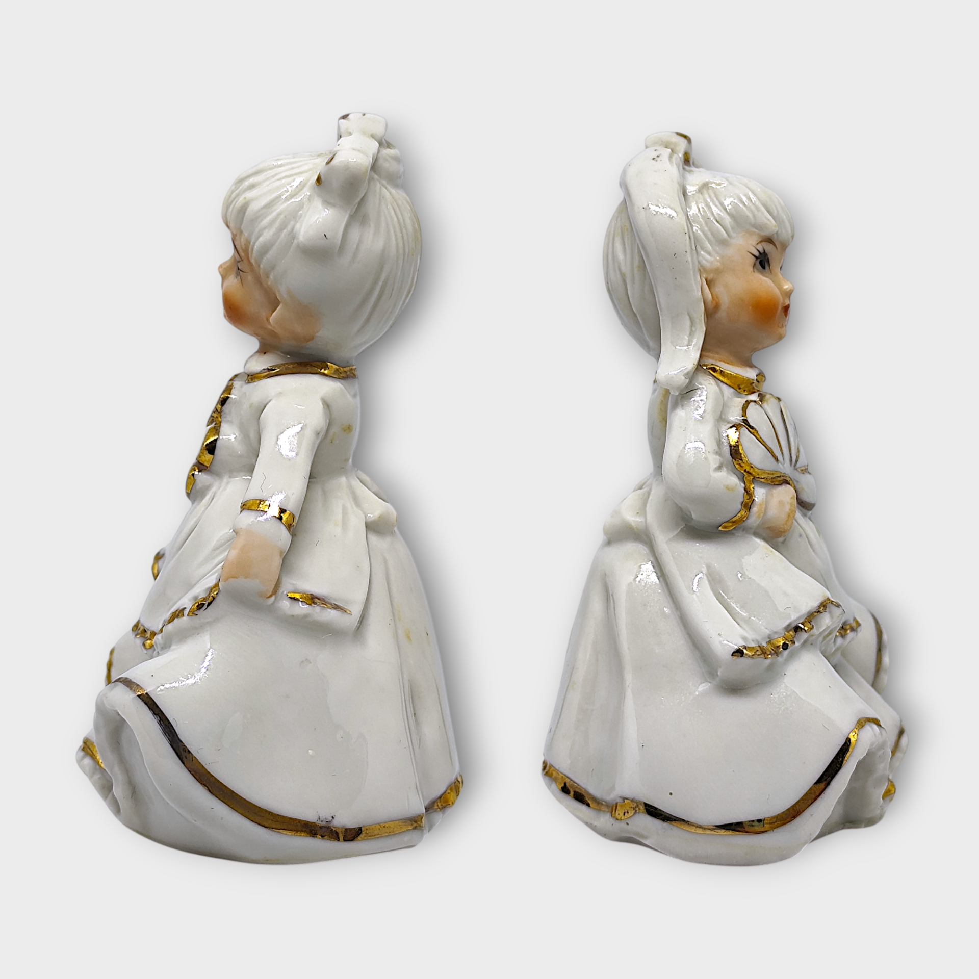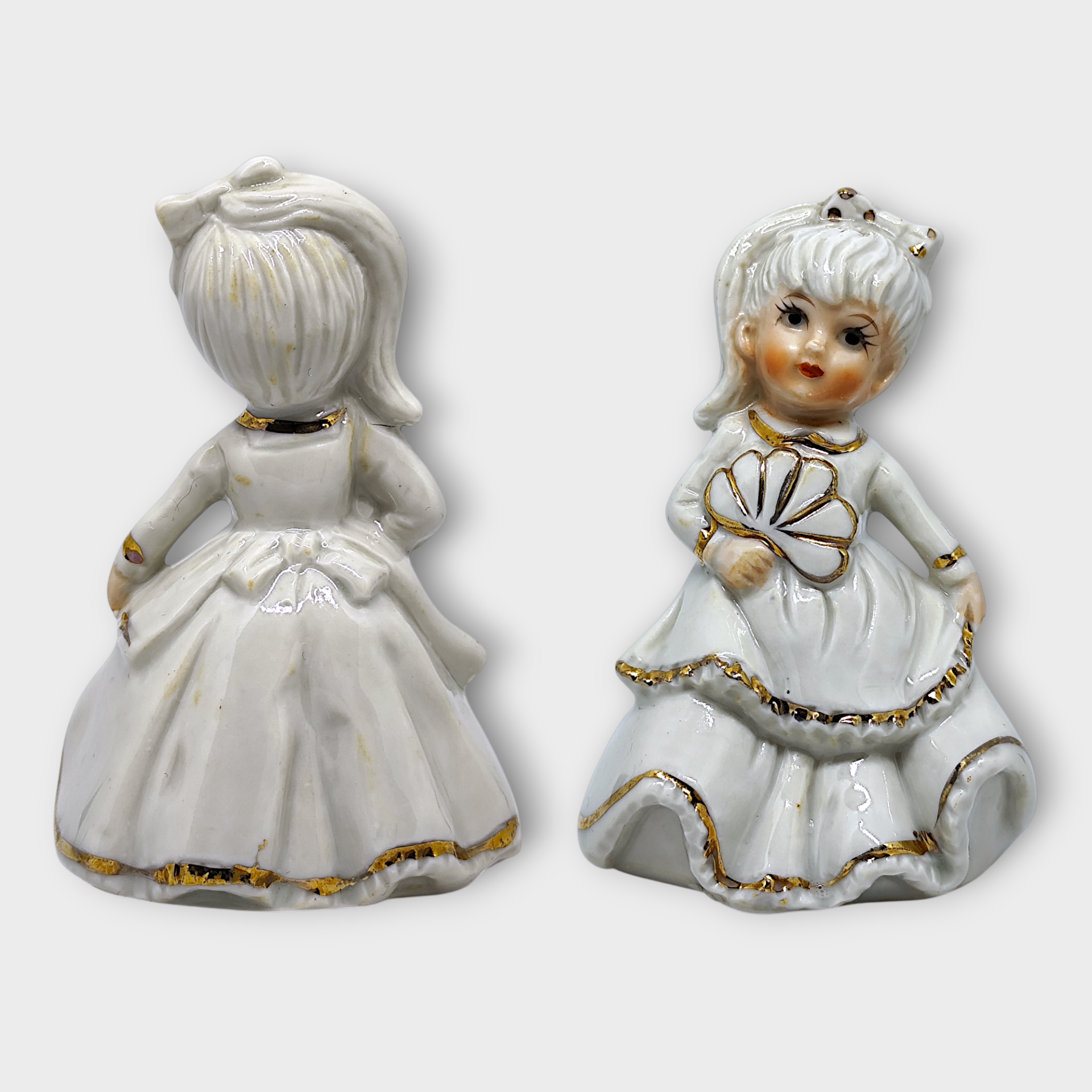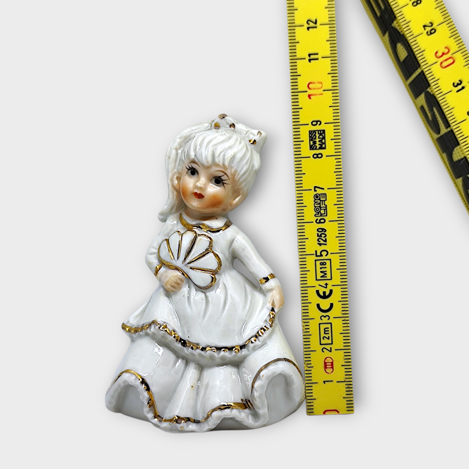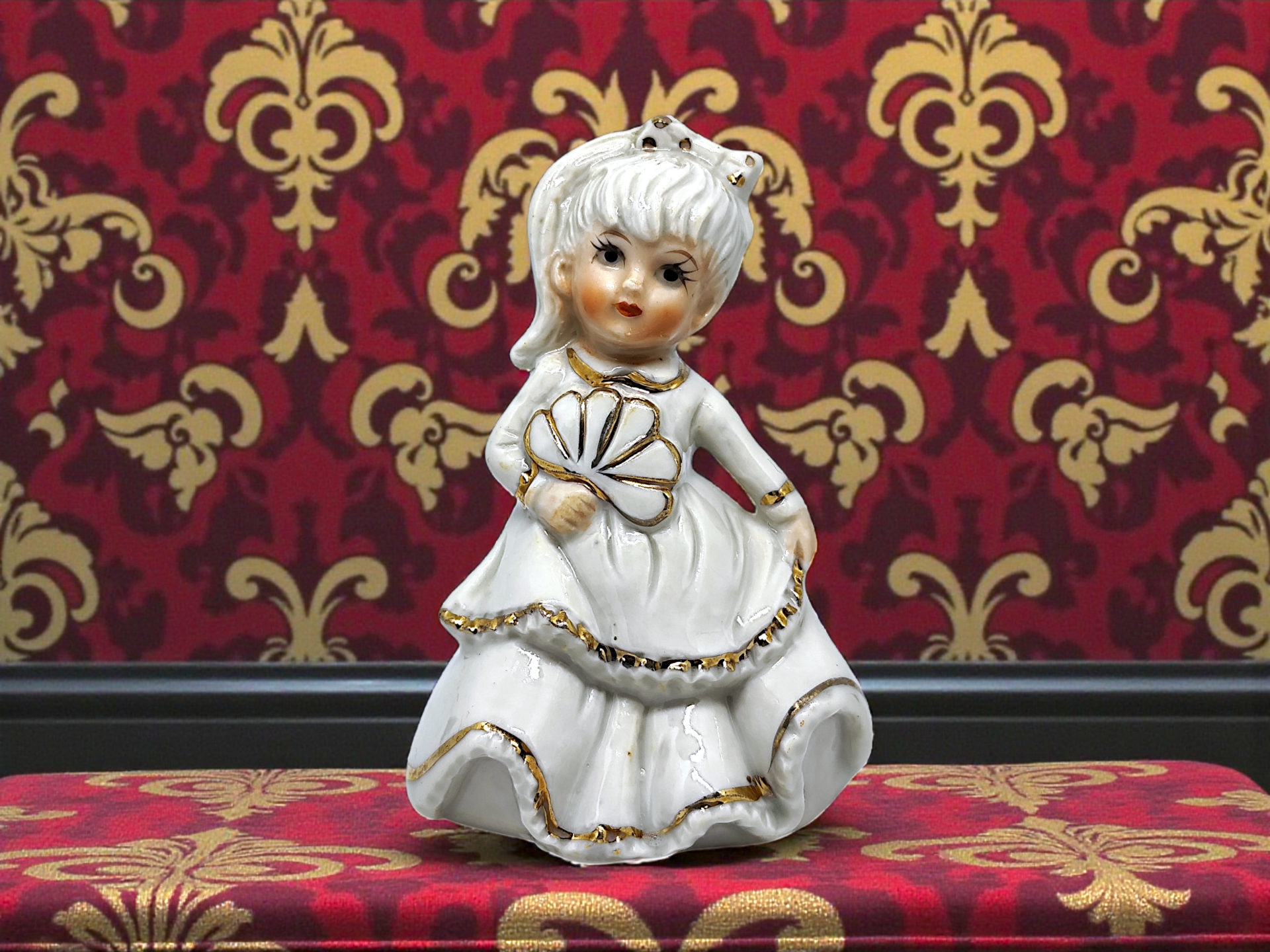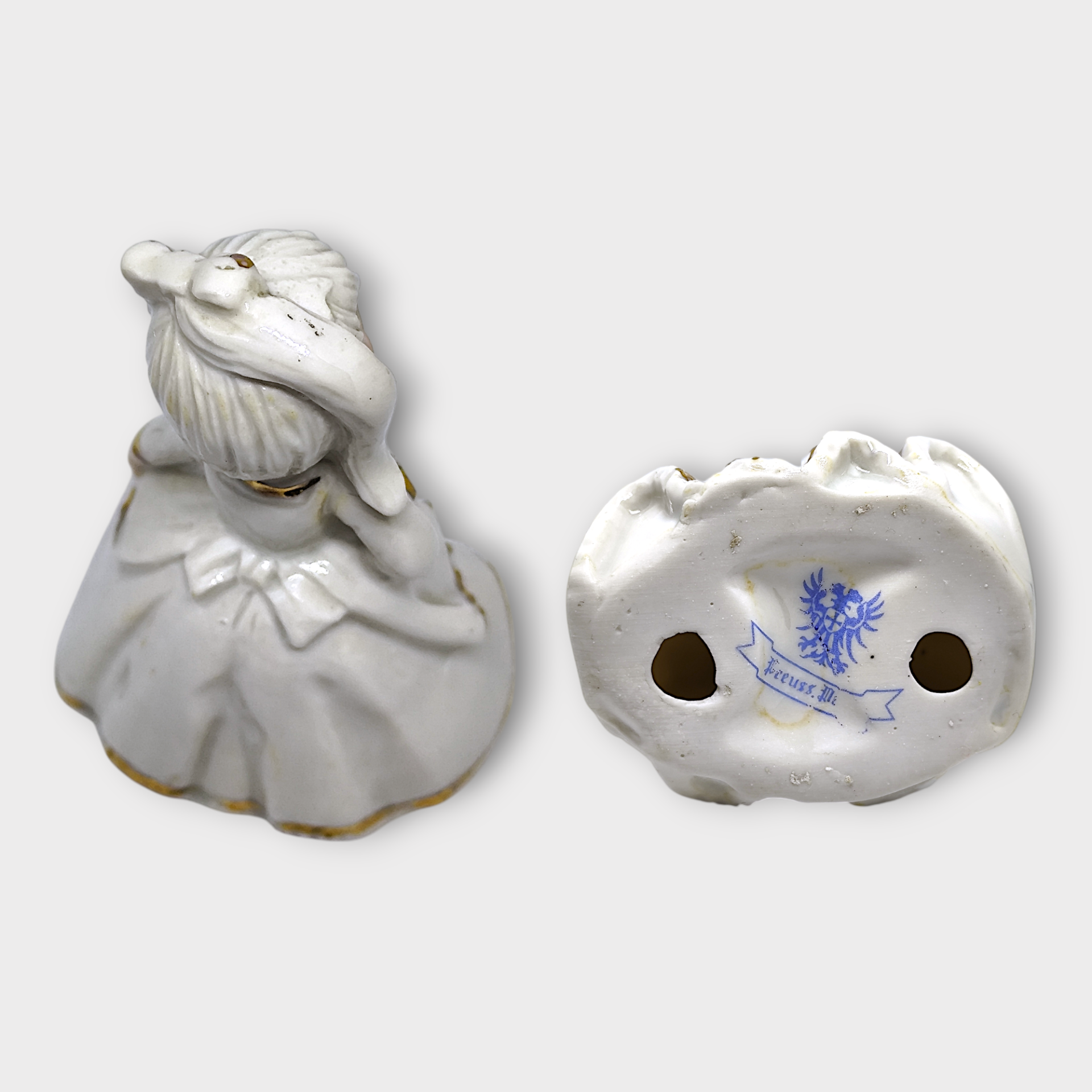 Vintage Preuss Porz Bavaria Porcelain figurine. A cute porcelain girl with gold details and red cheeks. Made in Germany in the Rococo style.