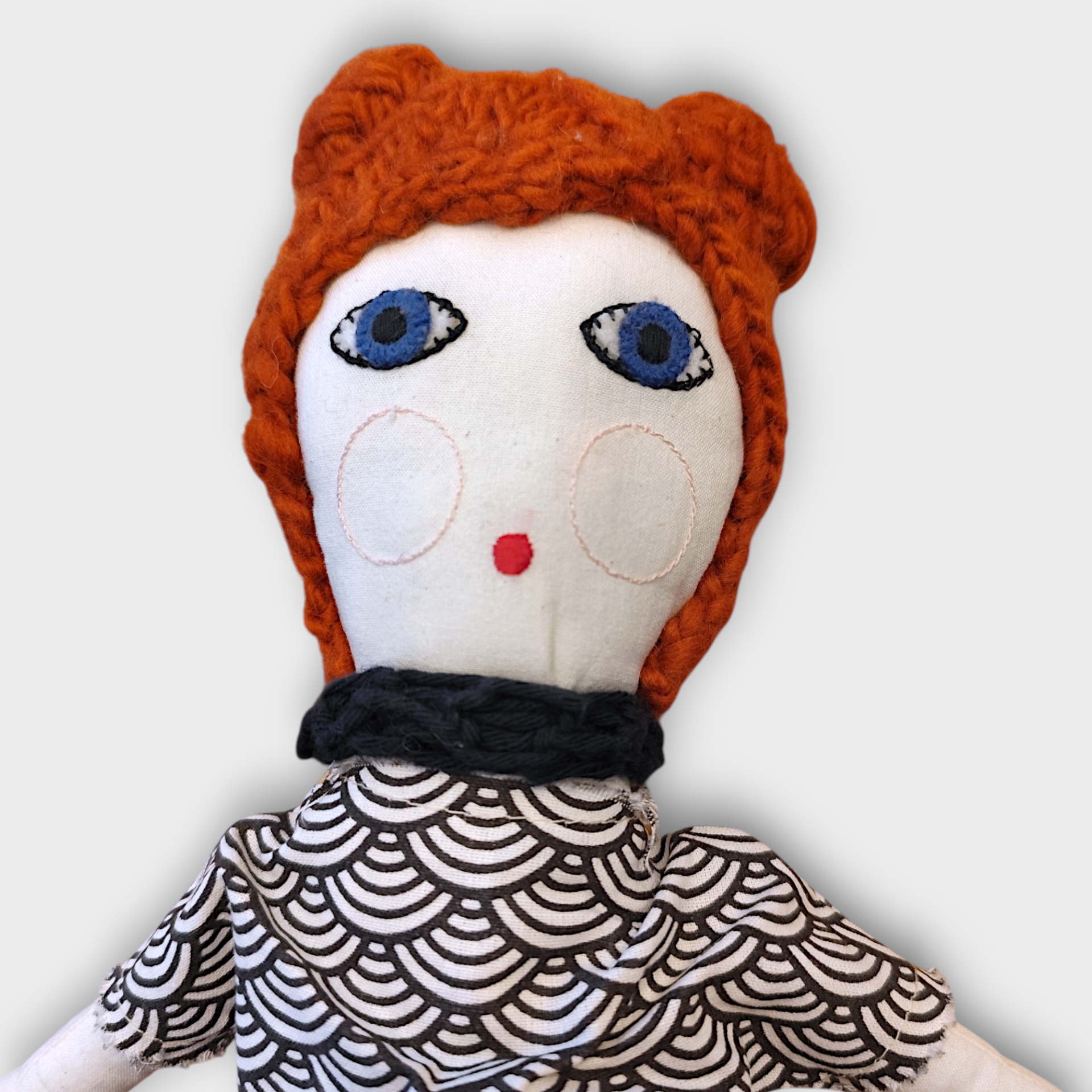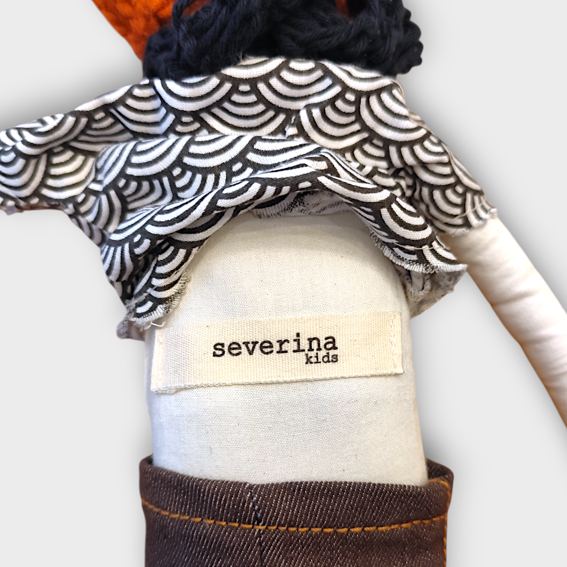 A cloth doll designed by the Argentinian/Italian designer and architect Alejandra Salvatore. The doll is a collector's doll and one of a few Severina Kids dolls.