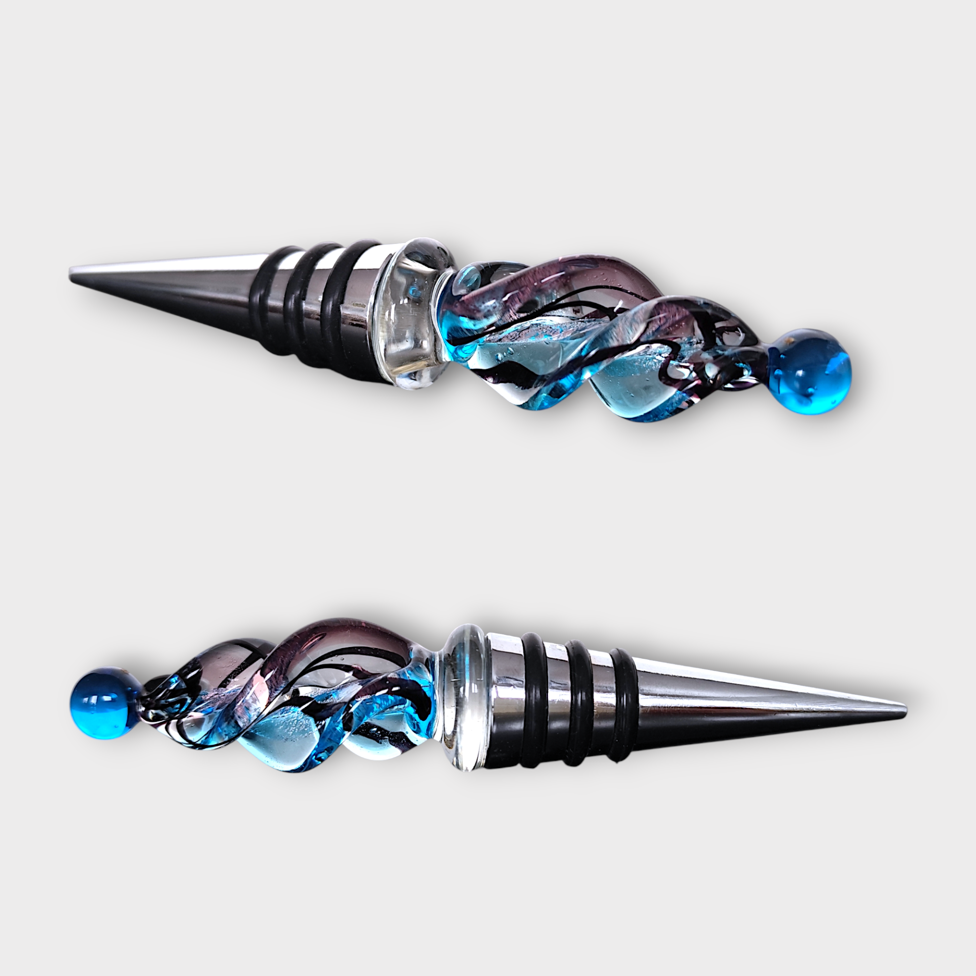 The stopper is not originally from the pitcher but a much more modern bottle stopper in metal and glass.
