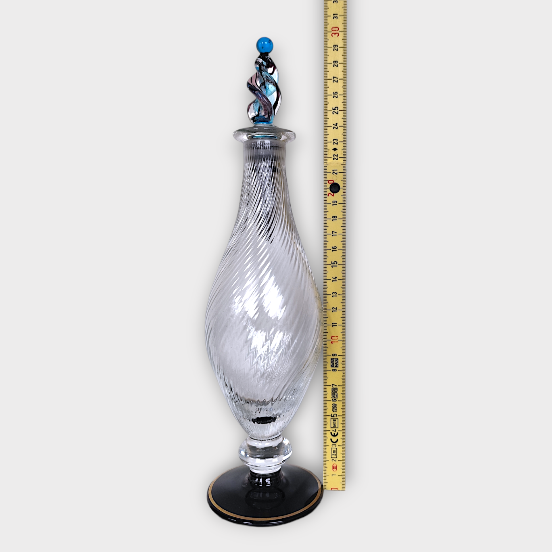 A pitcher with decorative glass stopper. Perfect for serving drinks or as a decorative interior detail.