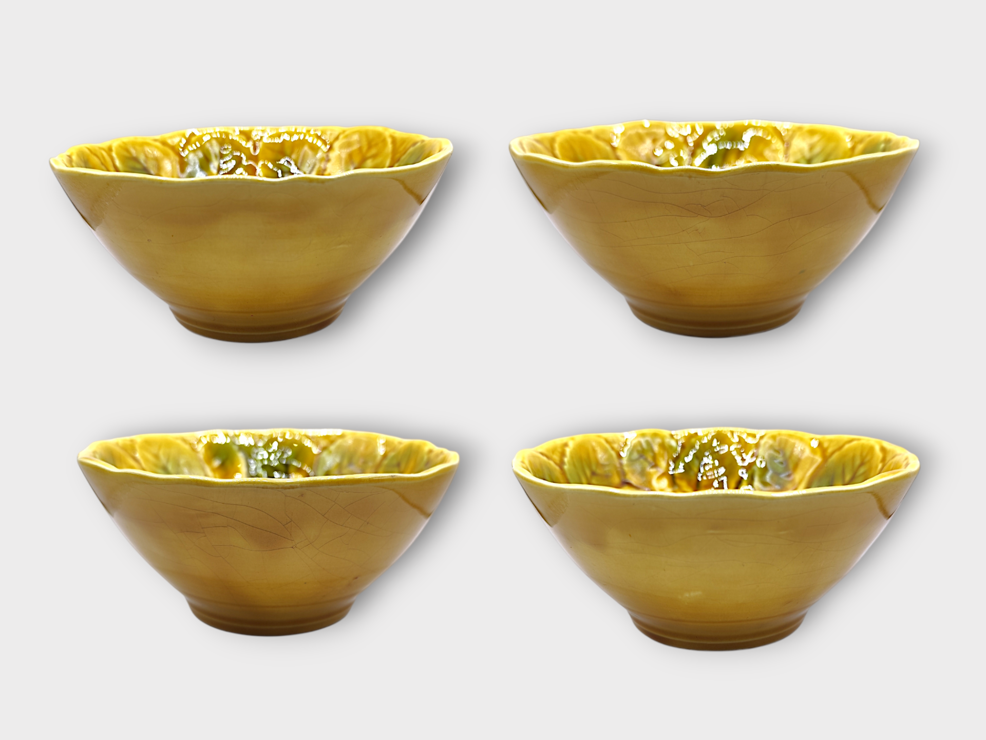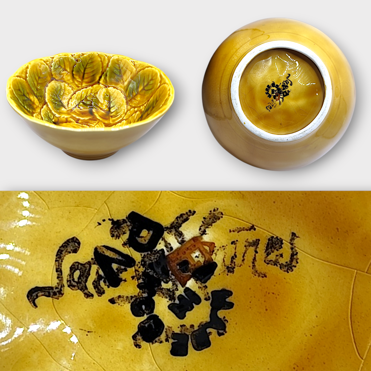 Antique glazed ceramic bowl from Sarreguemines, majolica. Made in France in 1920.